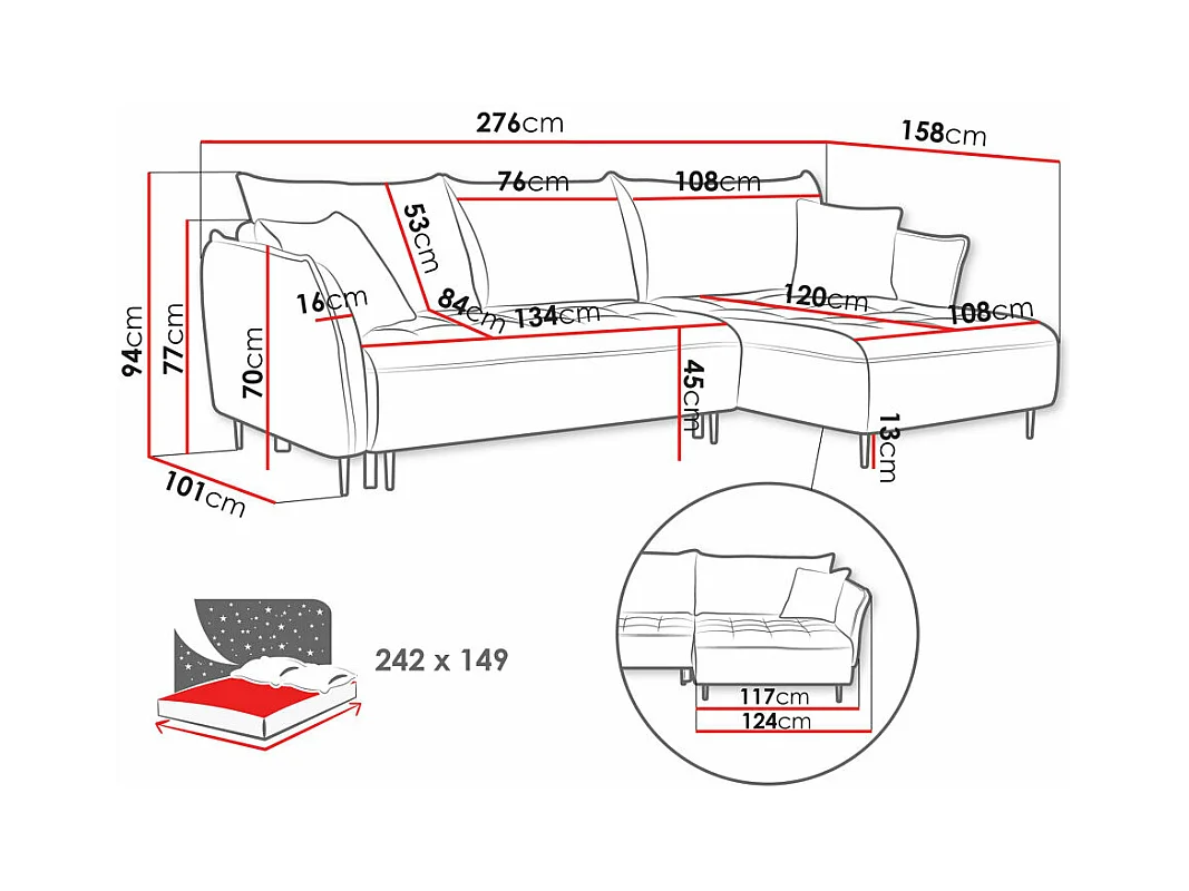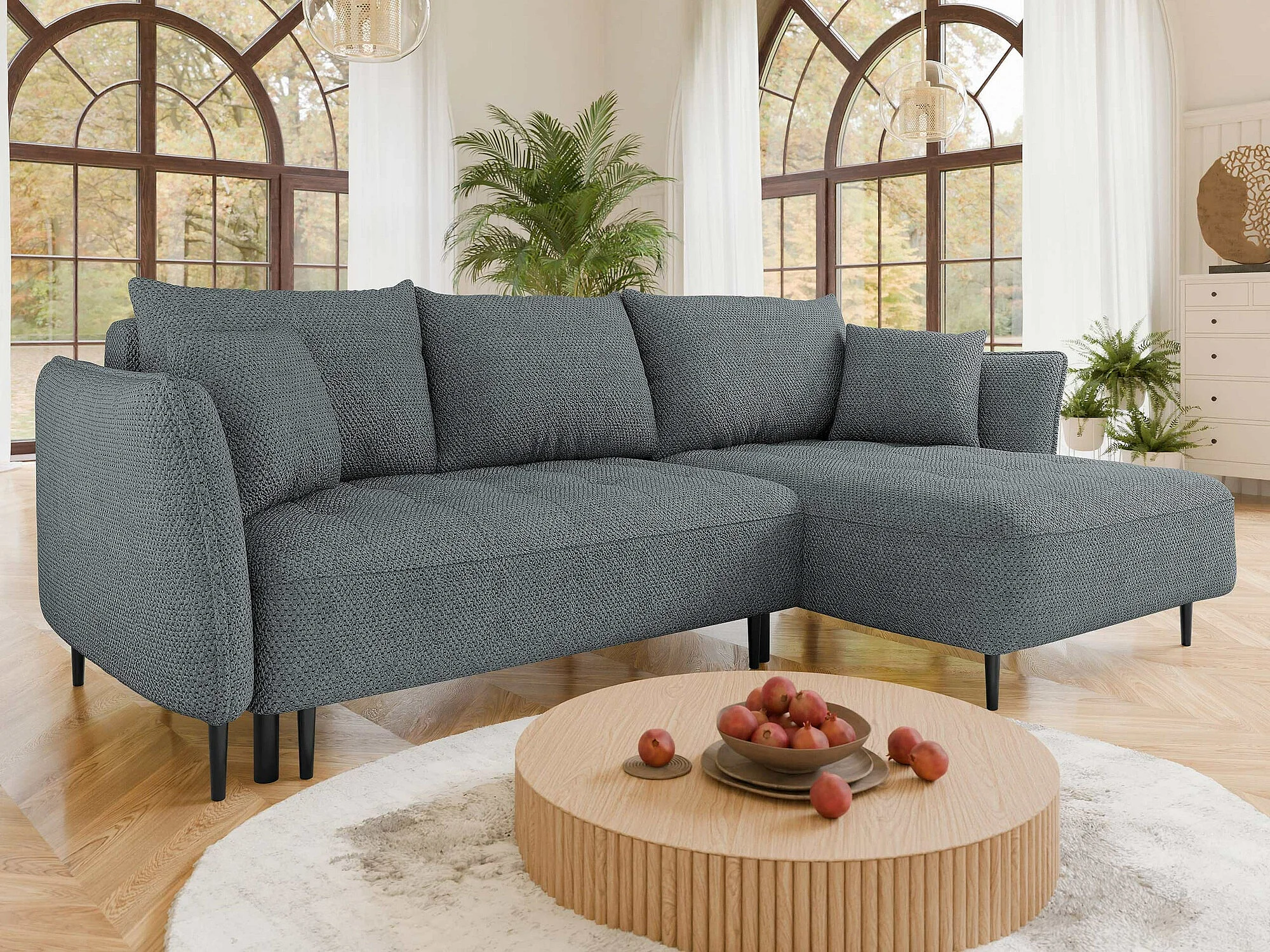 Canapé d'angle TrendyNest 102, Gris, Fonction de couchage, Boîte de literie, 276x158x94cm