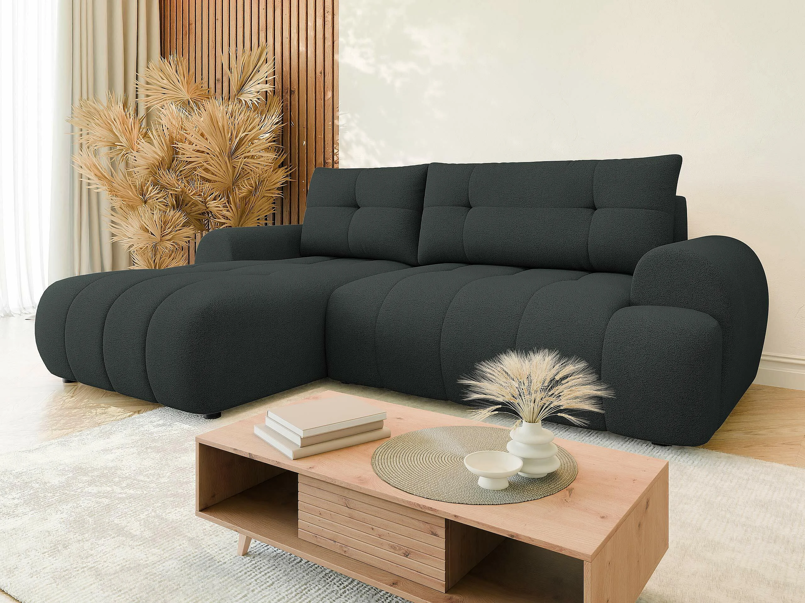 Canapé d'angle TrendyNest 104, Gris, Fonction de couchage, Boîte de literie, 265x177x93cm