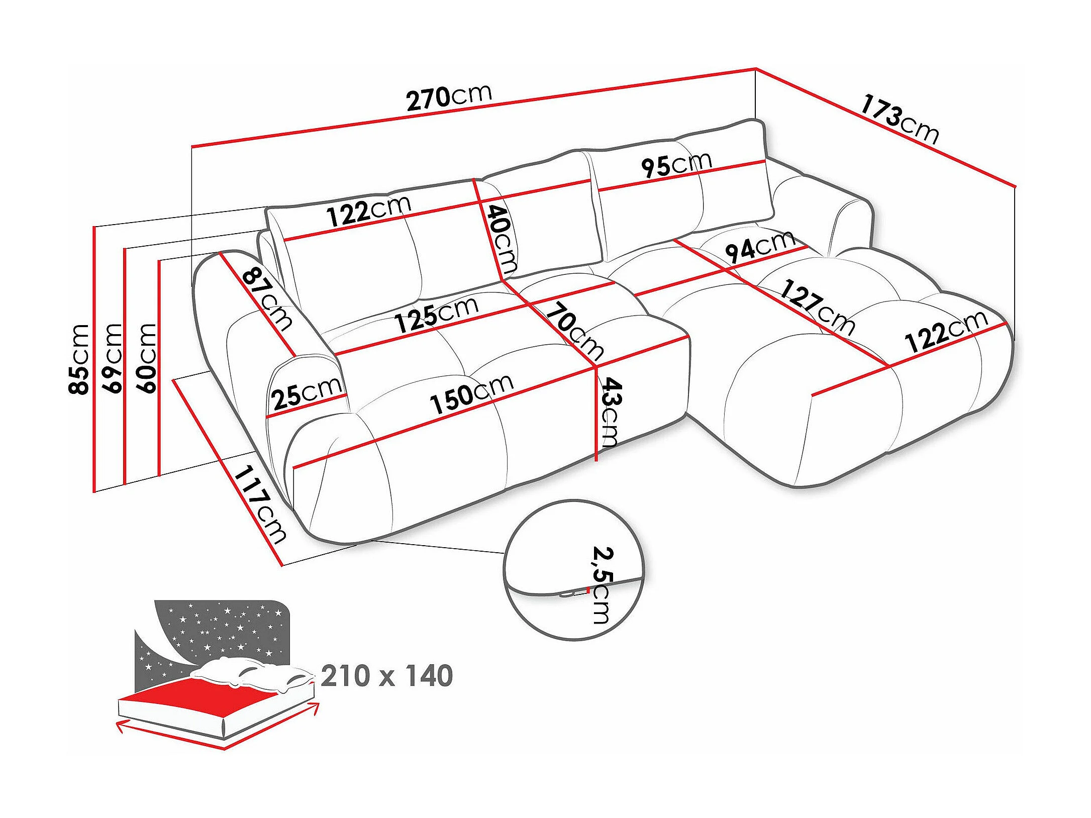Canapé d'angle TrendyNest 109, Brun clair, Disponible, 270x173x85cm