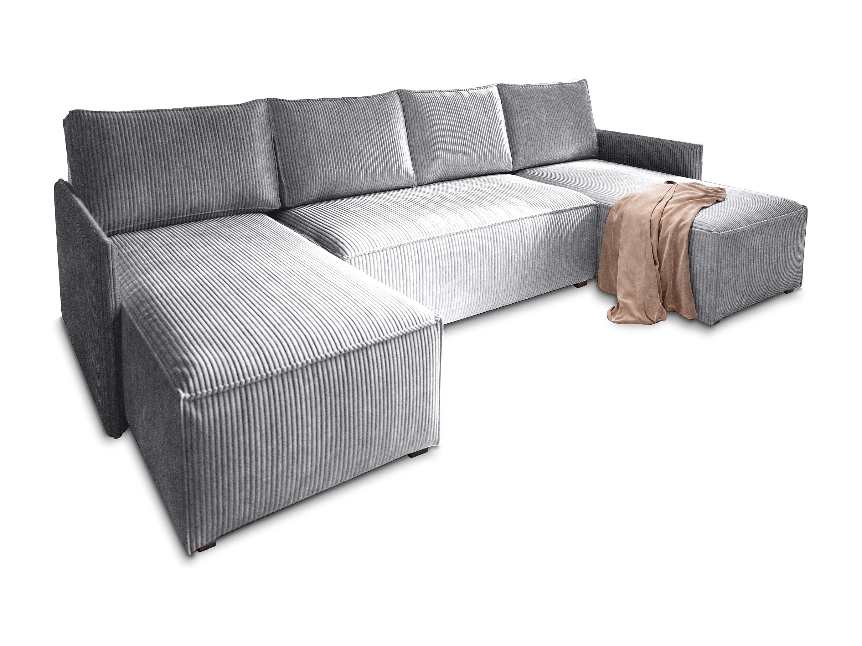 Canapé d'angle TRES Gris clair en velours côtelé avec fonction de couchage