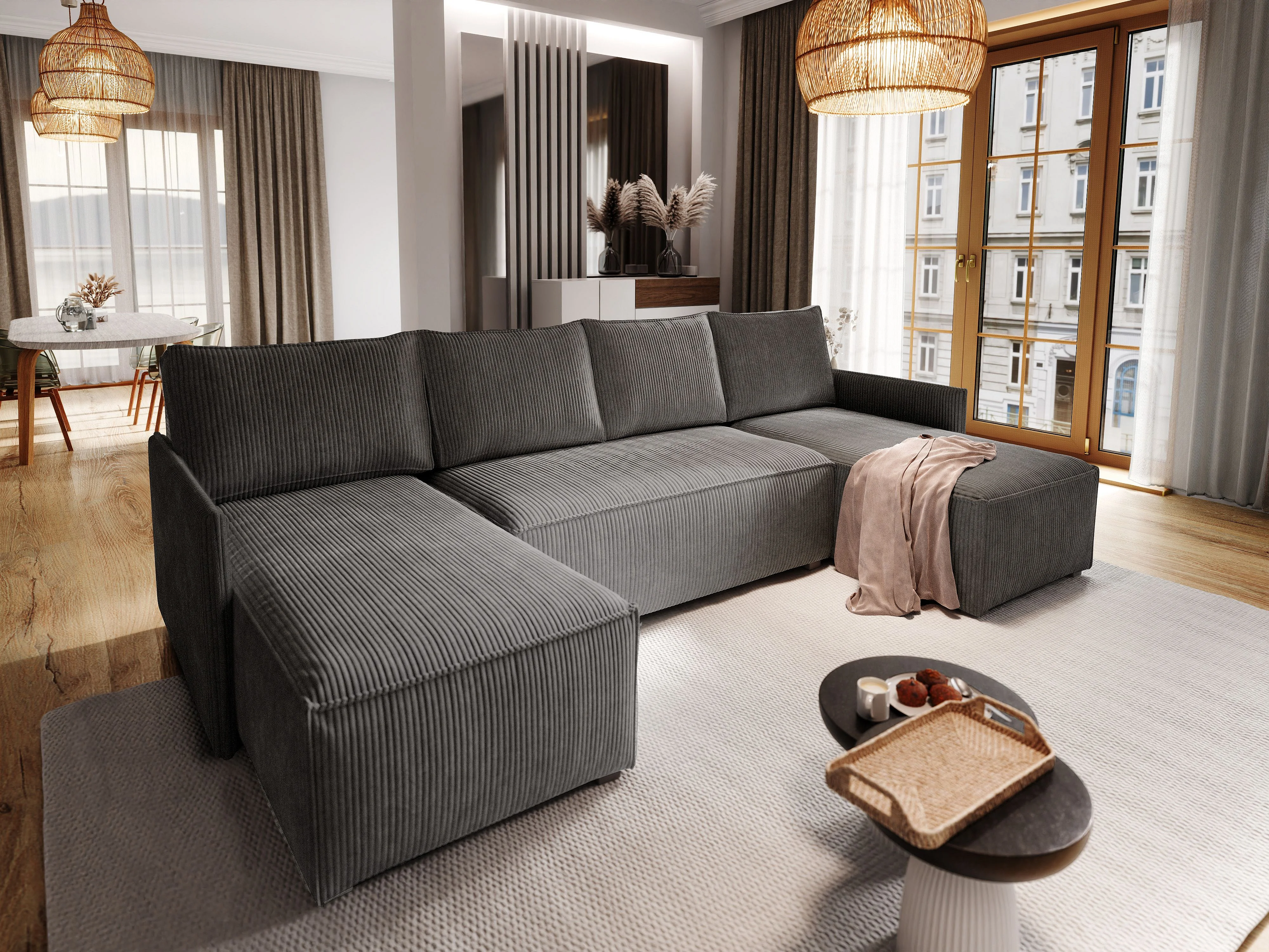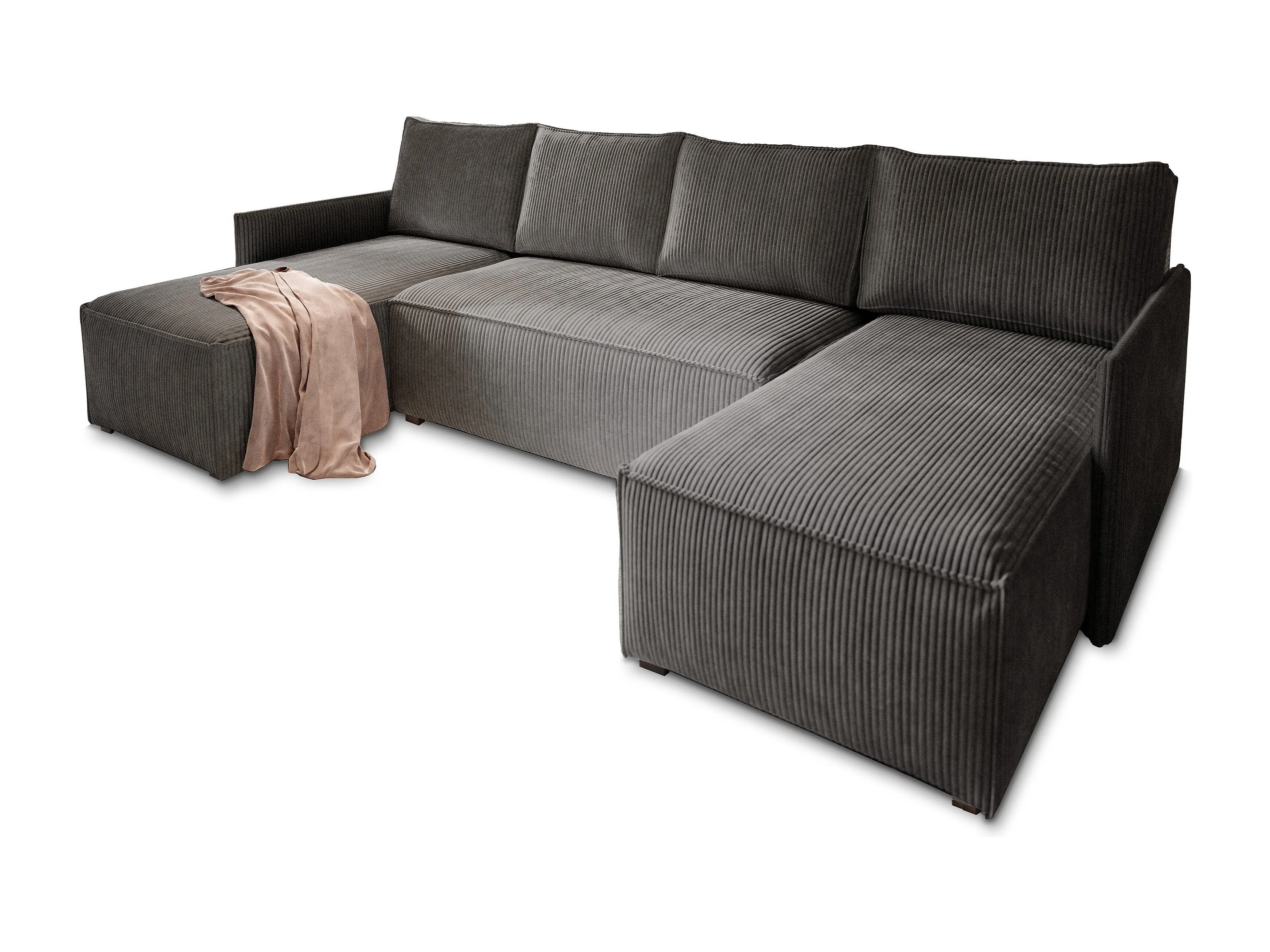 Canapé d'angle TRES Gris anthracite en velours côtelé avec fonction de couchage