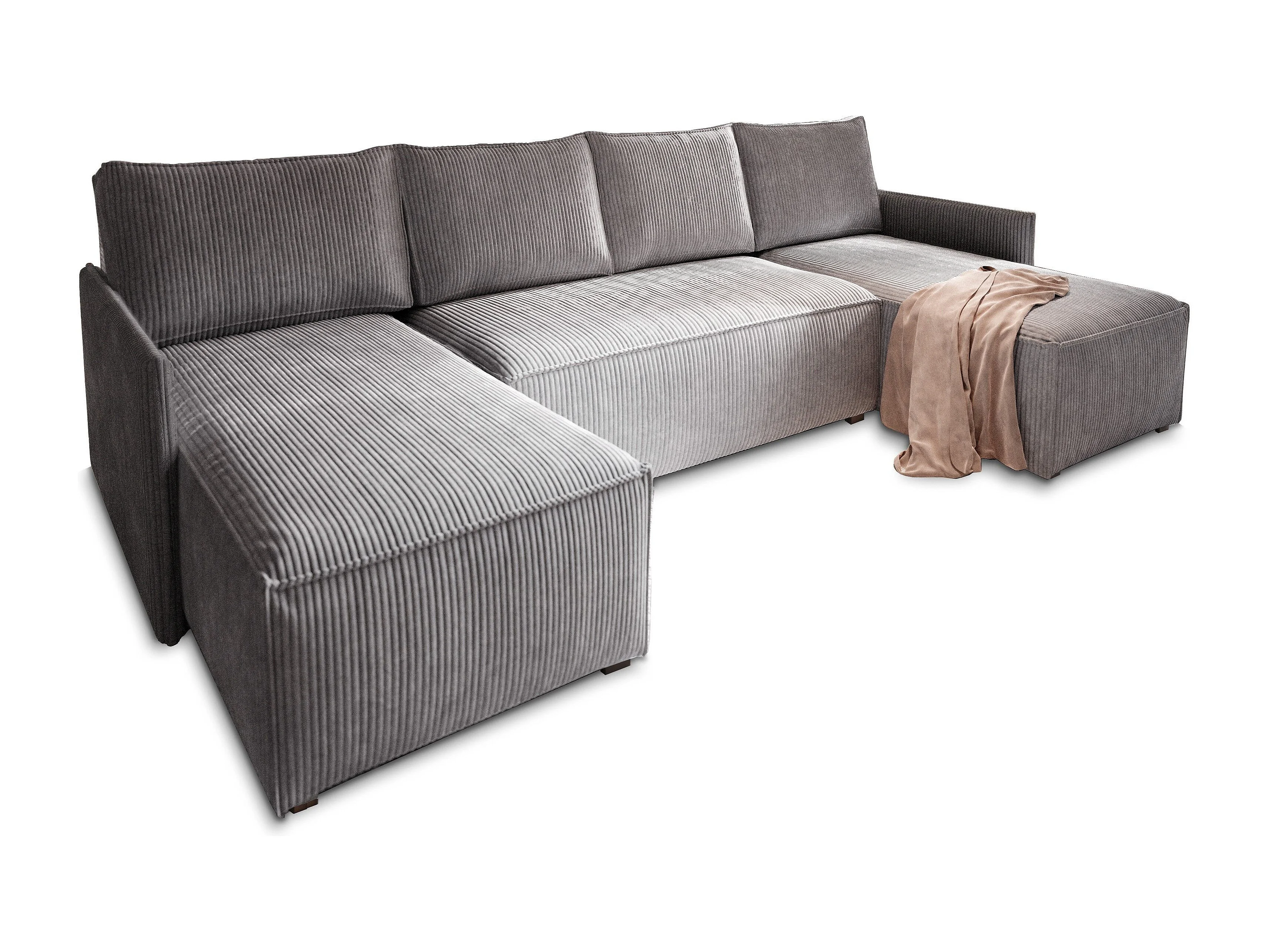 Canapé d'angle TRES Gris en velours côtelé avec fonction de couchage