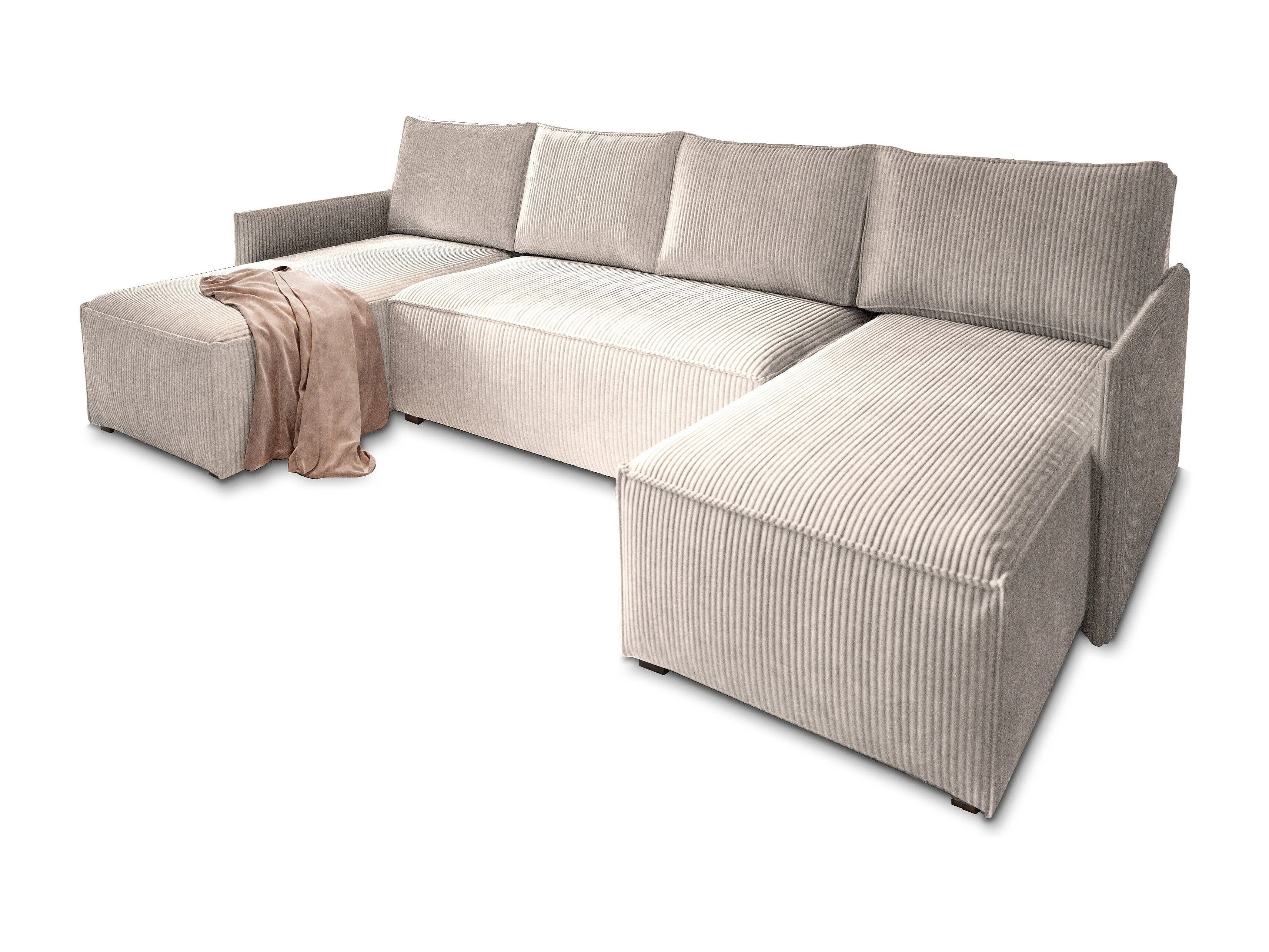 Canapé d'angle TRES Crème en velours côtelé avec fonction de couchage