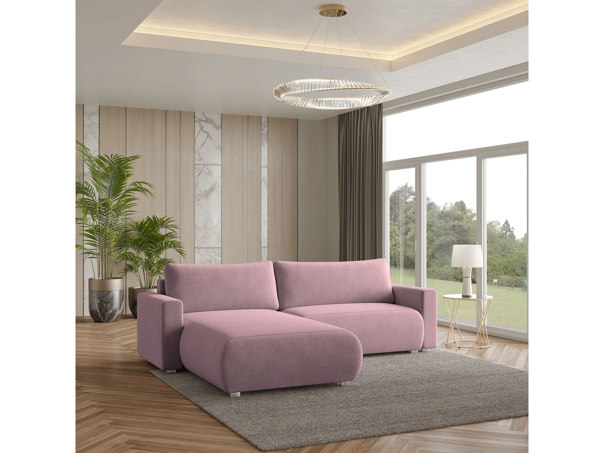 Canapé d'angle TURIN Parme en velours avec fonction de couchage