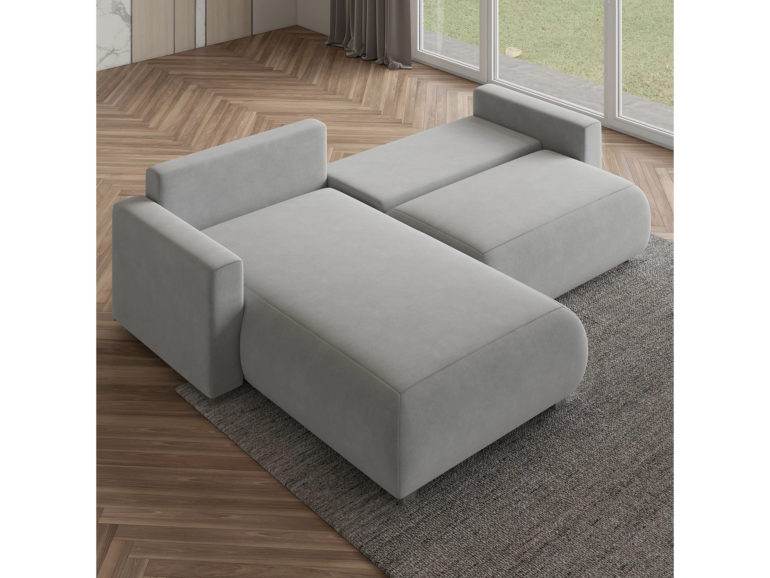 Canapé d'angle TURIN Marron en velours avec fonction de couchage