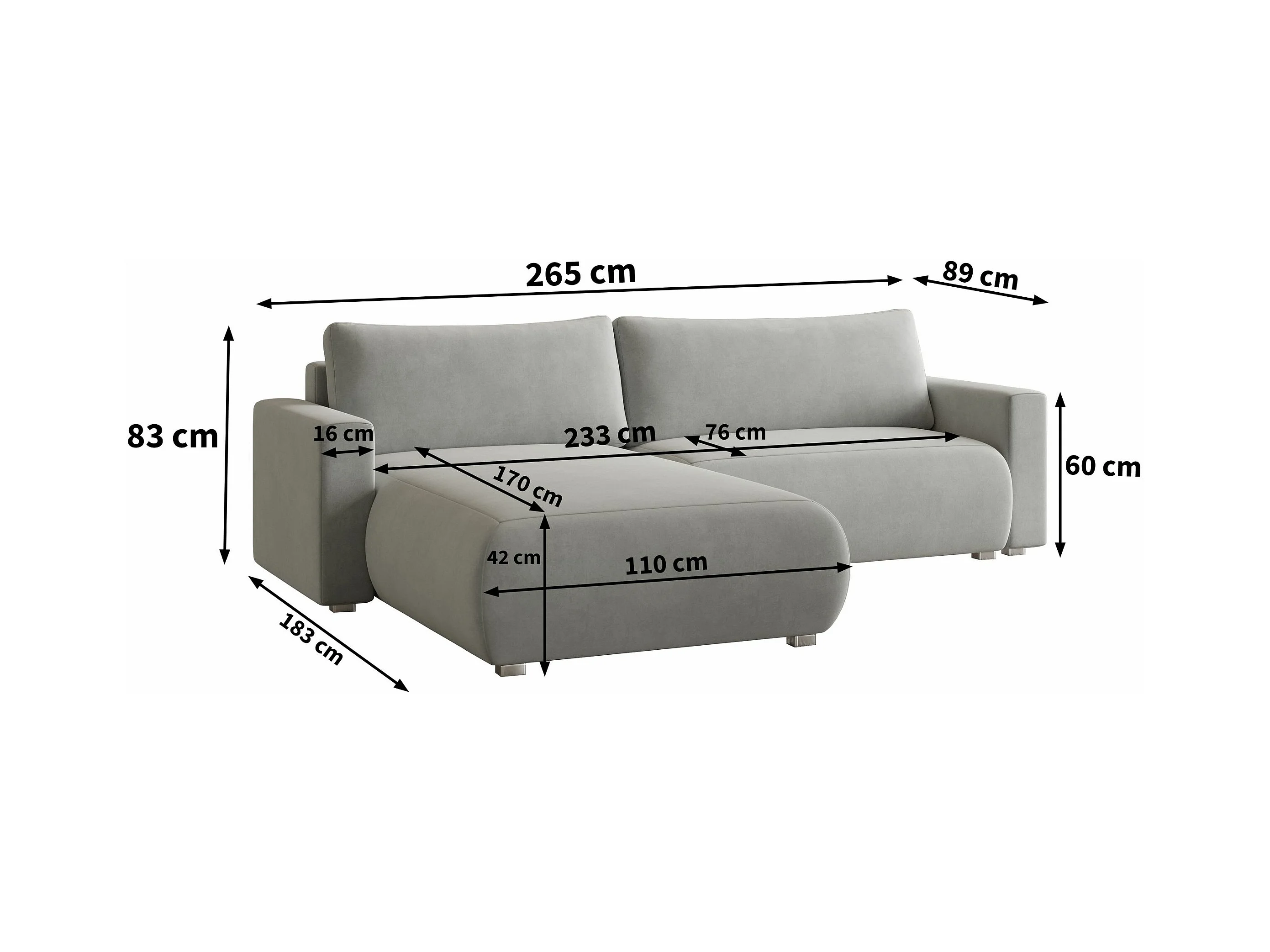 Canapé d'angle TURIN Gris en velours avec fonction de couchage