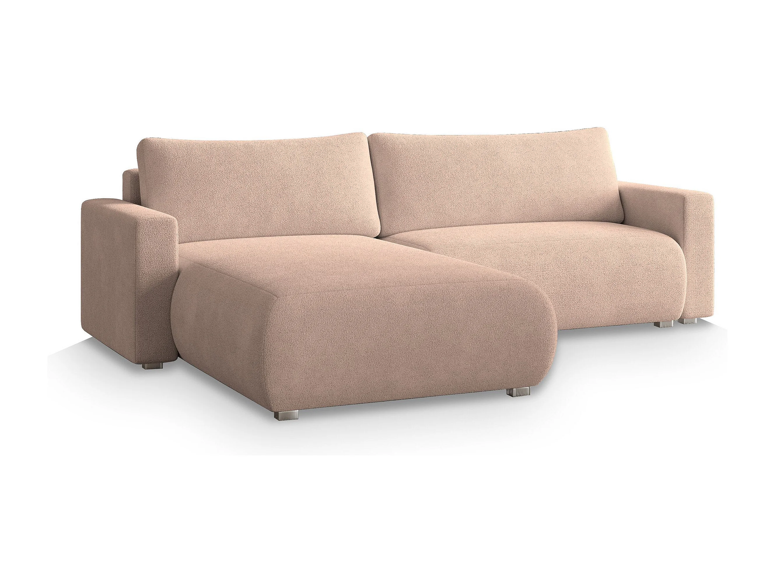 Canapé d'angle TURIN Rose poudré en bouclé avec fonction de couchage