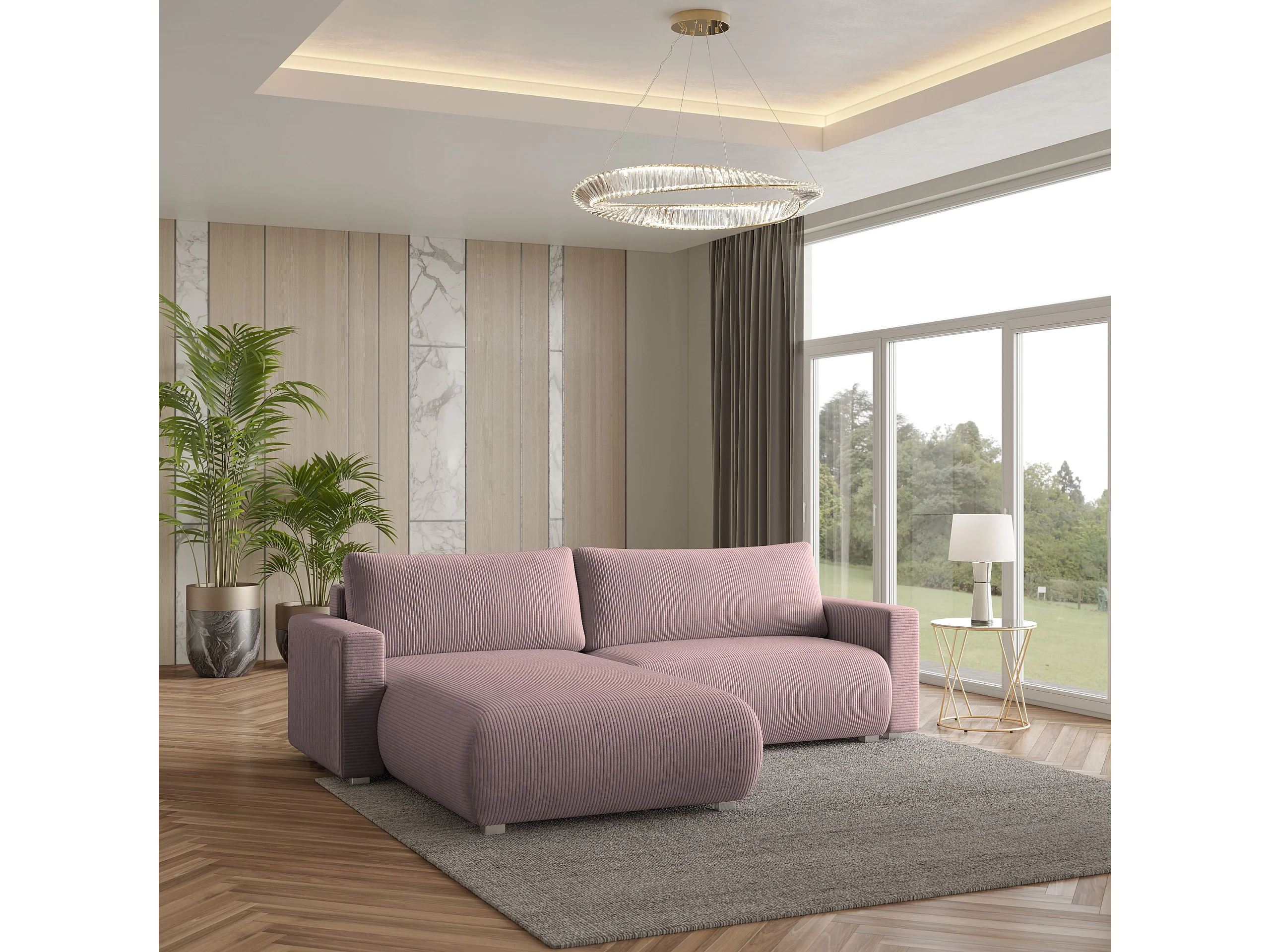 Canapé d'angle TURIN Parme en velours côtelé avec fonction de couchage
