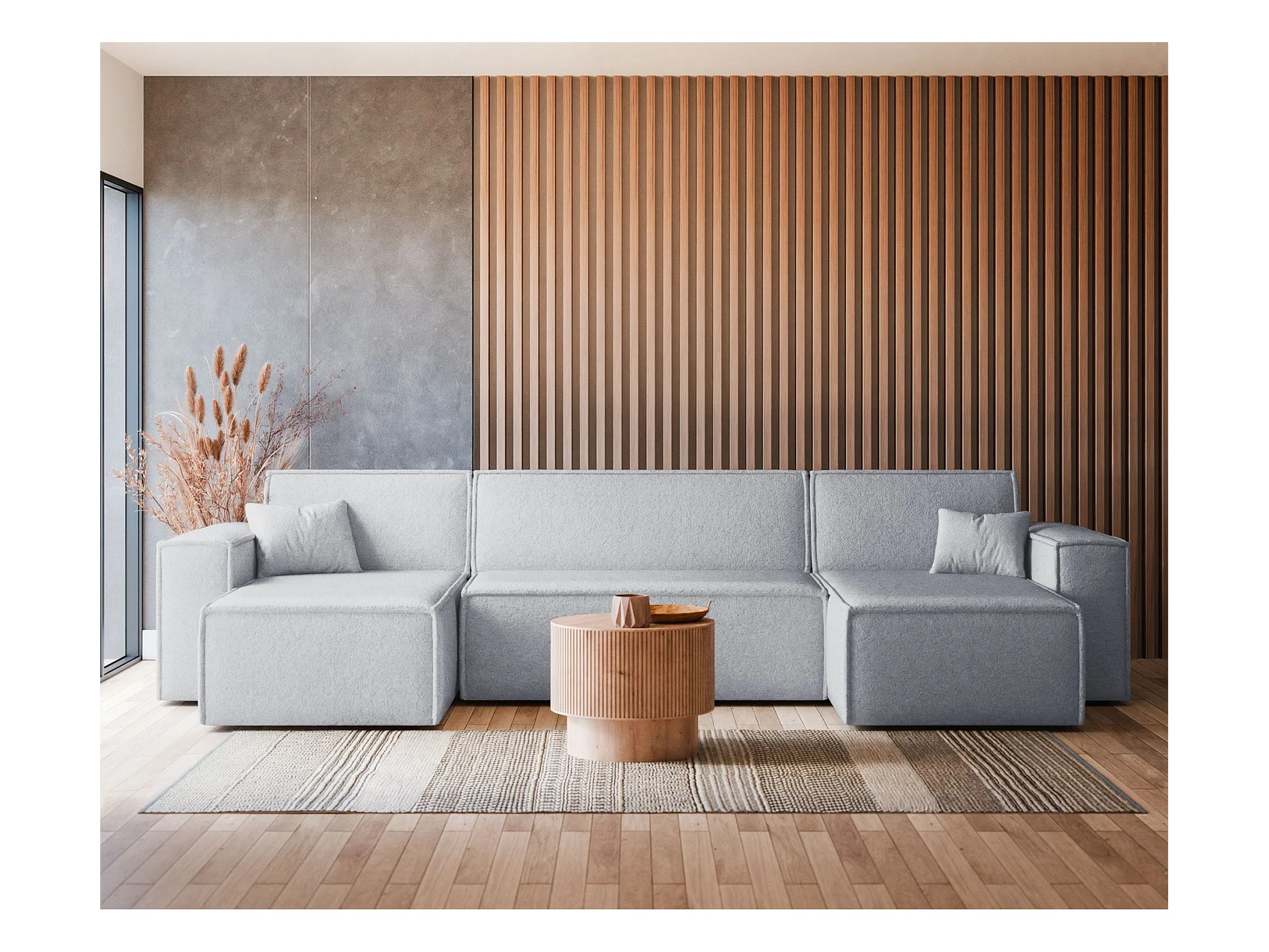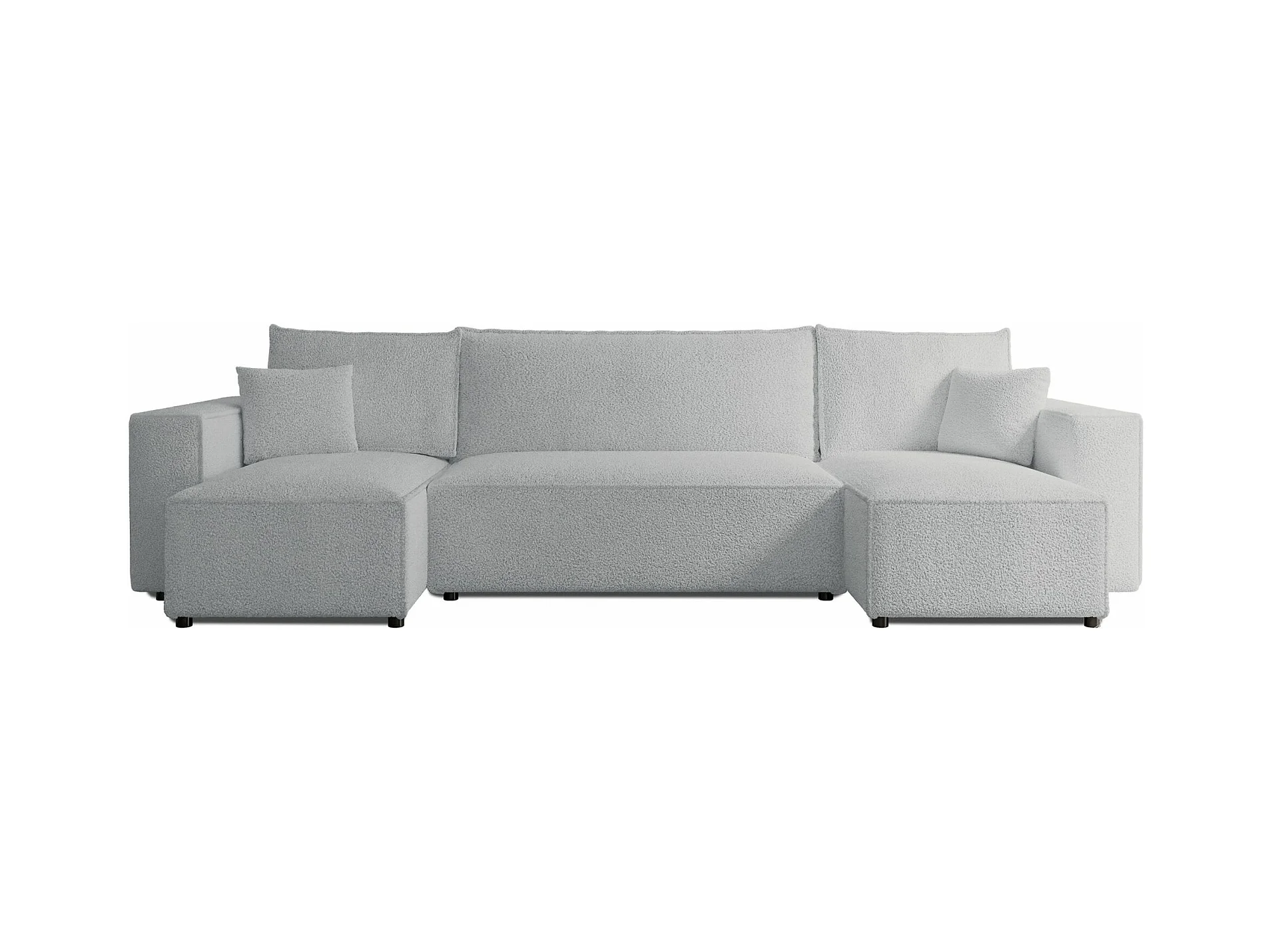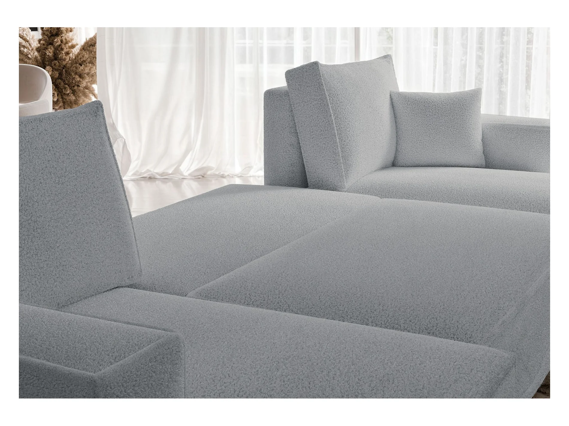 Canapé d'angle U convertible - en boucle gris clair - SCARLO