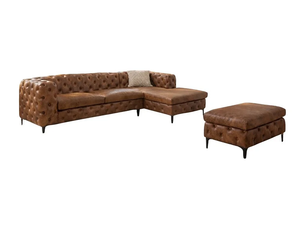 Canapé d'angle VELENA marron avec pouf – Canapé baroque en microfibre avec structure en bois massif