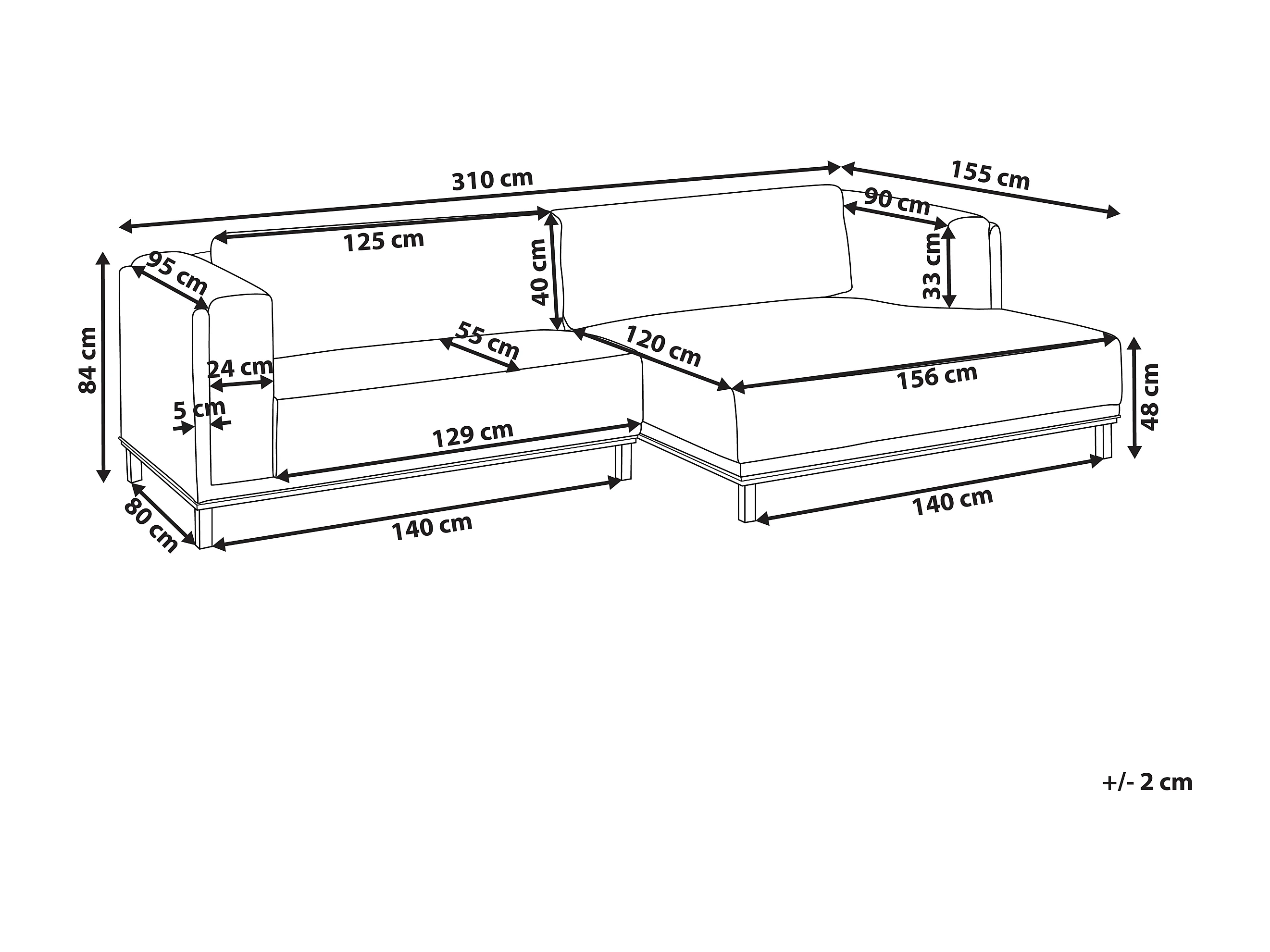 Canapé d'angle 4 places VENG Tissu Beige clair Côté gauche