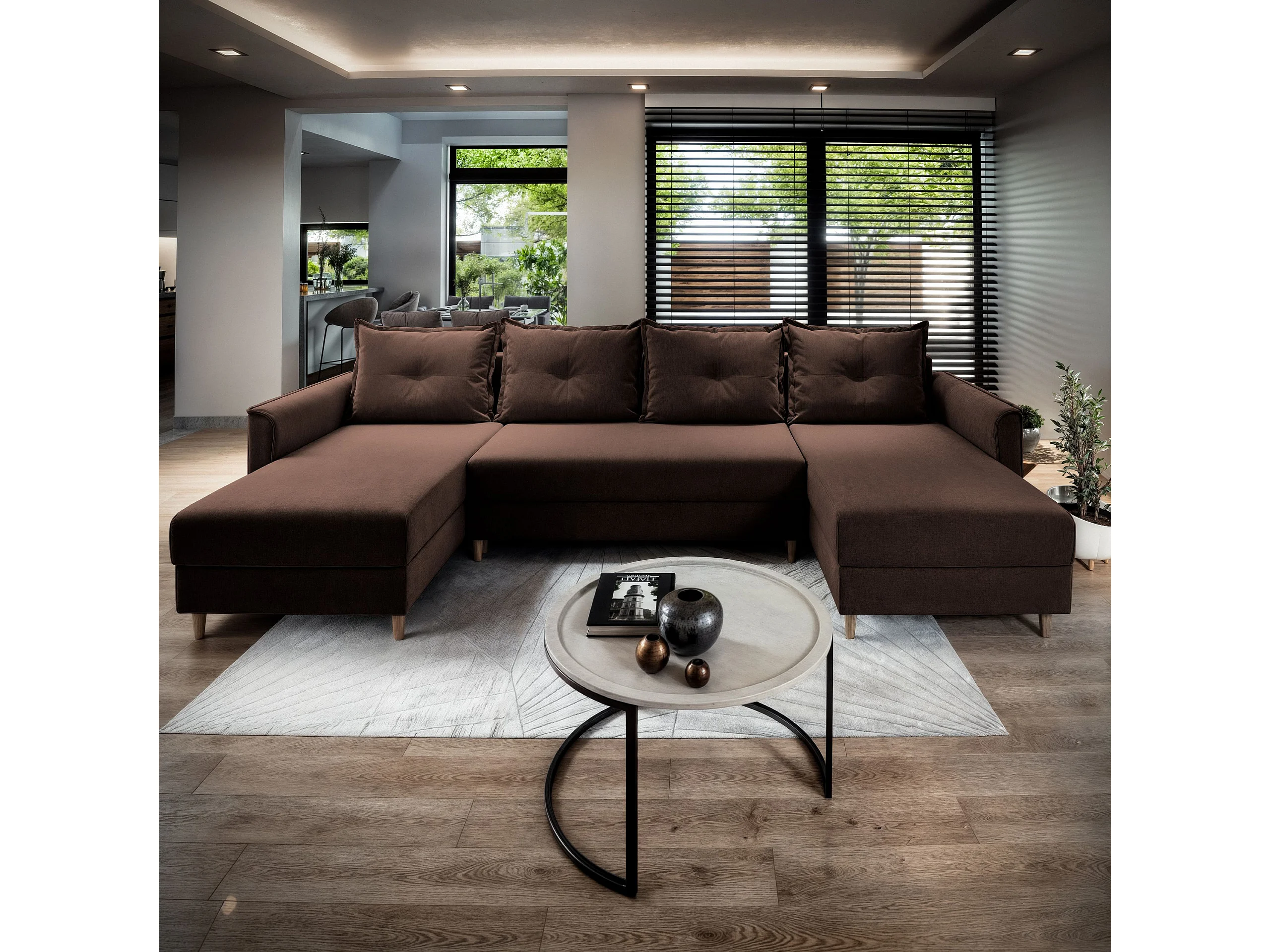 Canapé d'angle VERNI Marron en peluche avec fonction de couchage