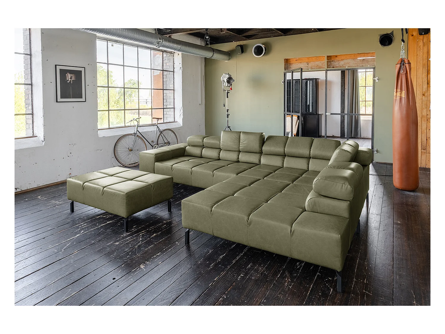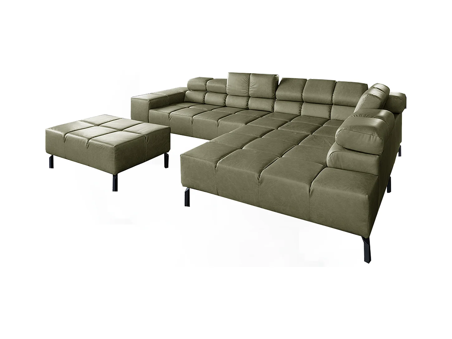 Canapé d’angle 4 places droit en tissu chenille - olive - AKALA