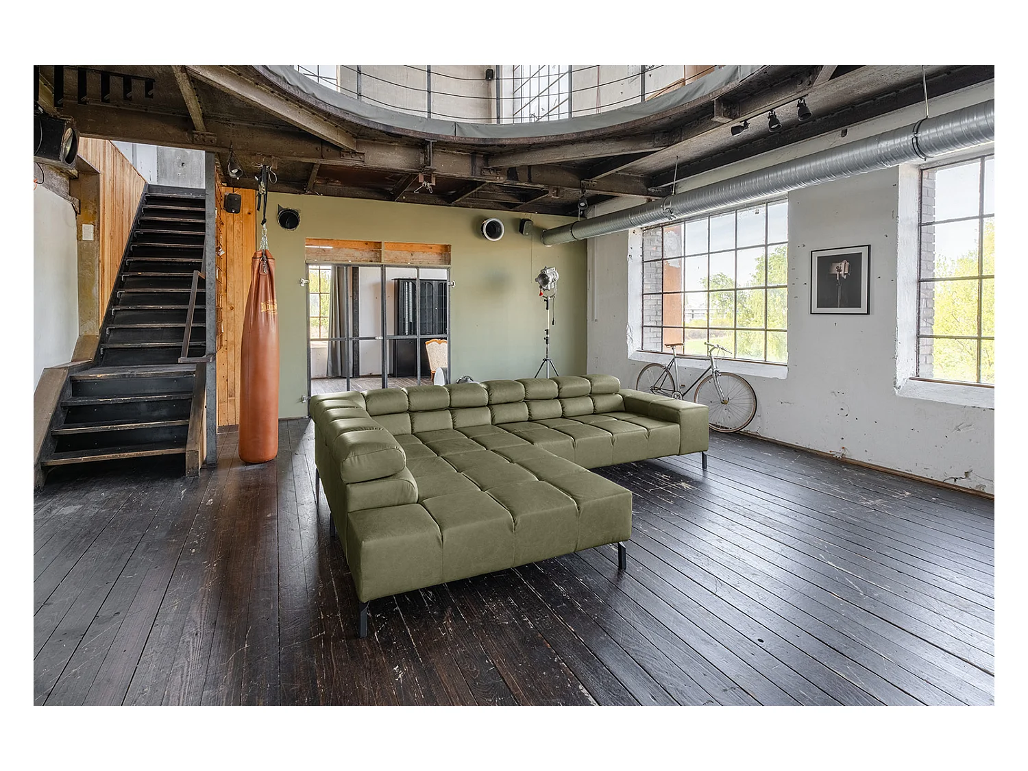 Canapé d'angle - Vert Velours côtelé - DELIA