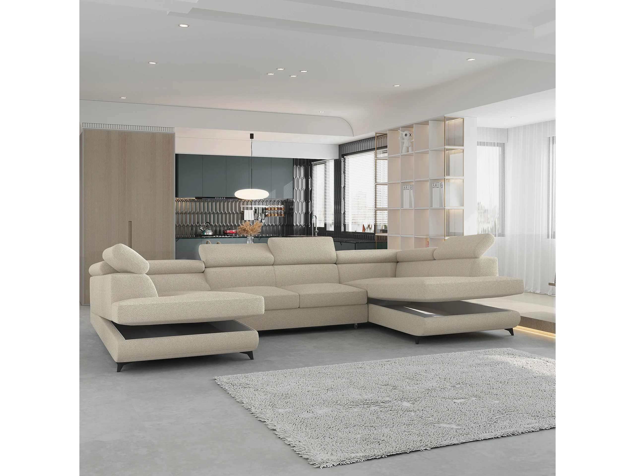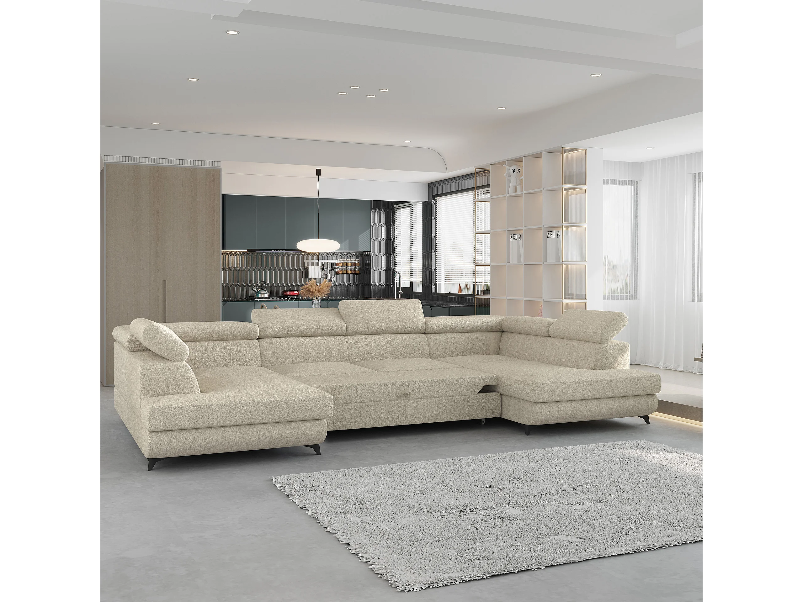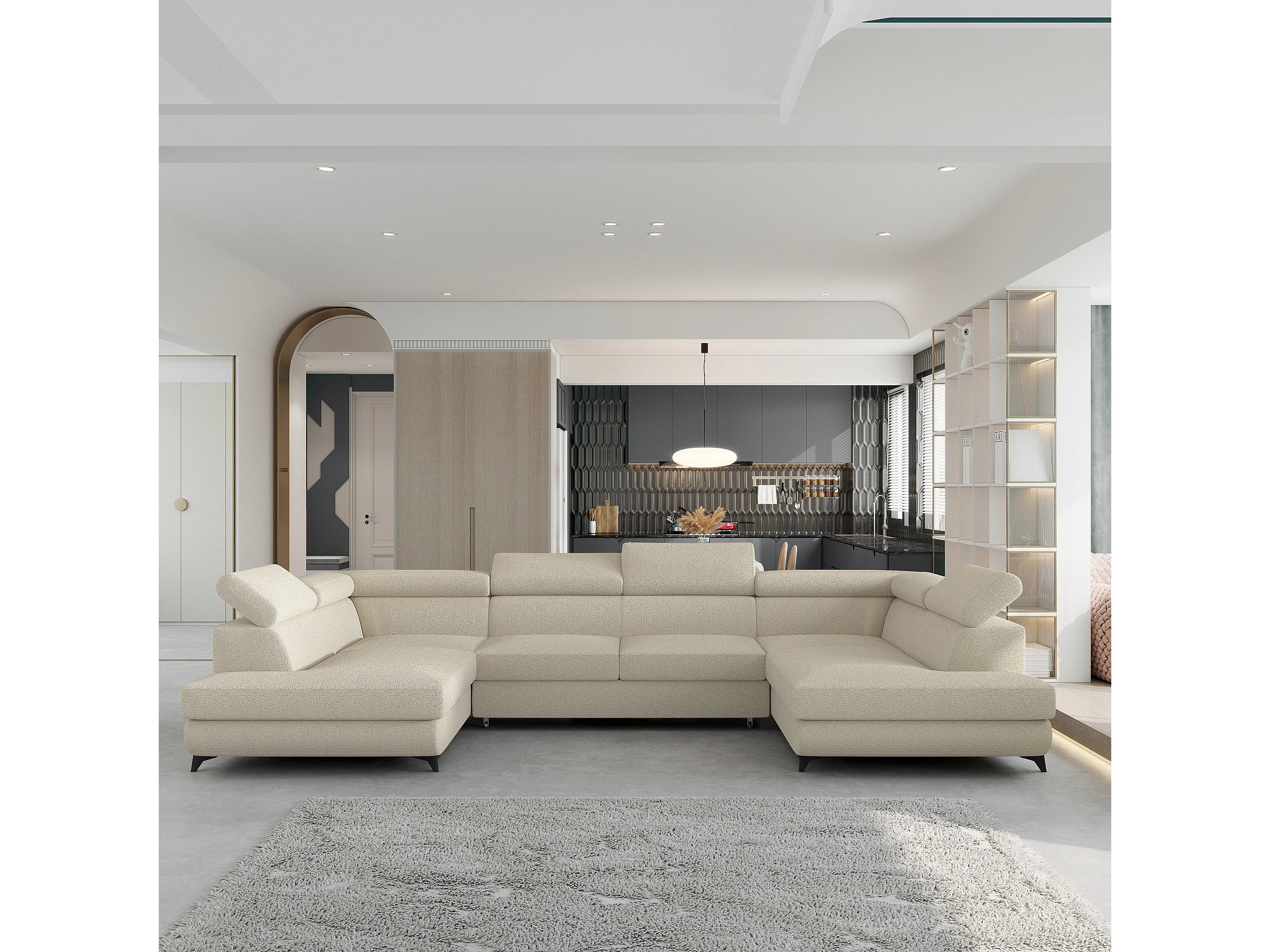 Canapé d'angle VINTESSA Crème en bouclé avec fonction de couchage