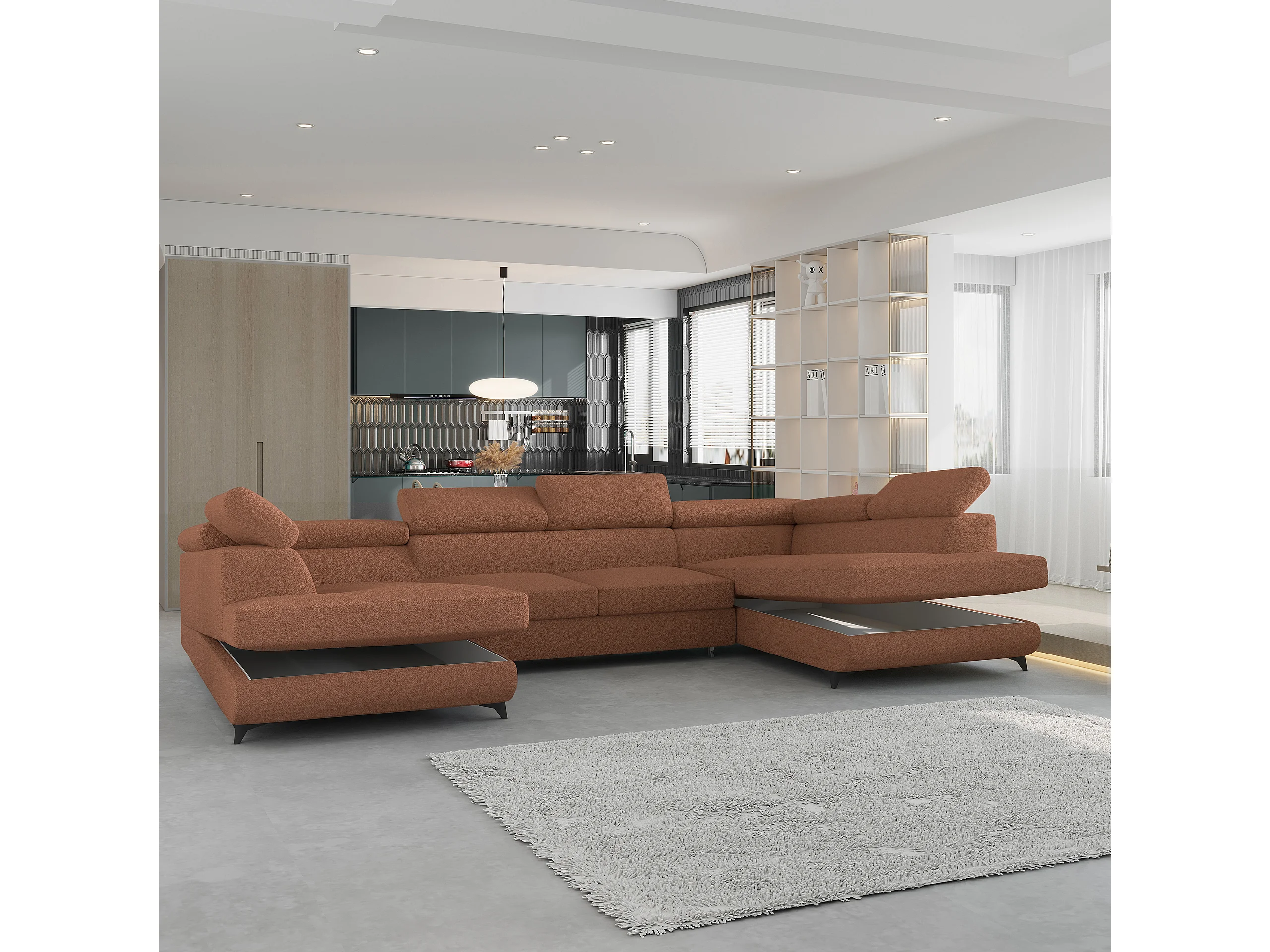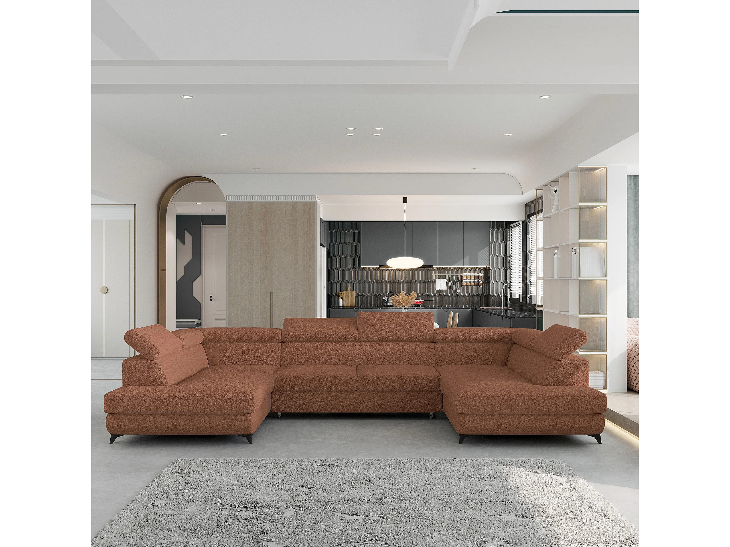 Canapé d'angle VINTESSA Cuivré en bouclé avec fonction de couchage
