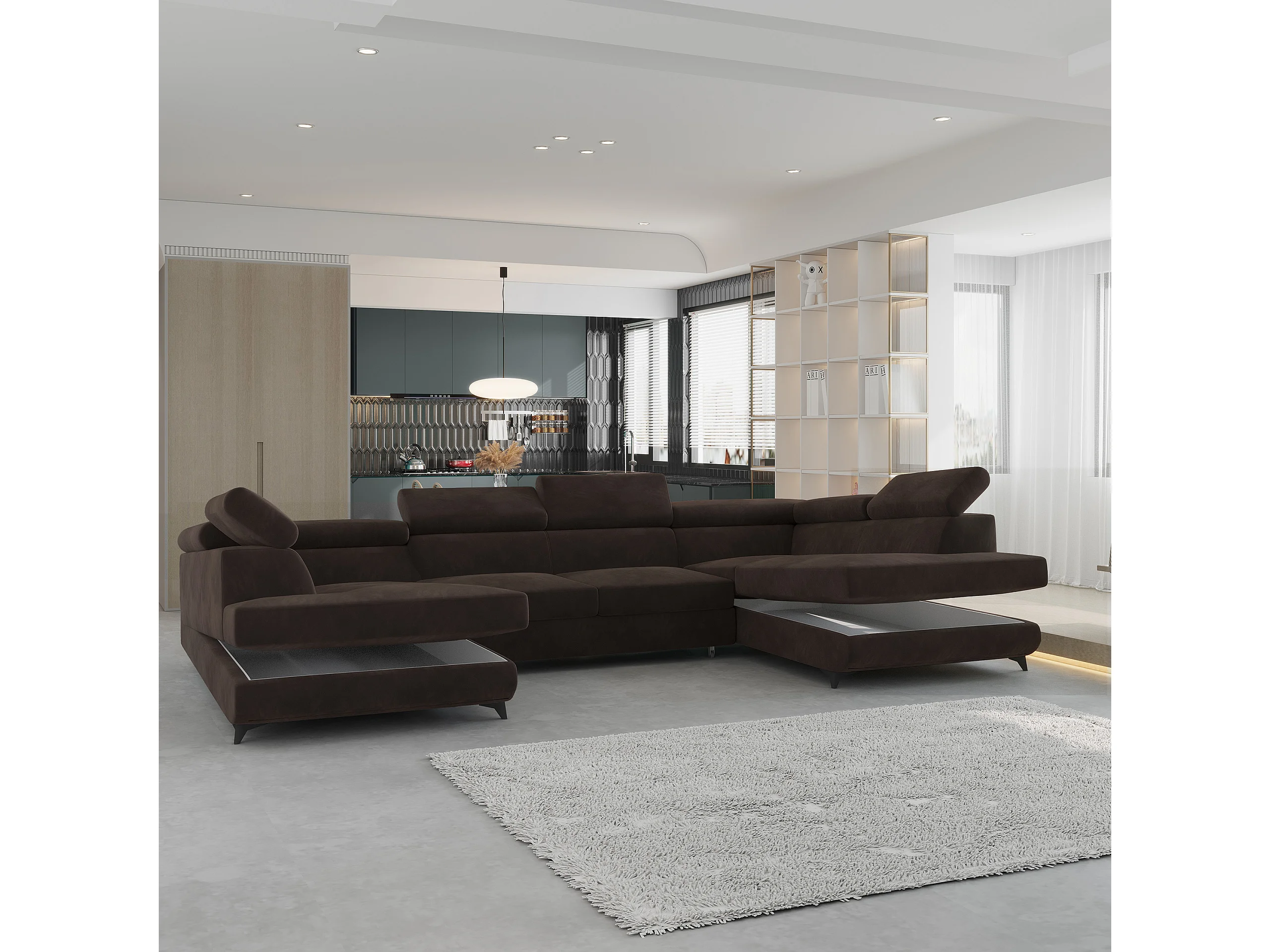 Canapé d'angle VINTESSA Marron en velours avec fonction de couchage