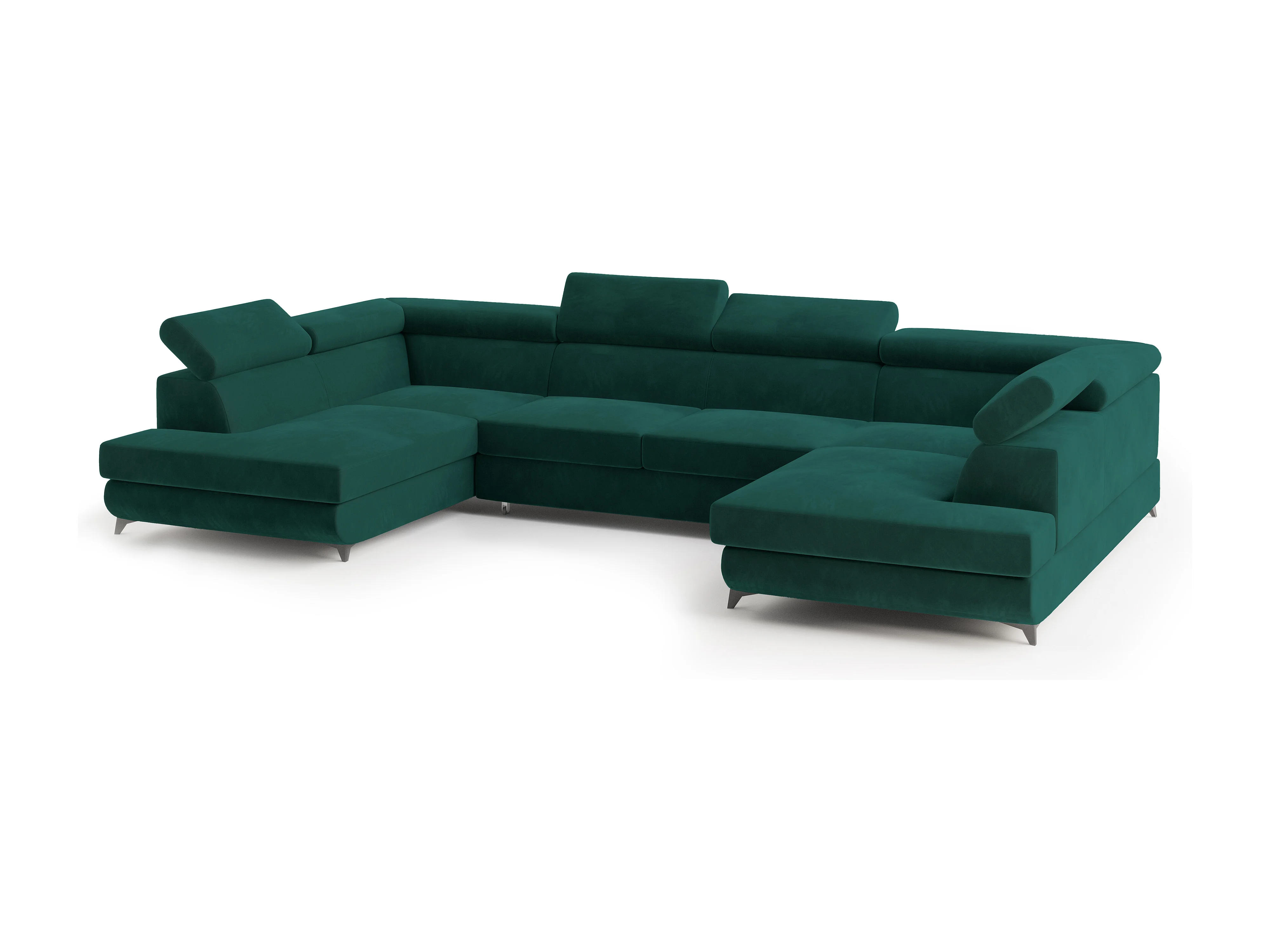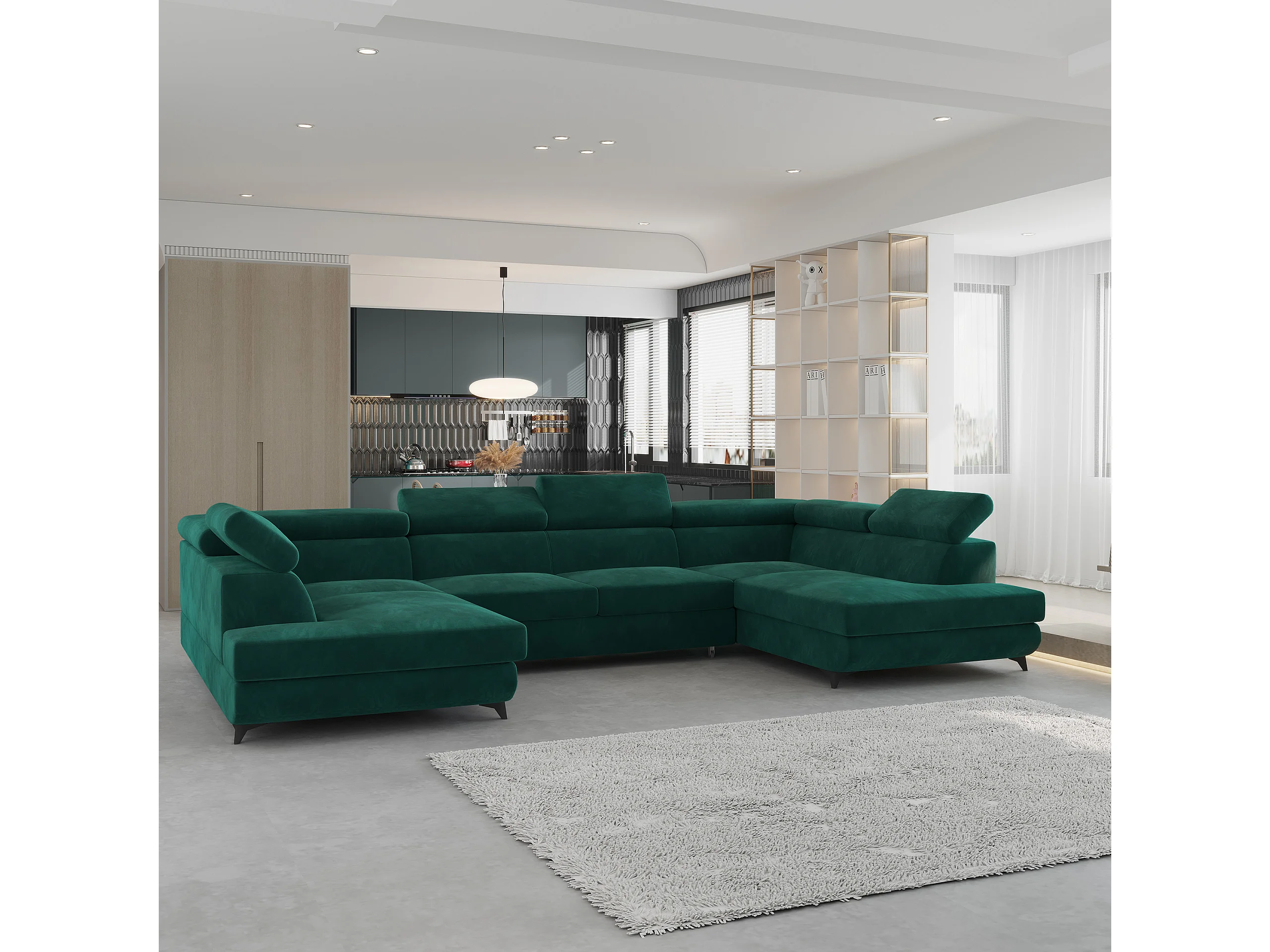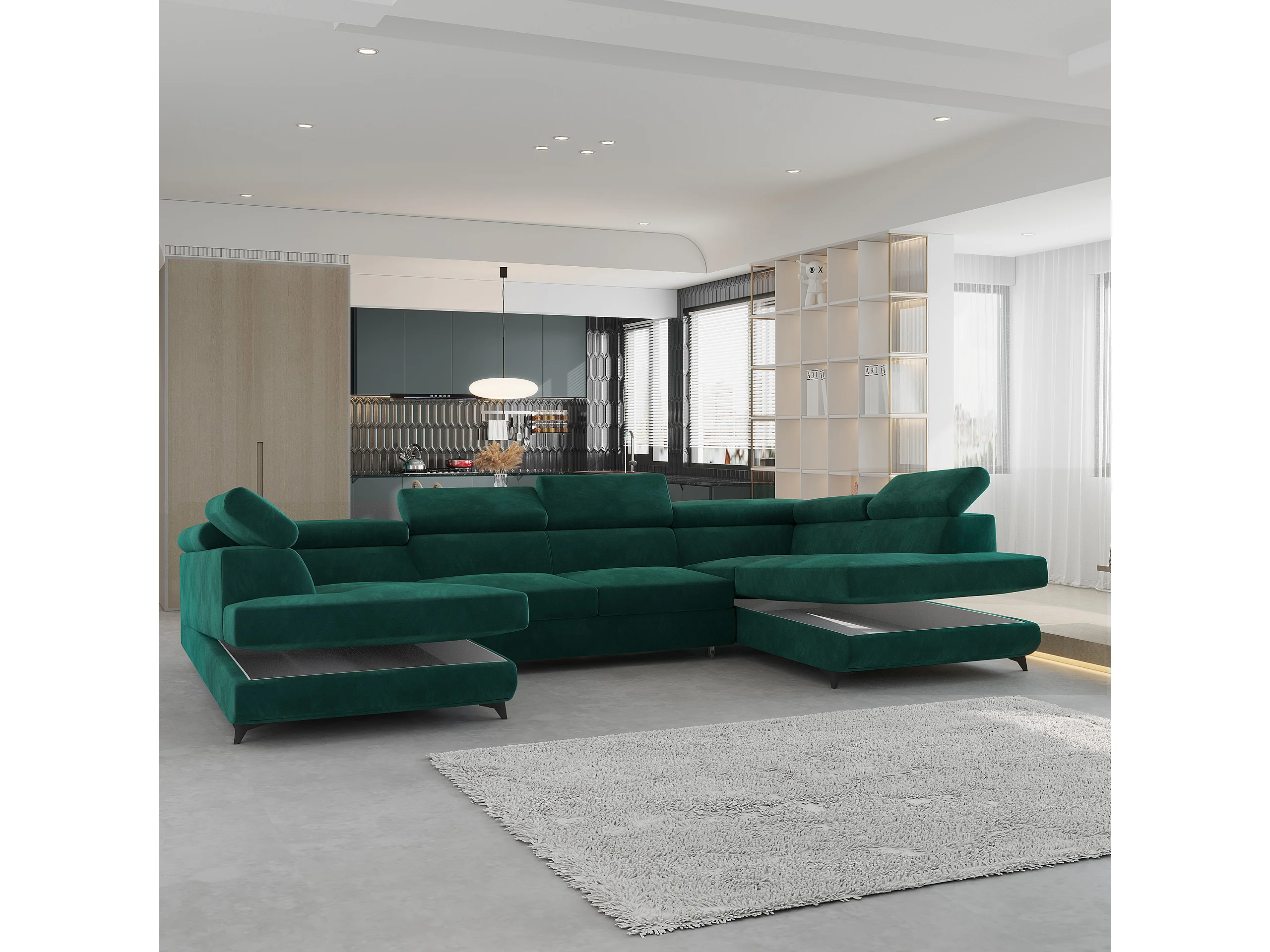 Canapé d'angle VINTESSA Vert en velours avec fonction de couchage