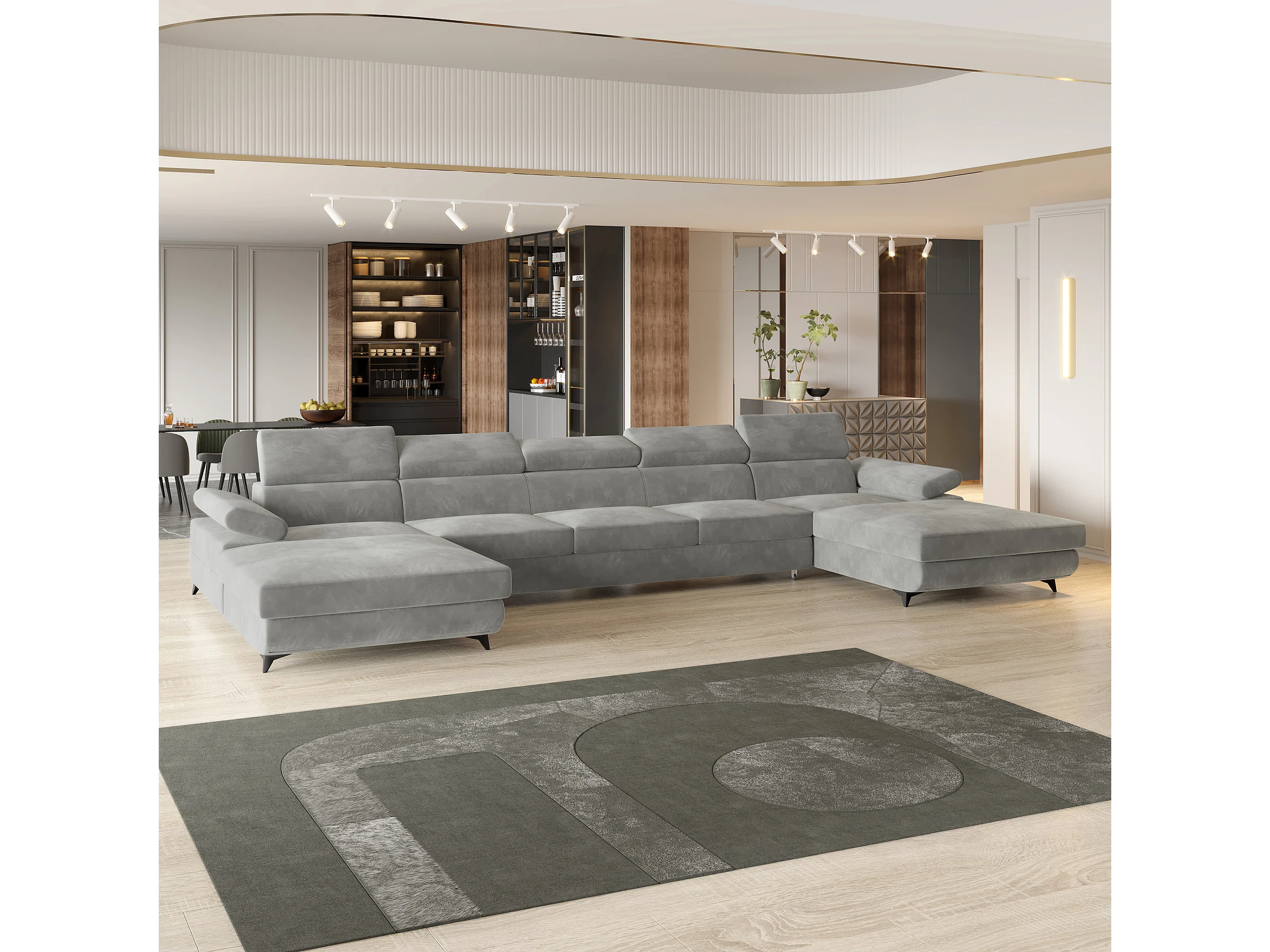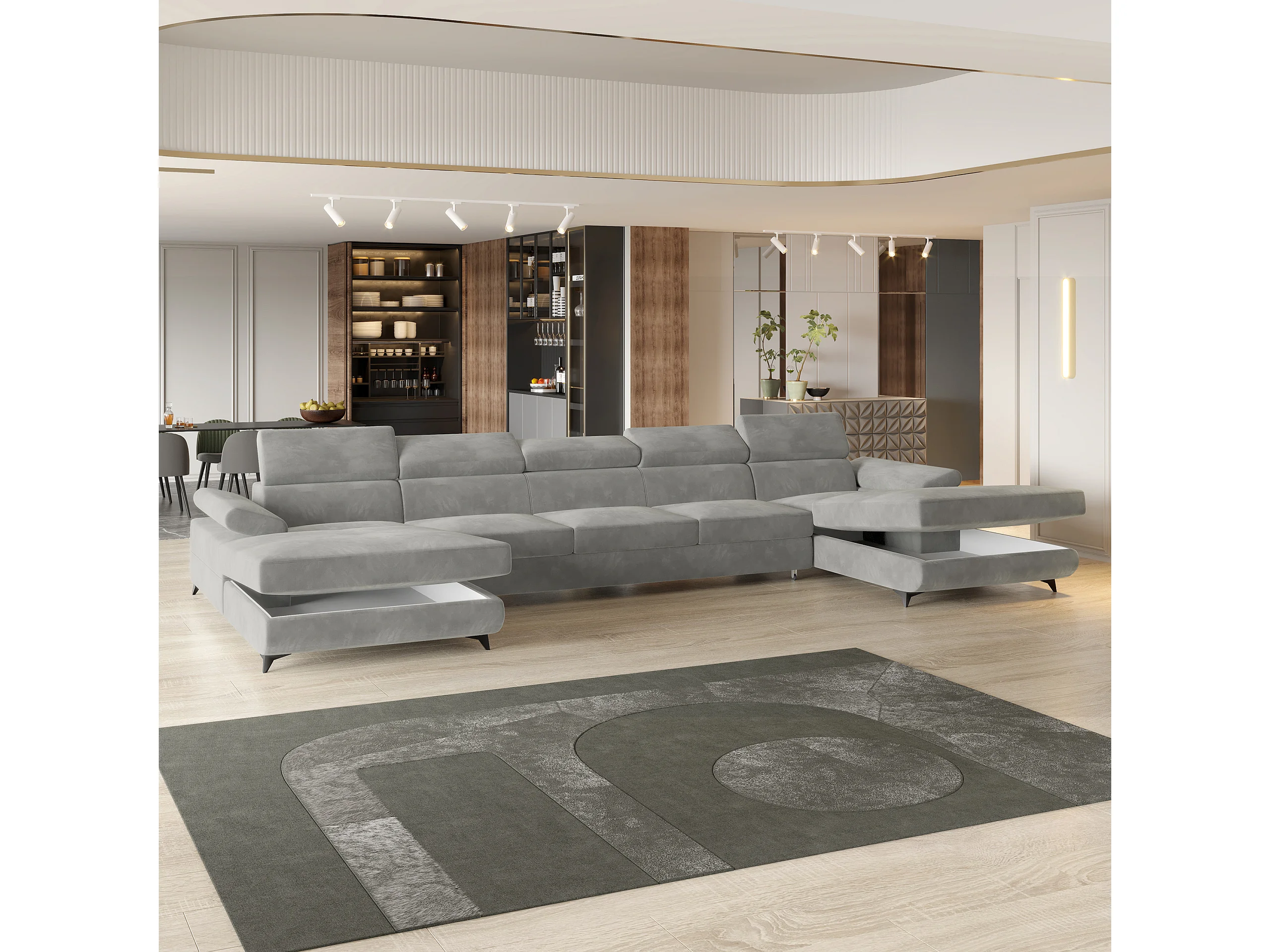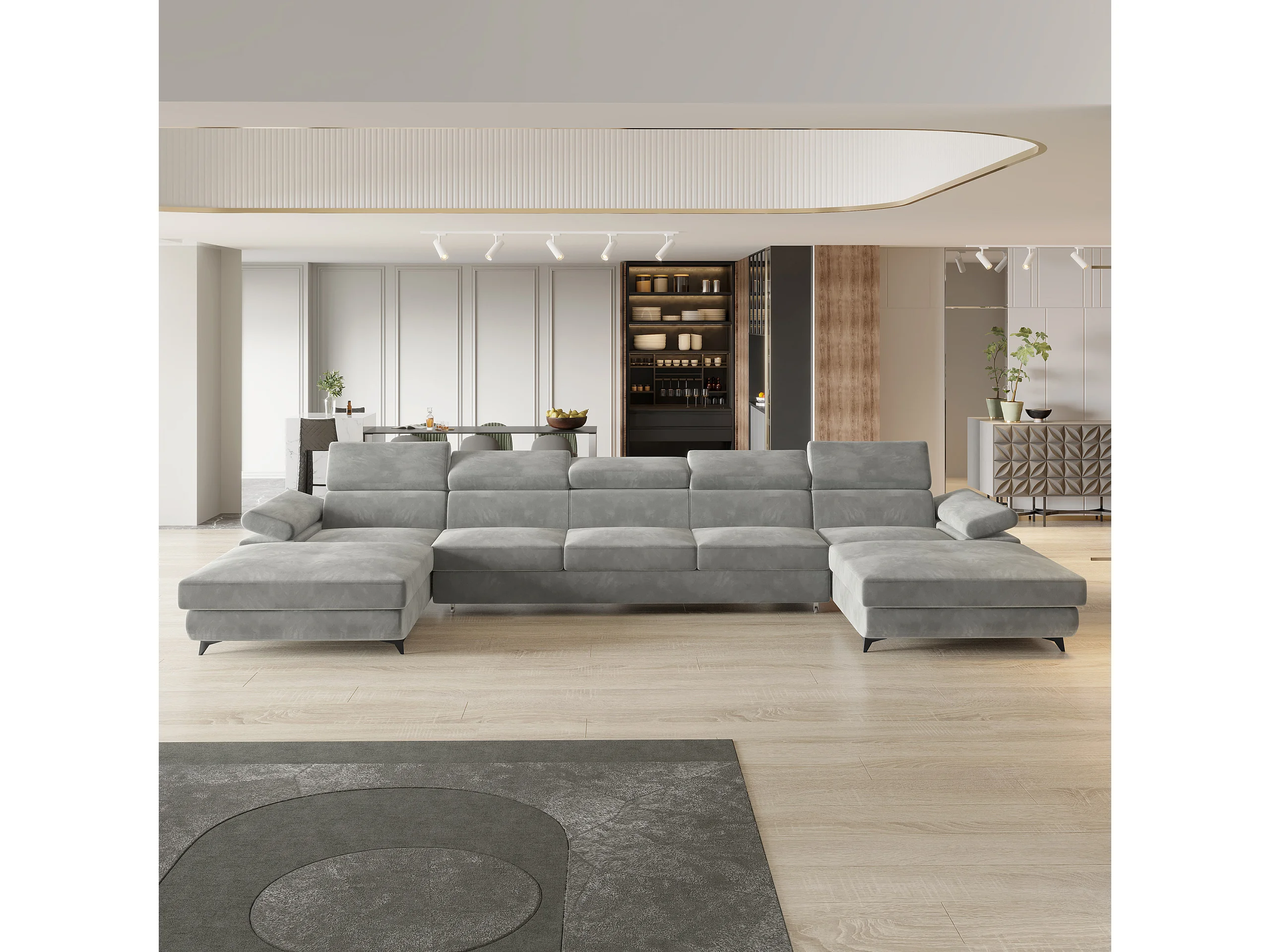 Canapé d'angle VIVENTE Gris clair en velours avec fonction de couchage