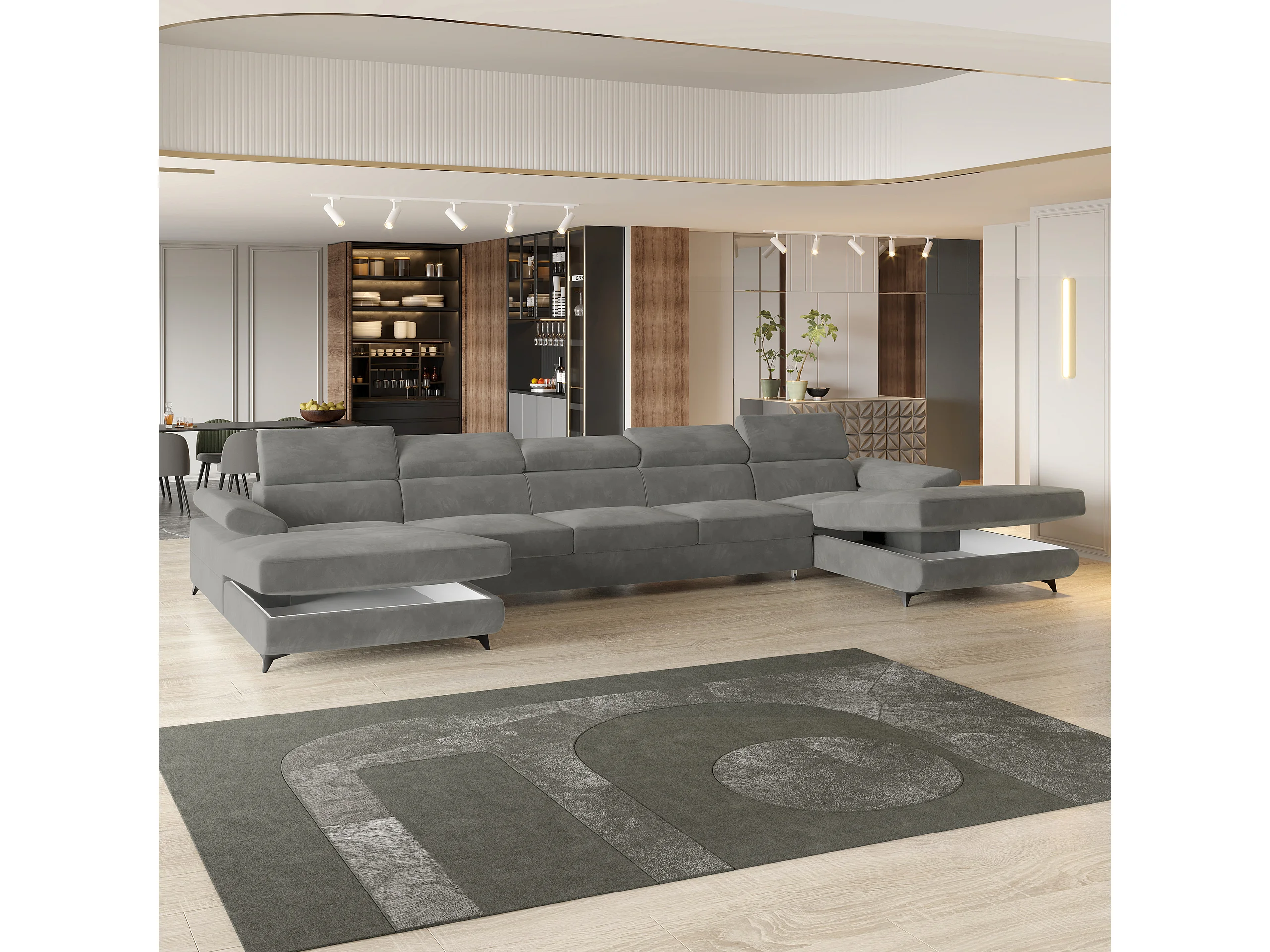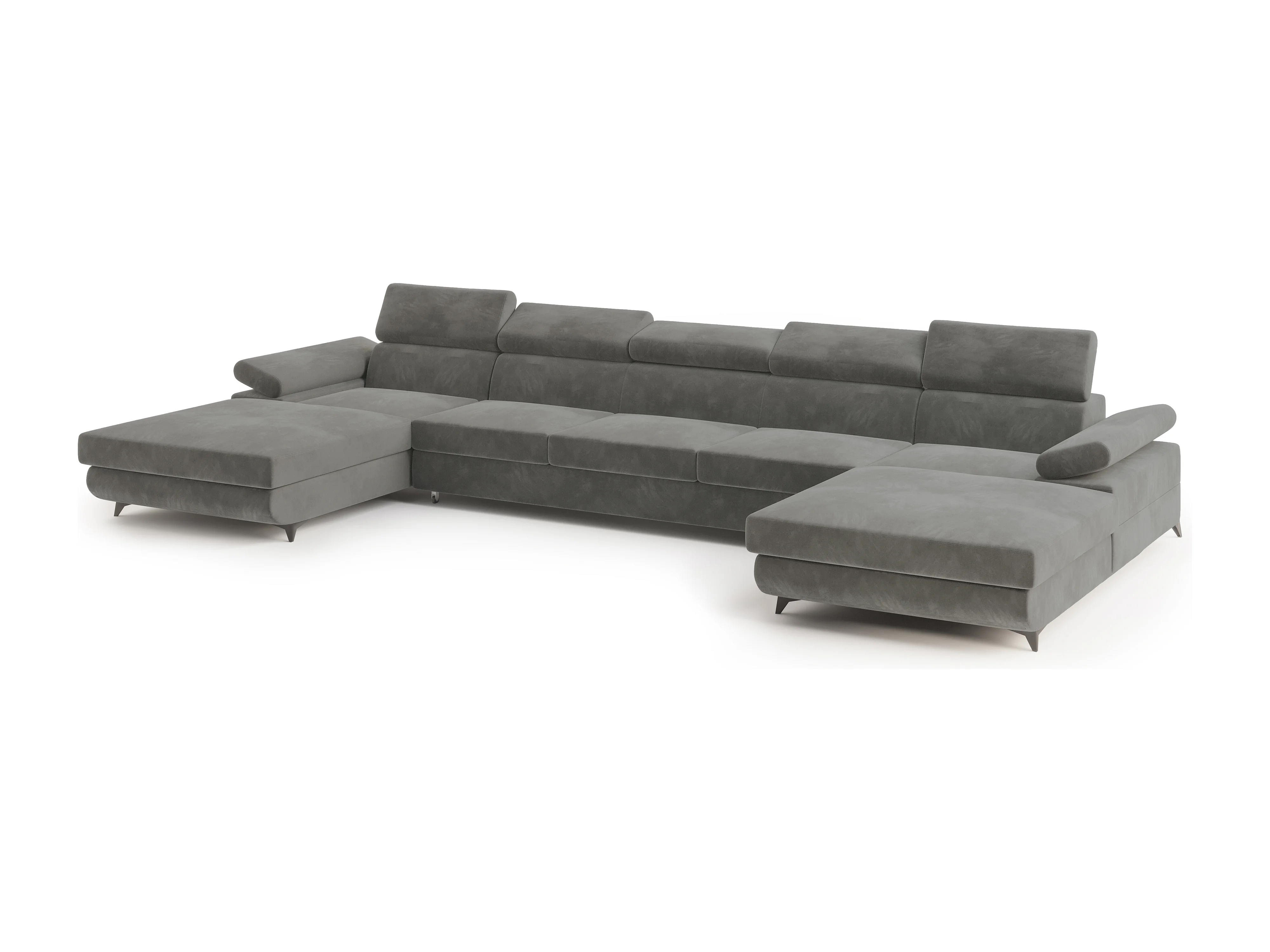 Canapé d'angle VIVENTE Gris en velours avec fonction de couchage