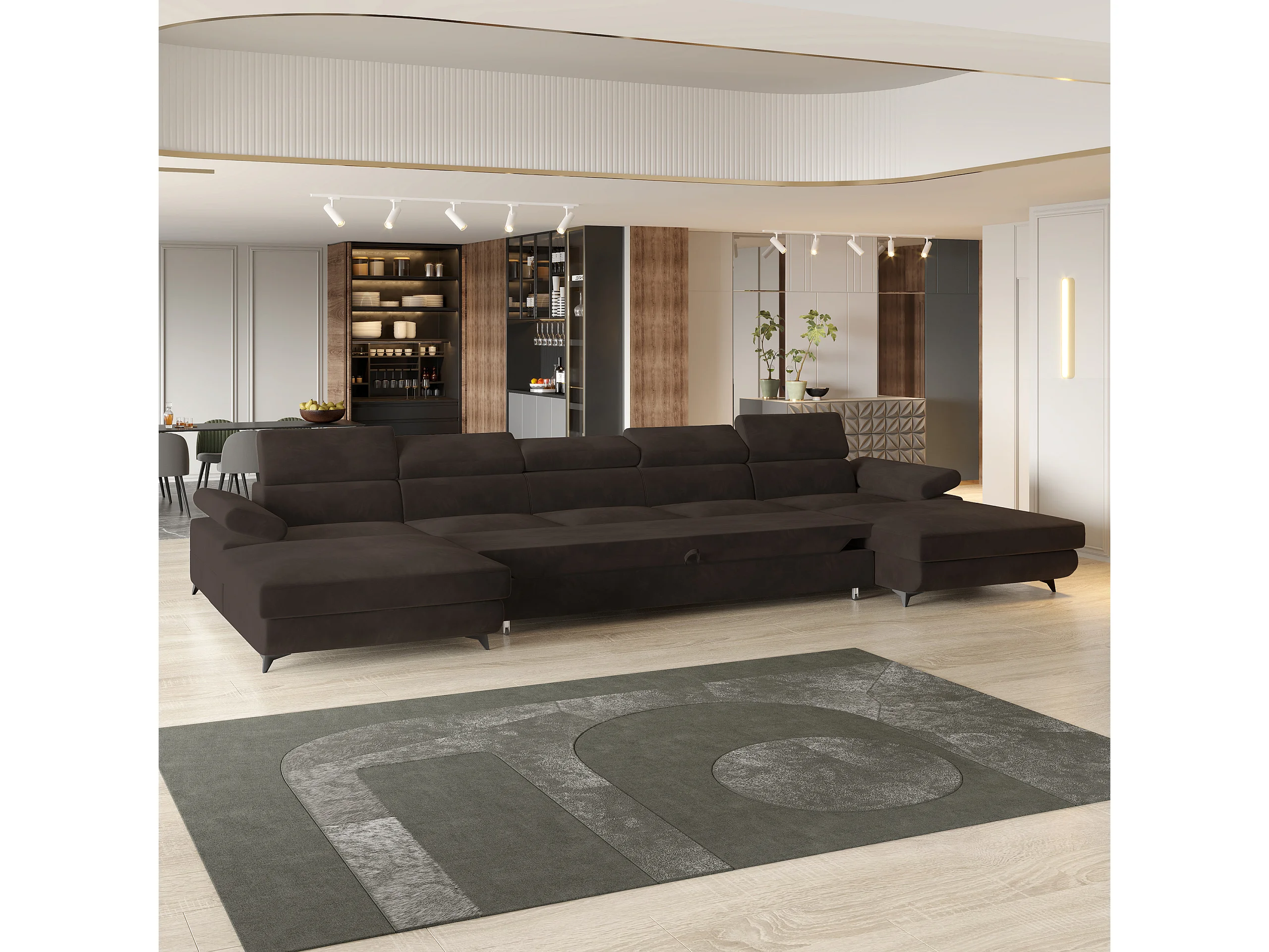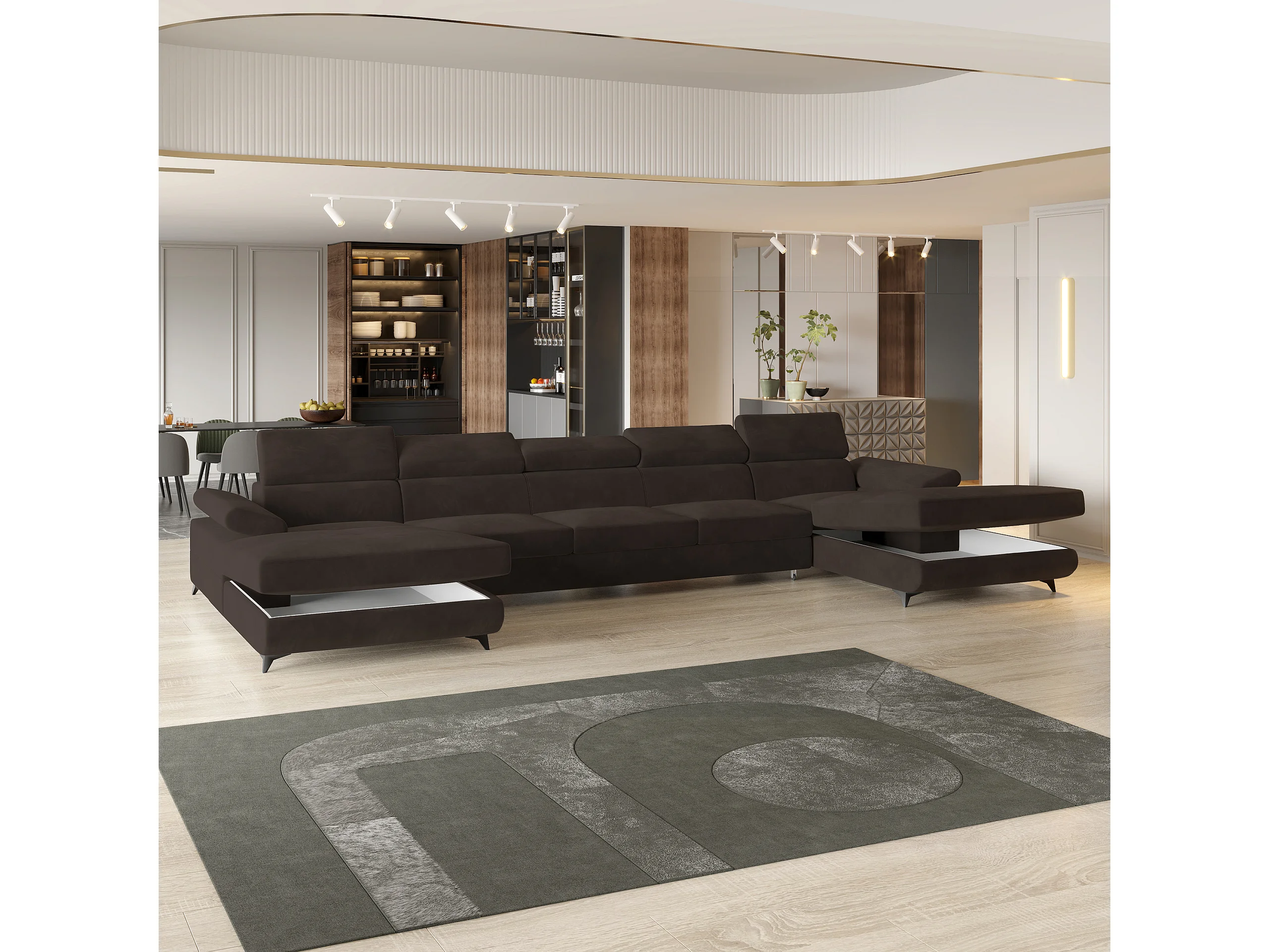 Canapé d'angle VIVENTE Marron en velours avec fonction de couchage