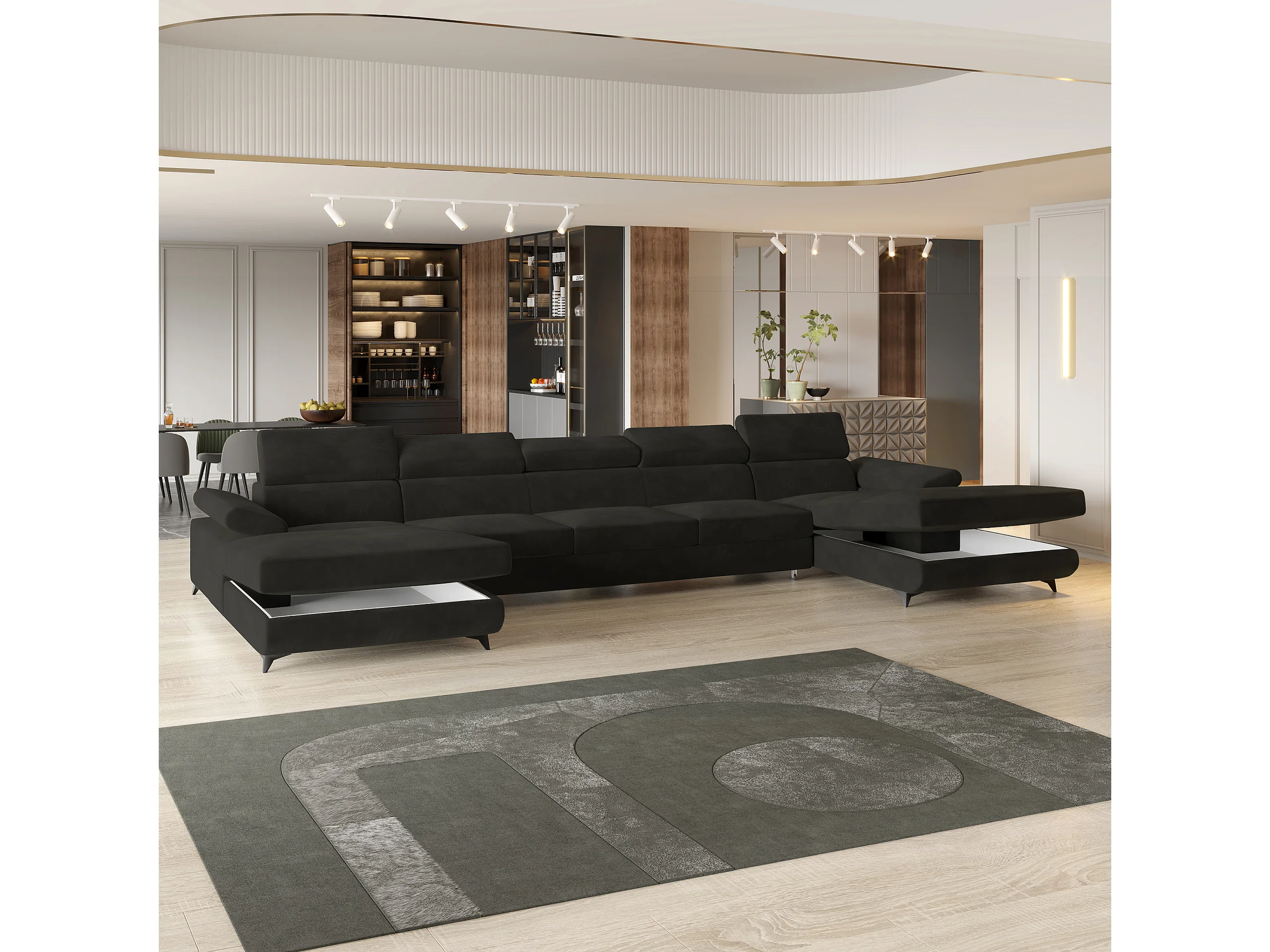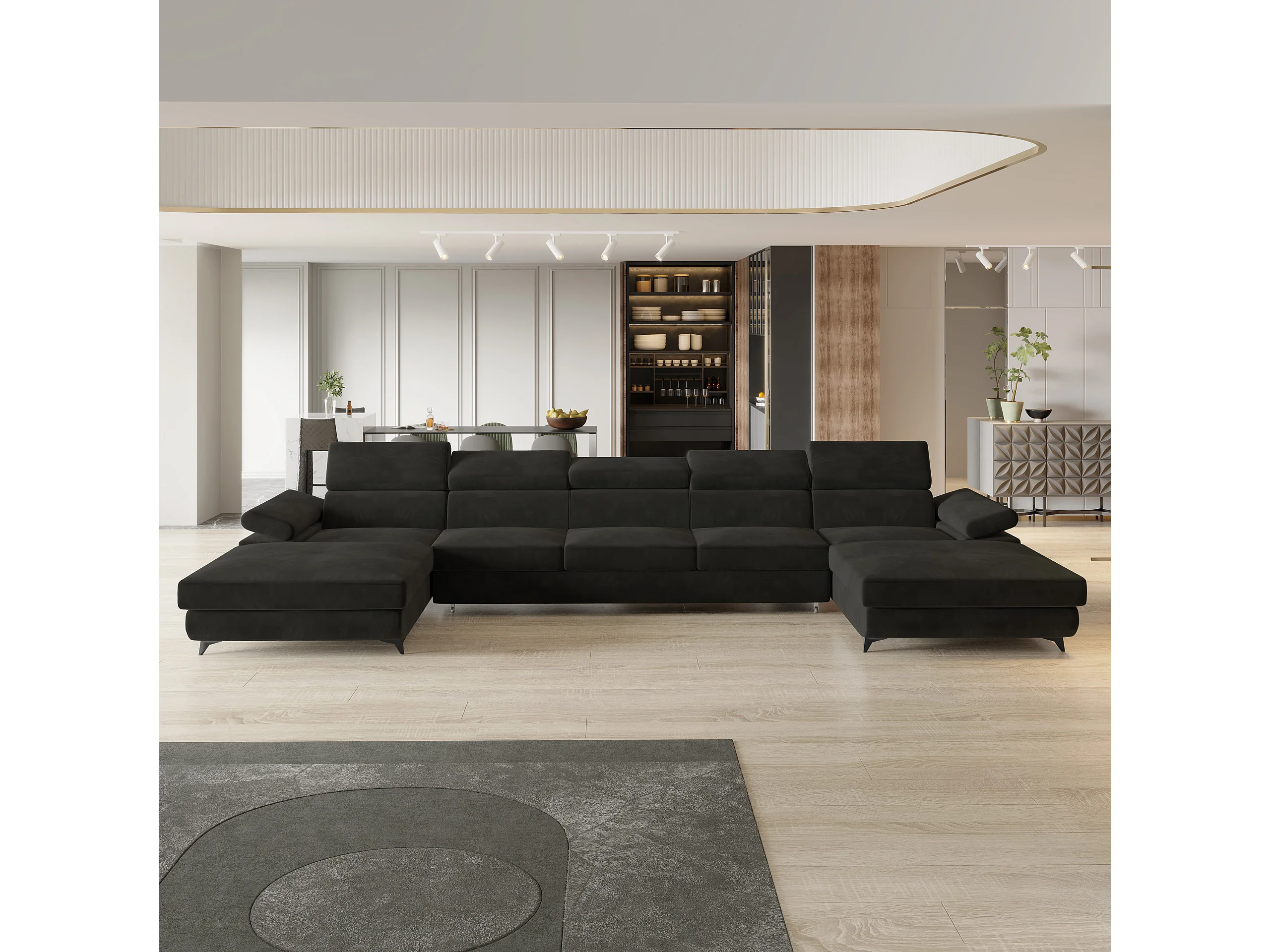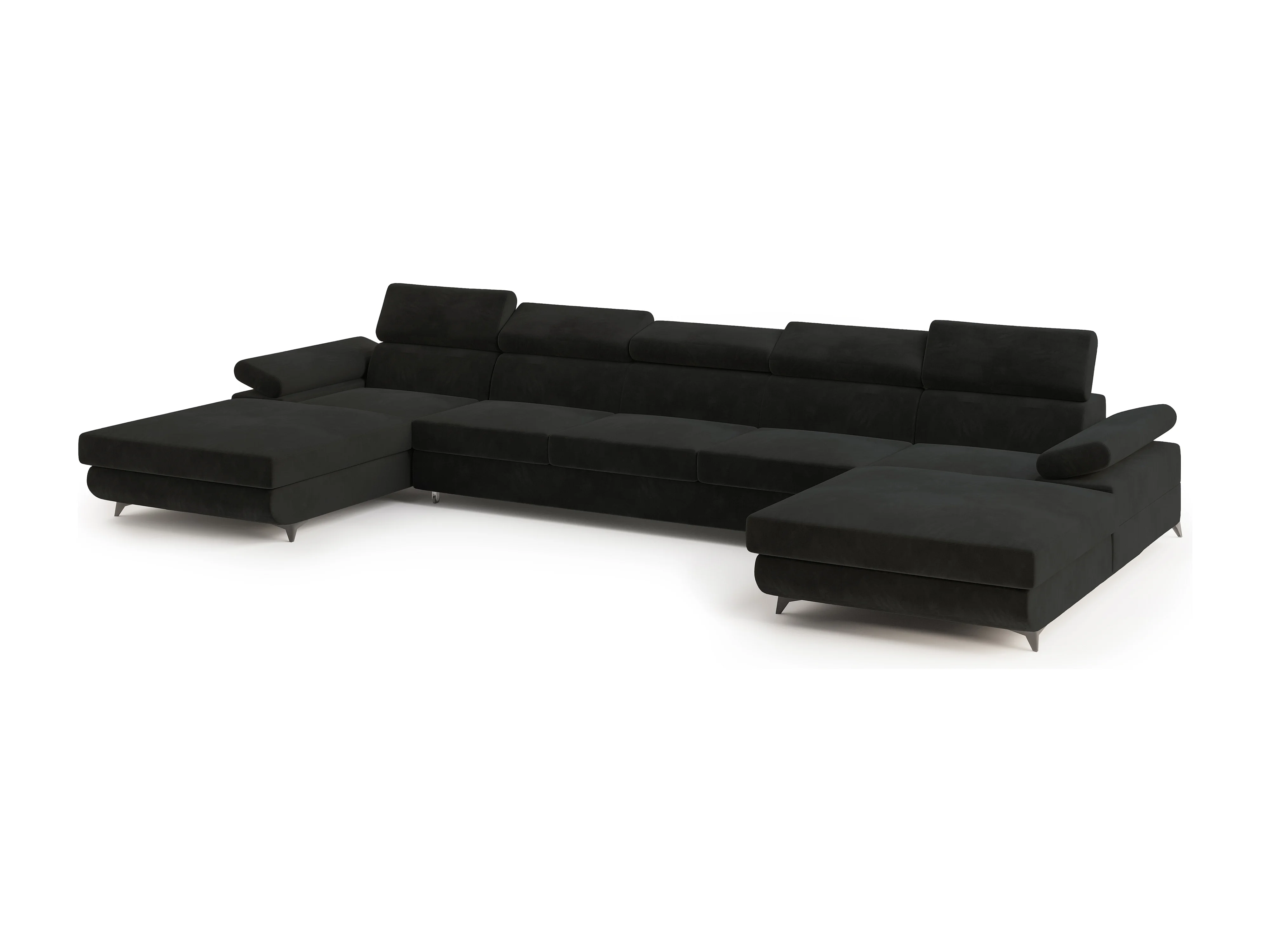 Canapé d'angle VIVENTE Noir en velours avec fonction de couchage