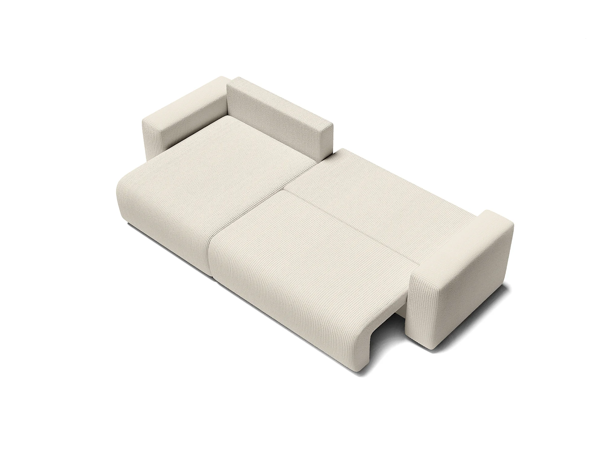 Canapé d'angle XL LEO convertible velours côtelé beige 5 places