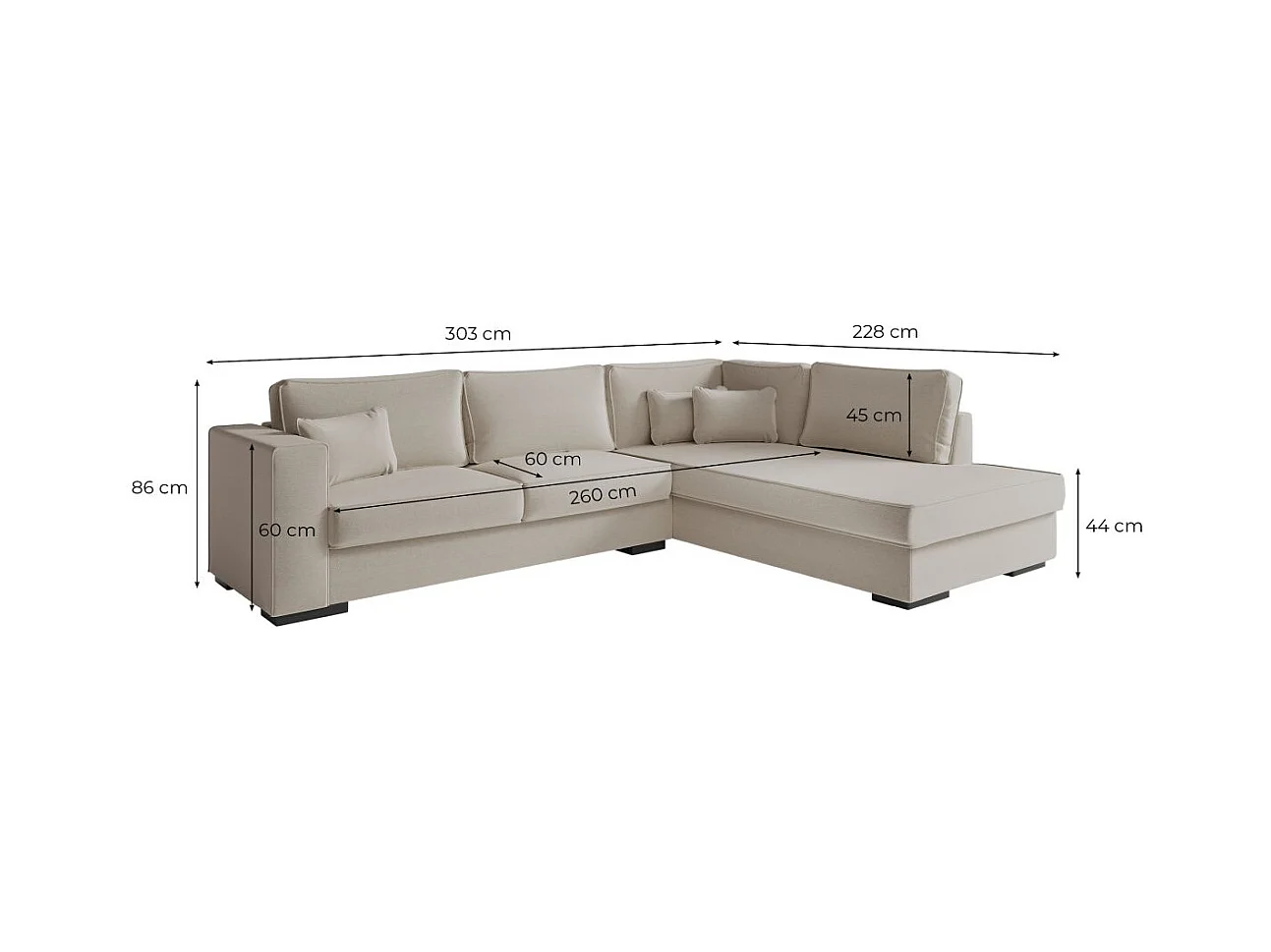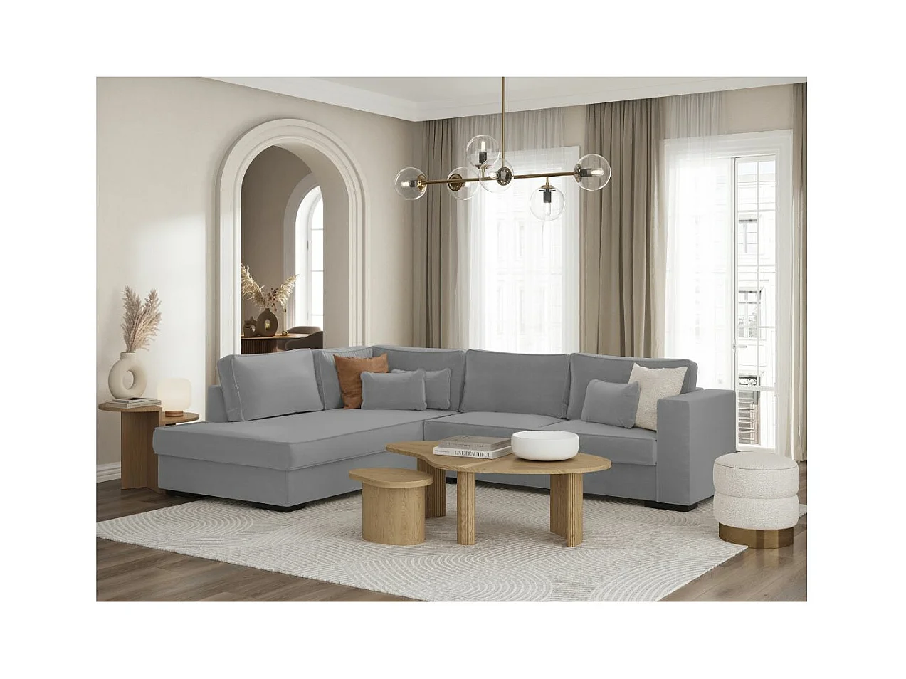Canapé d'angle gauche XXL 6 places Belami en tissu - Gris clair - L303 x 228 x 86cm - Loungitude