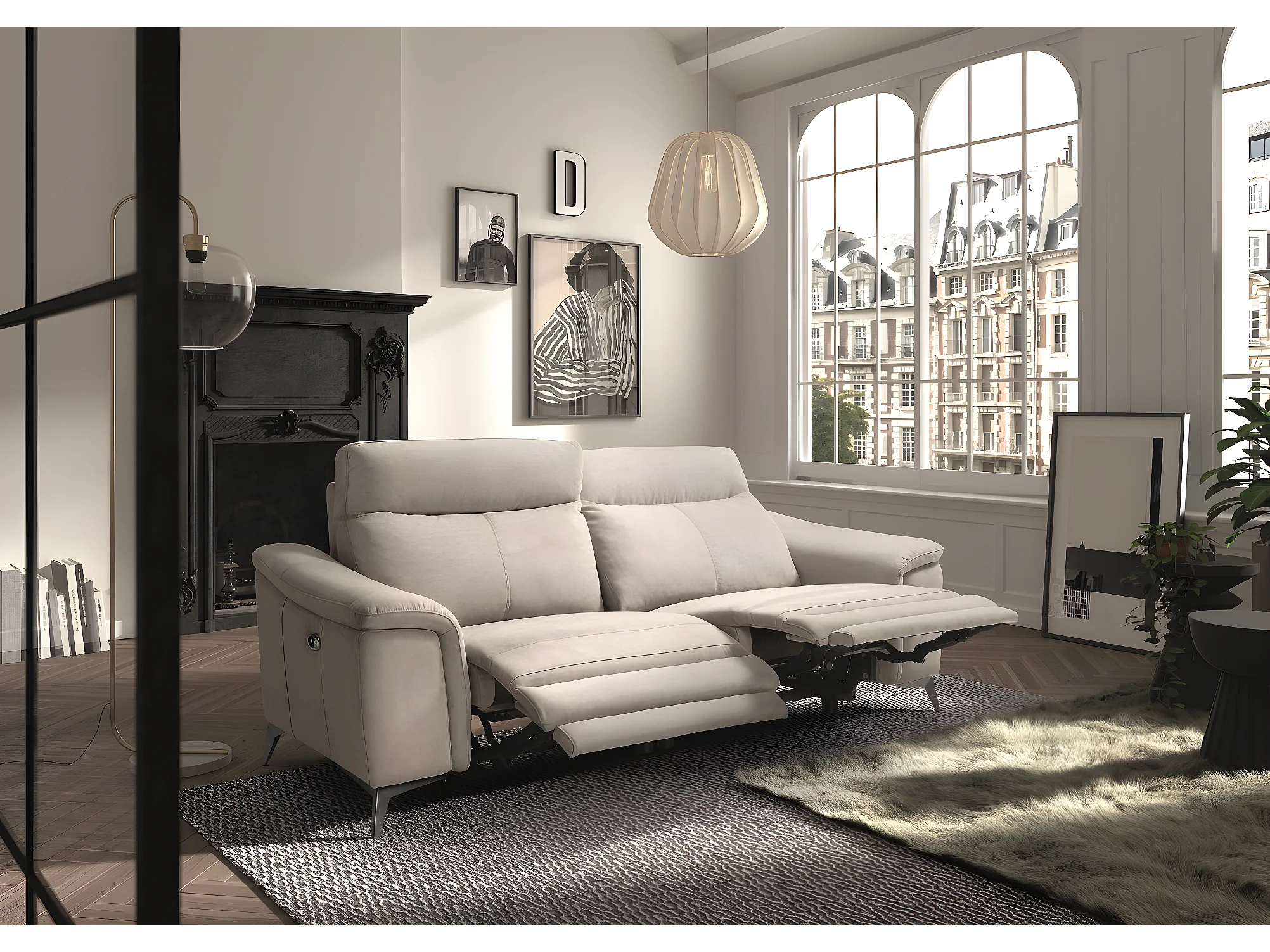 Canapé de 3 places (2 relax électriques) en tissu couleur Gris clair
