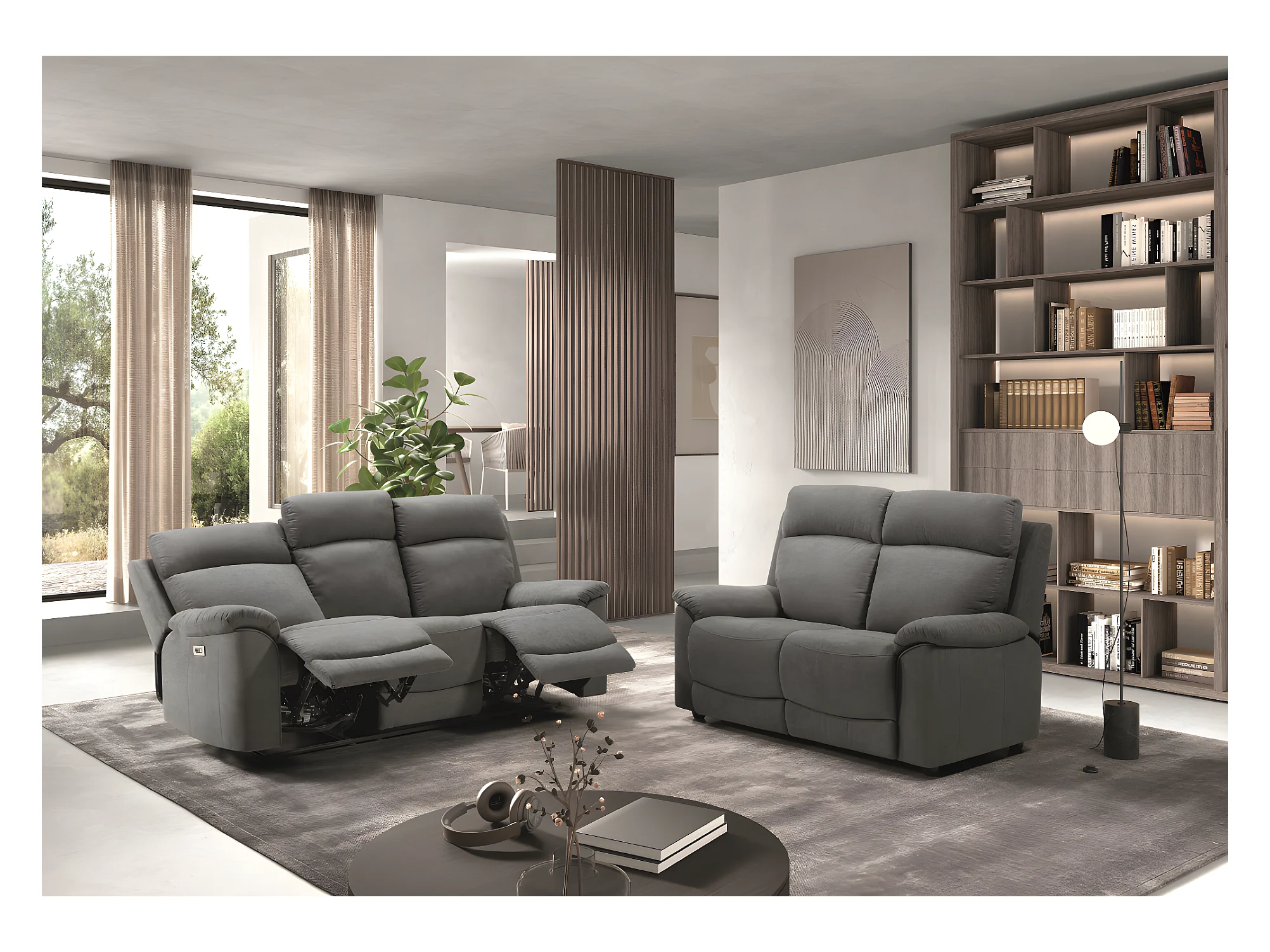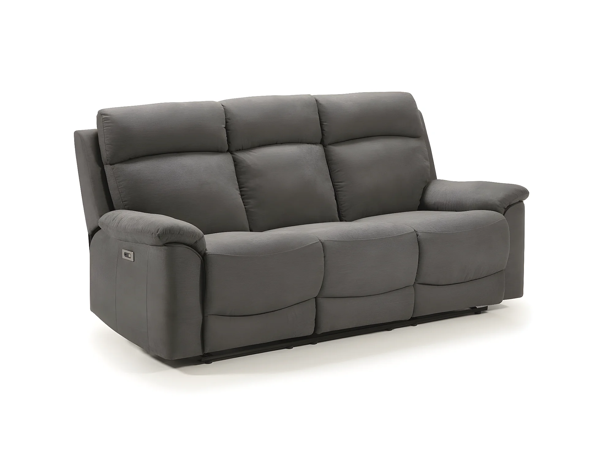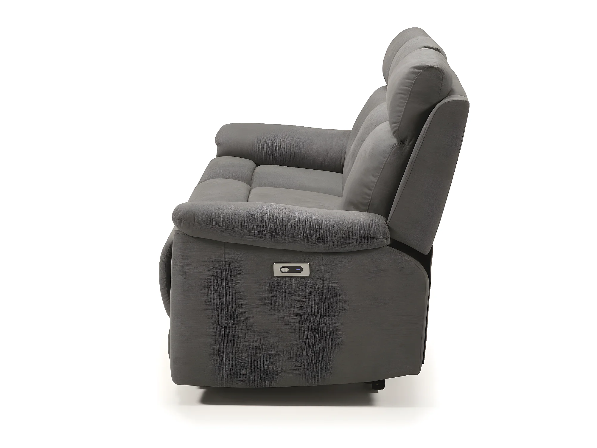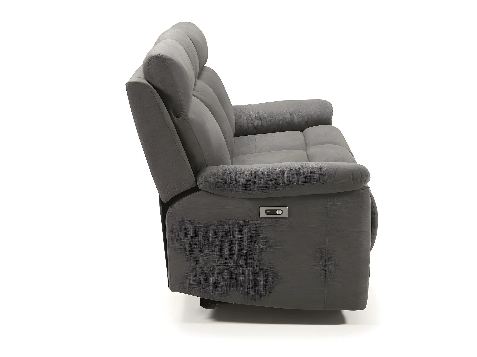 Canapé de 3 places (2 relax électriques) en tissu couleur Gris foncé