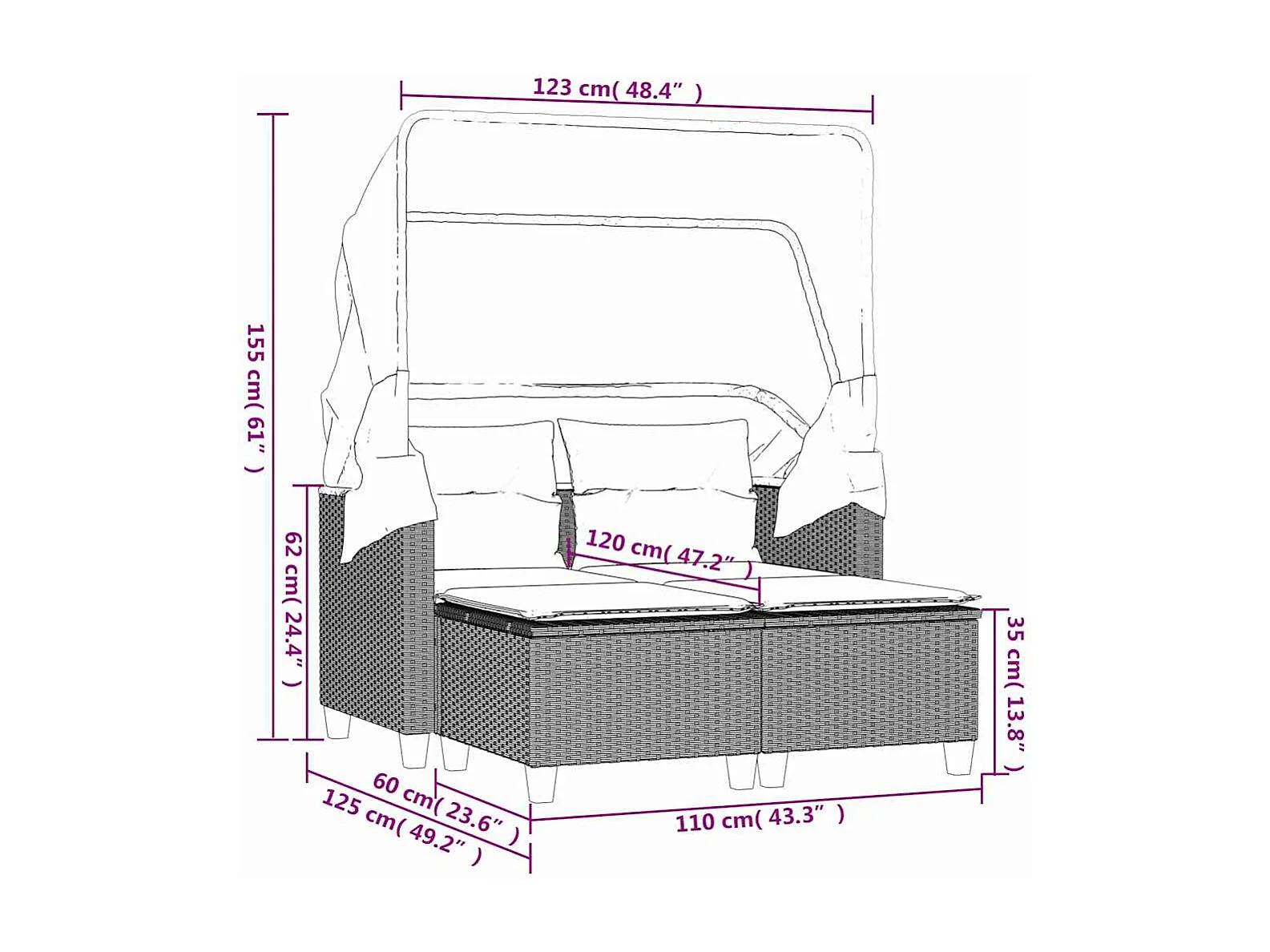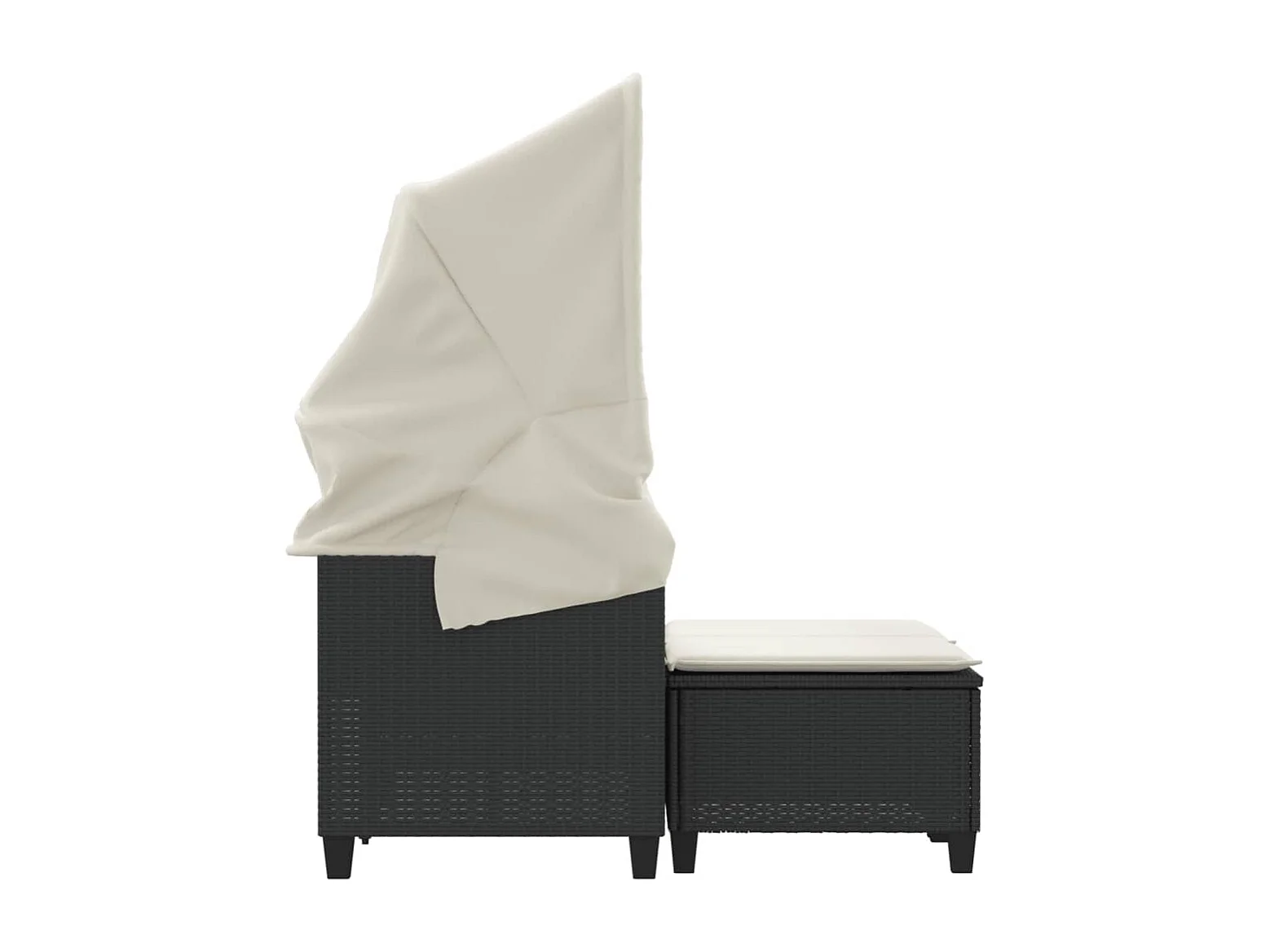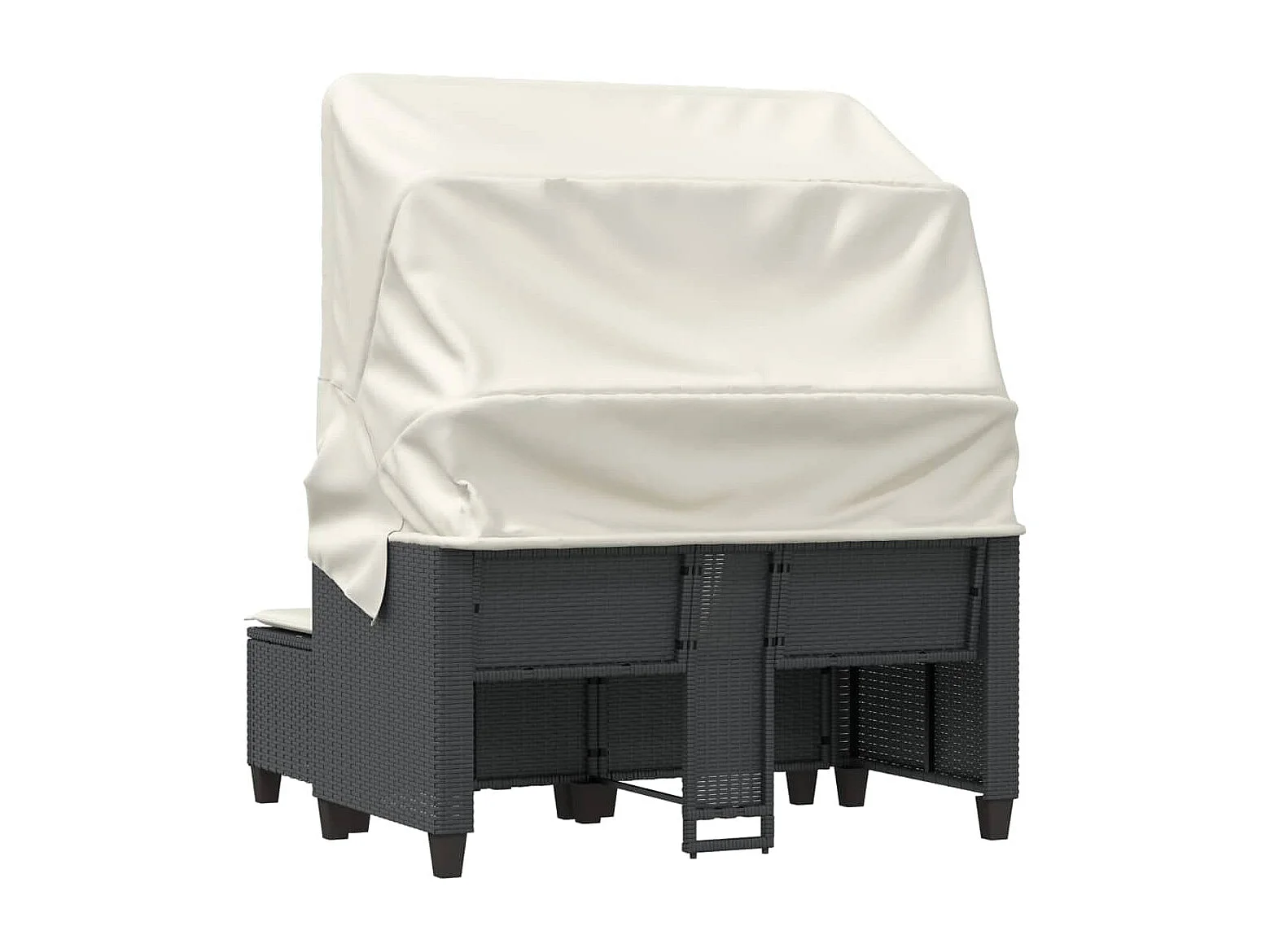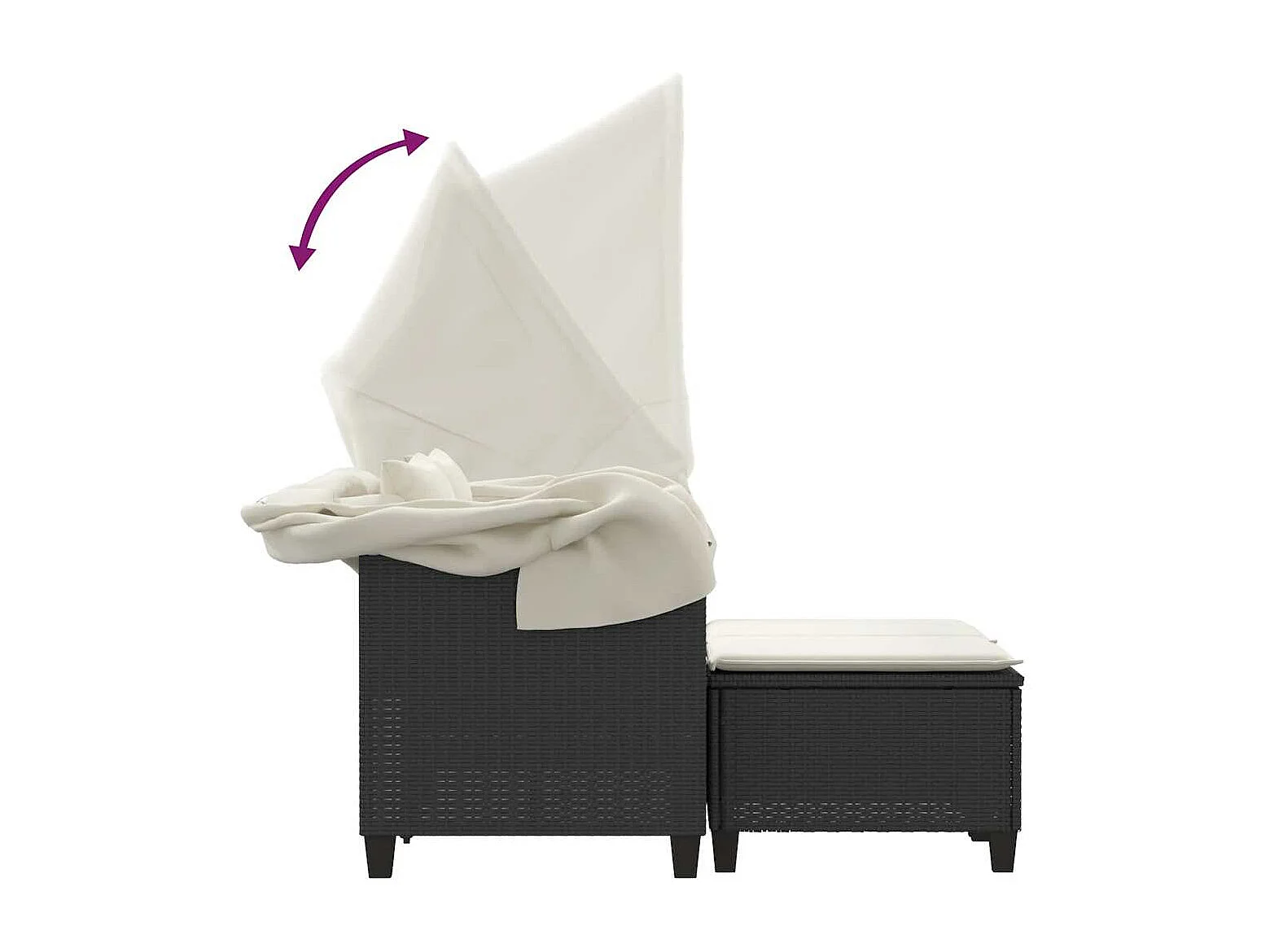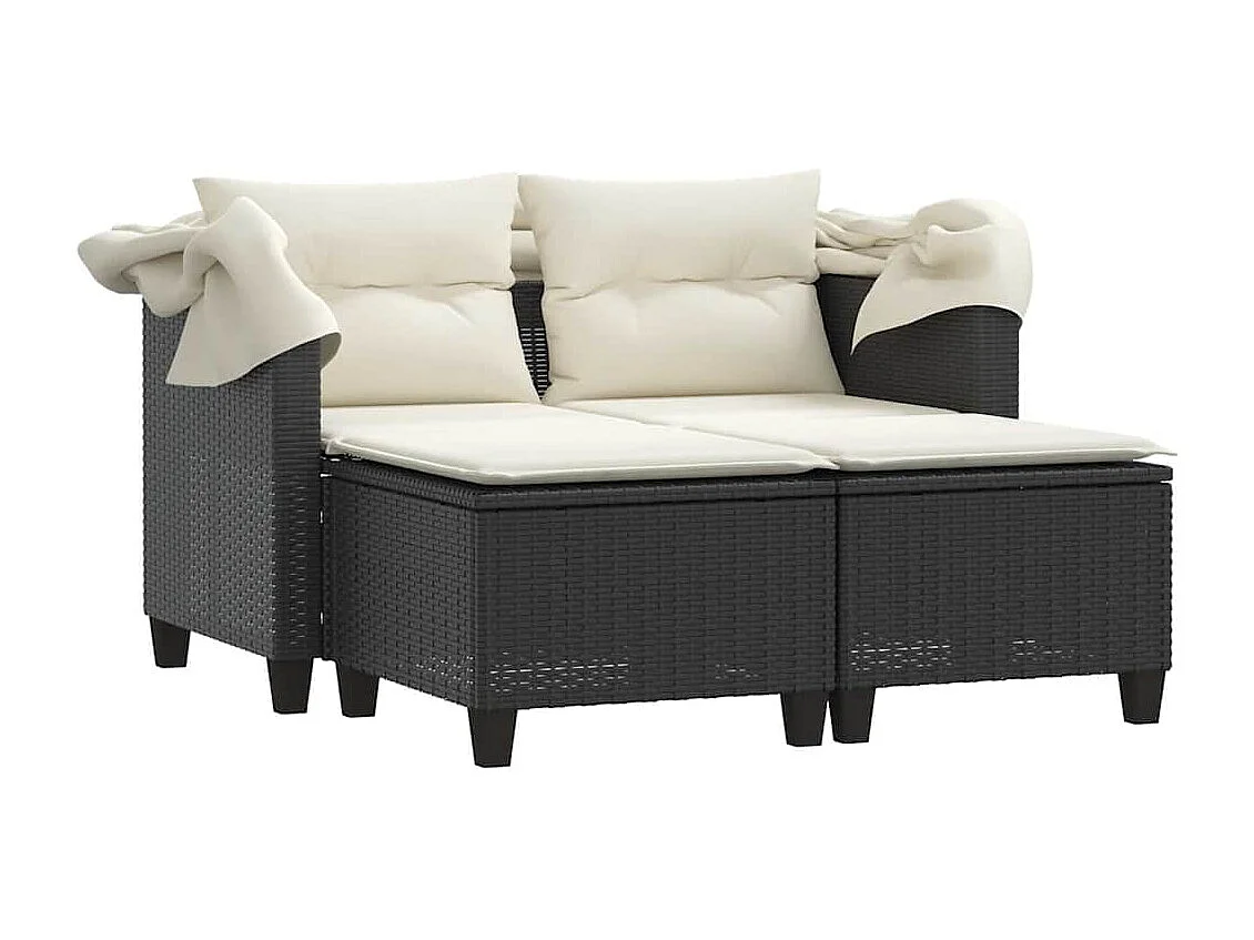 Canapé de jardin 2 places avec auvent et tabourets noir rotin