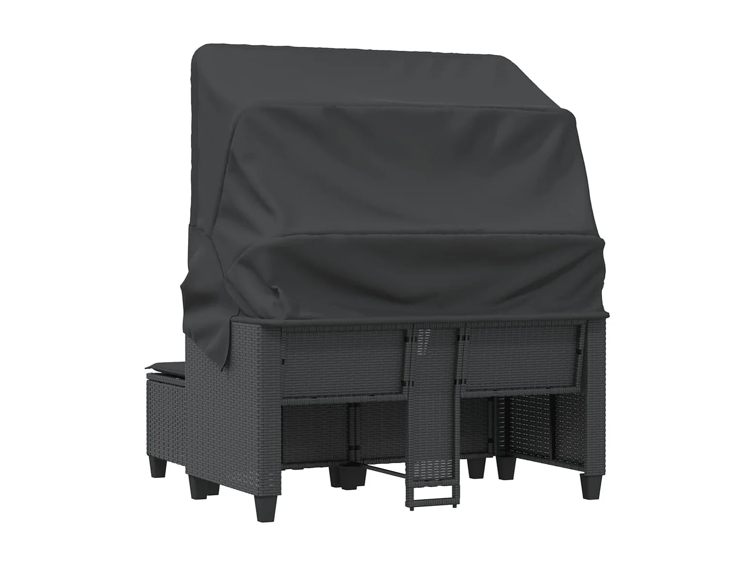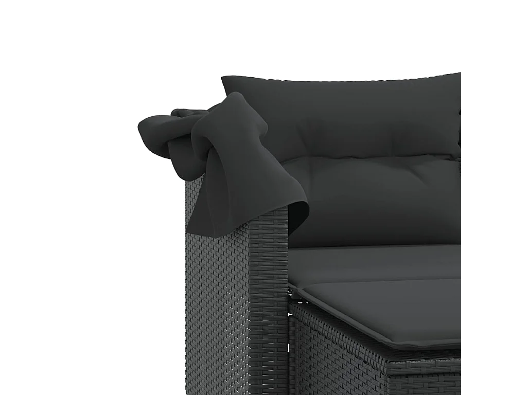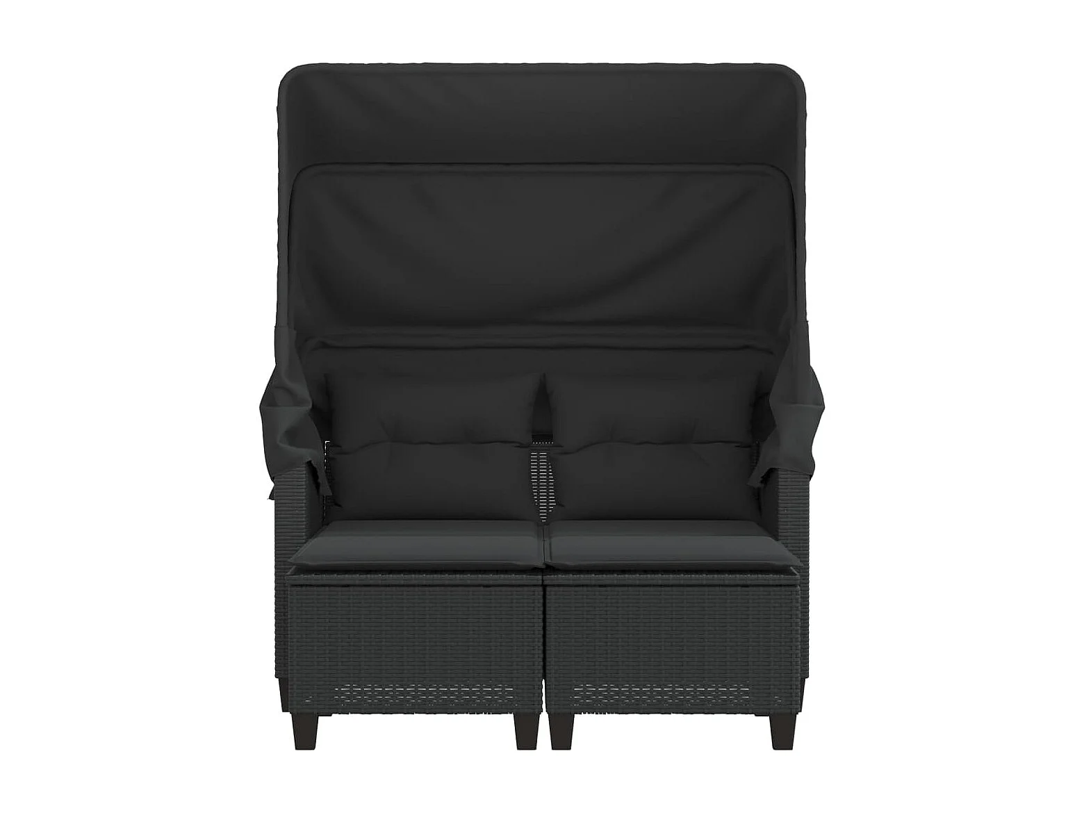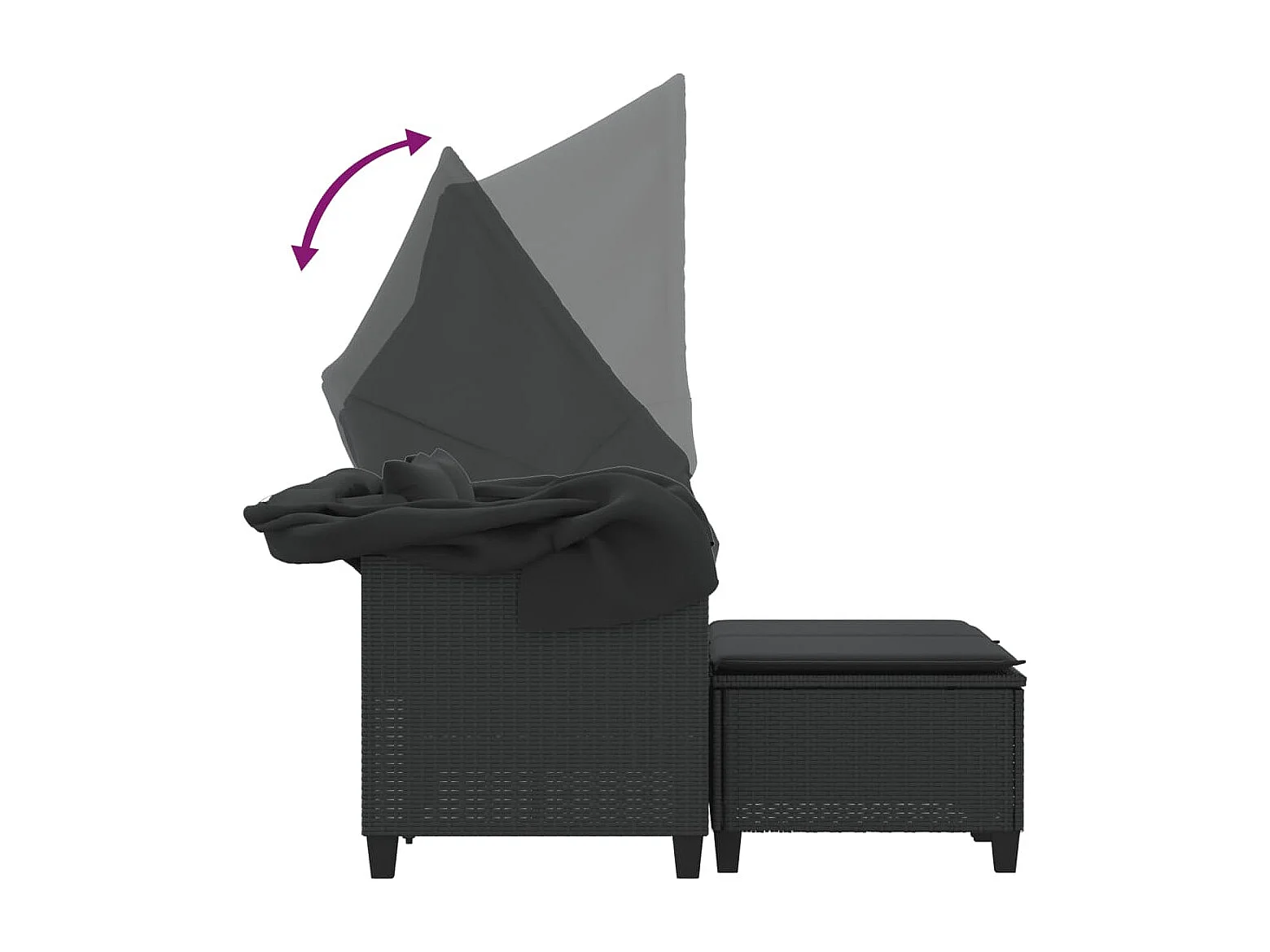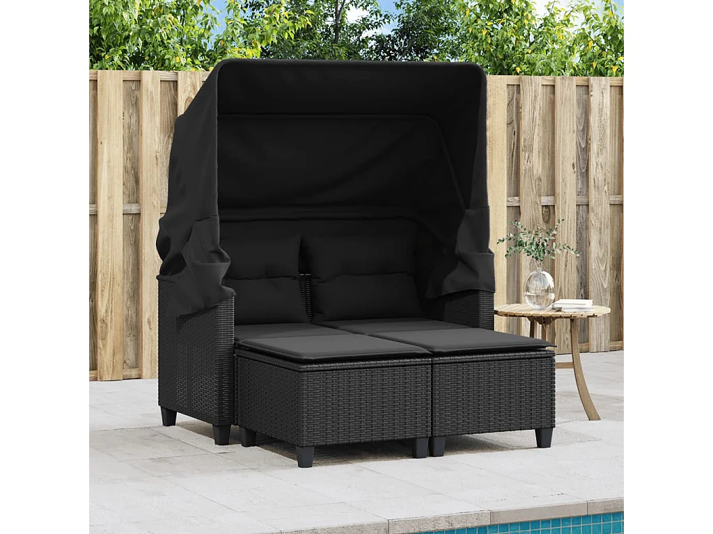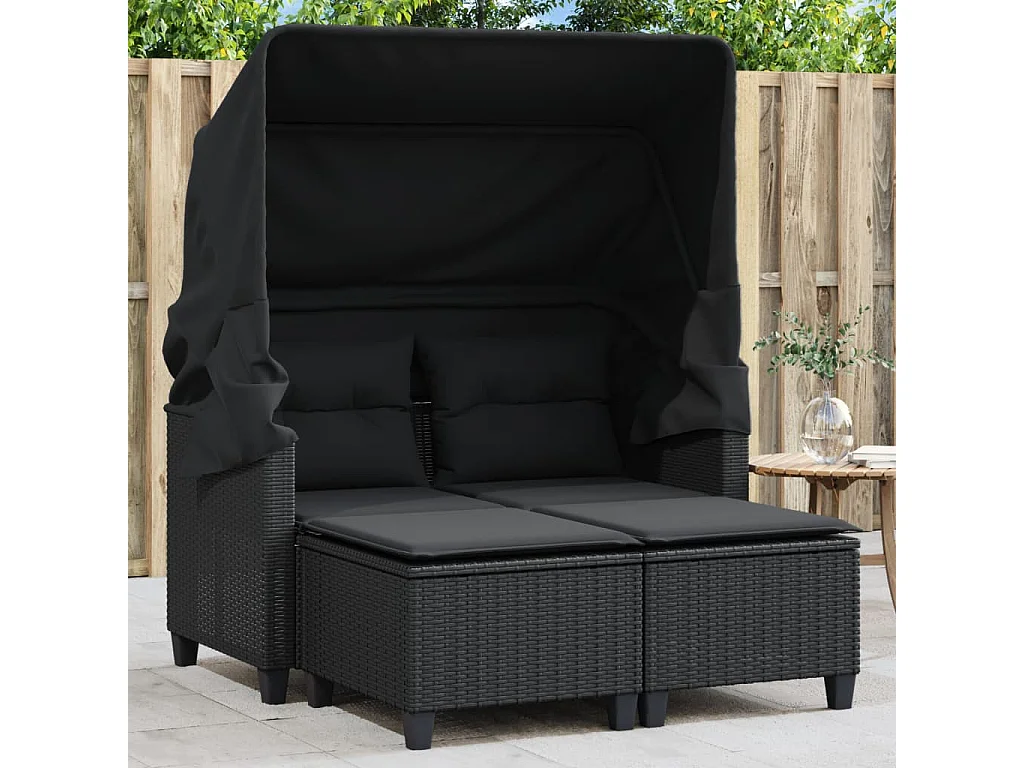 Canapé de jardin 2 places avec auvent et tabourets noir rotin