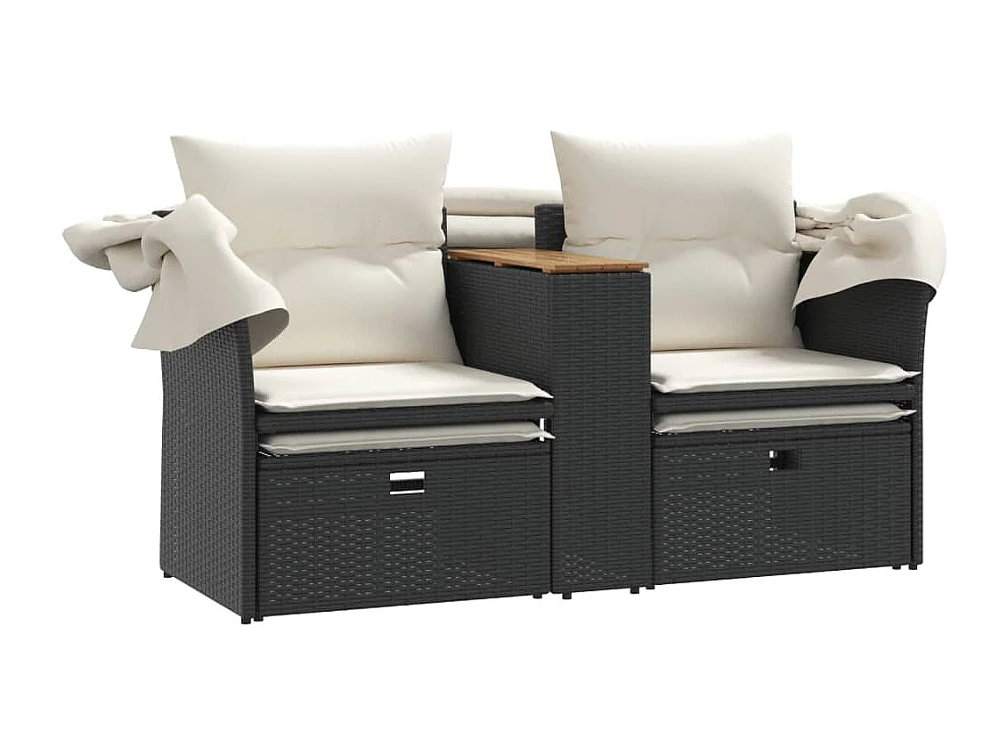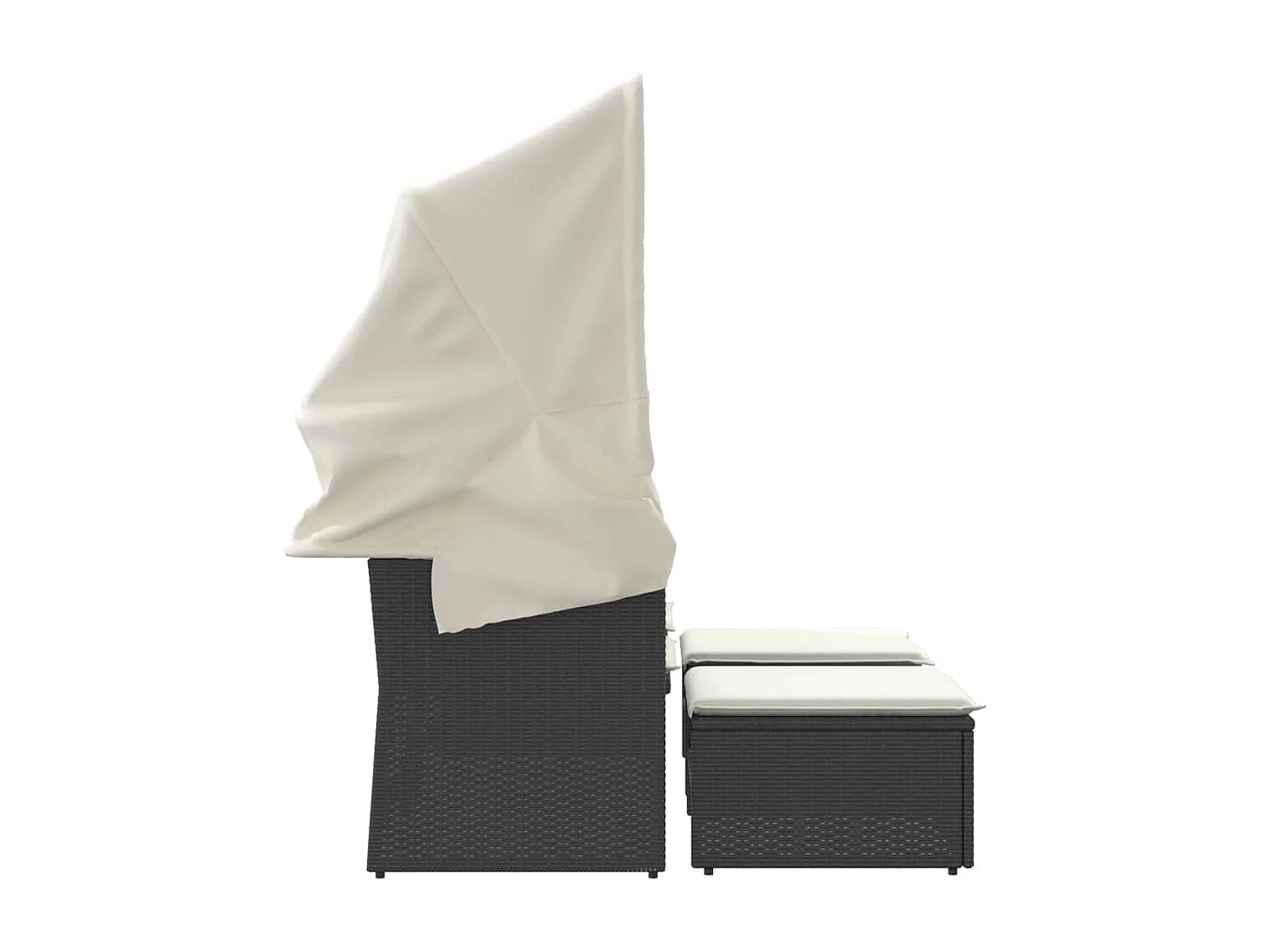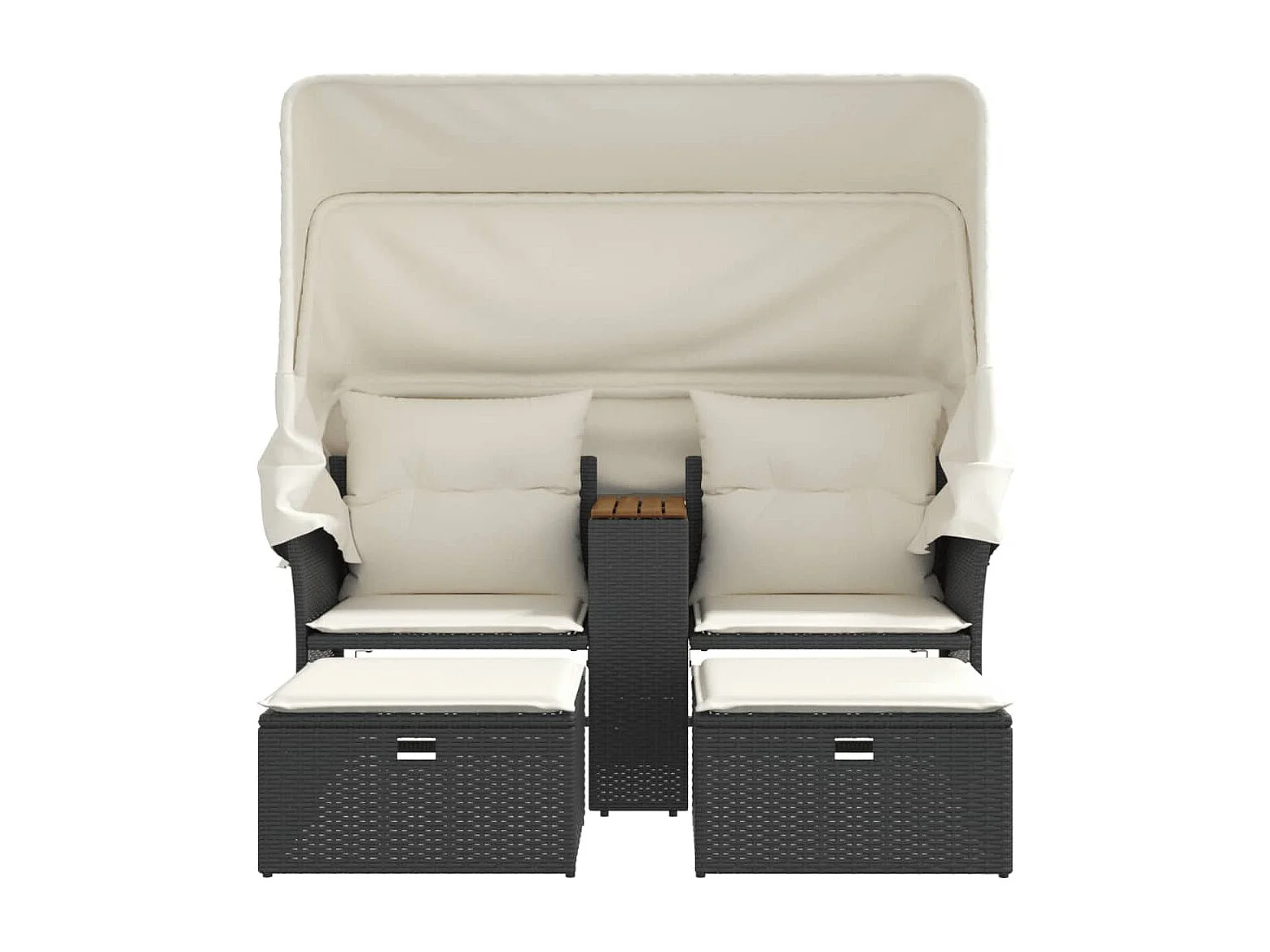 Canapé de jardin 2 places avec auvent et tabourets noir rotin