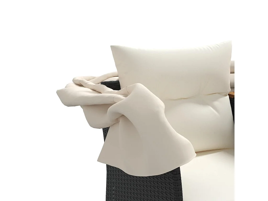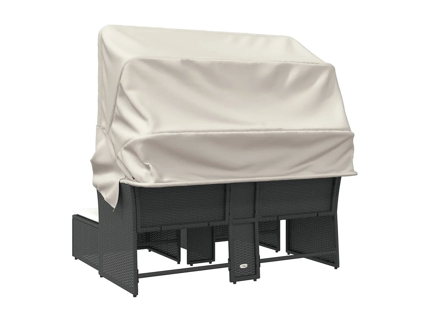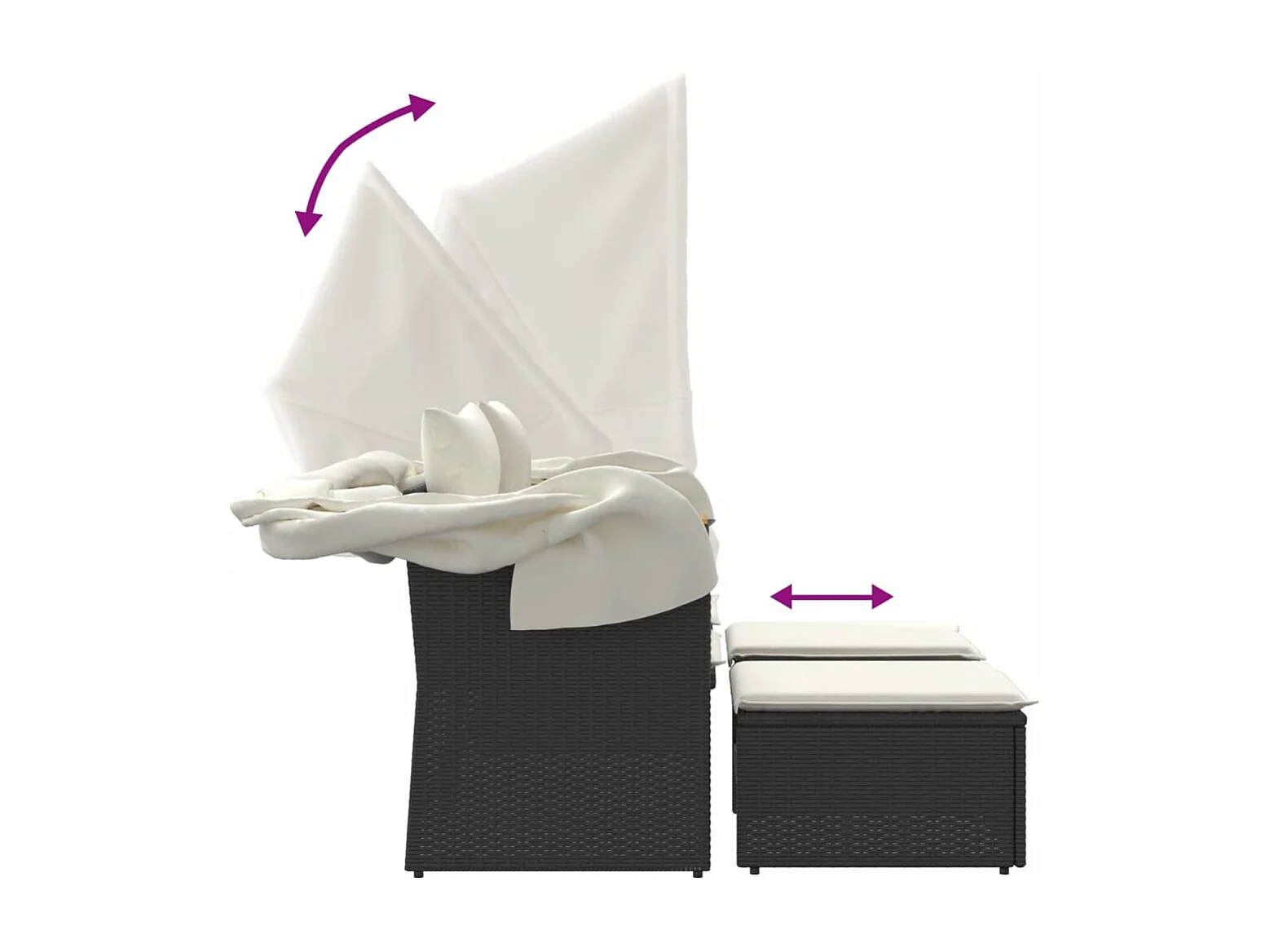 Canapé de jardin 2 places avec auvent et tabourets noir rotin