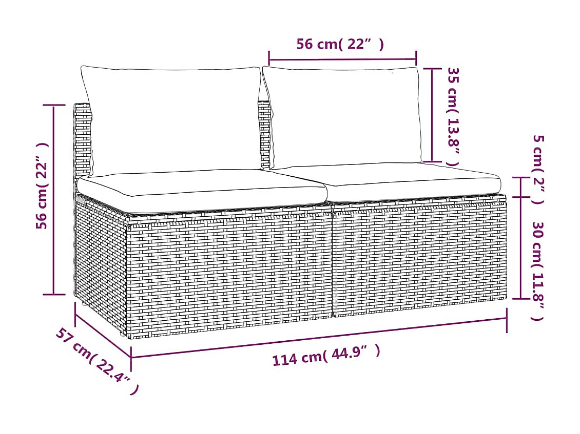 Canapé de jardin 2 places avec coussins Gris Résine tressée