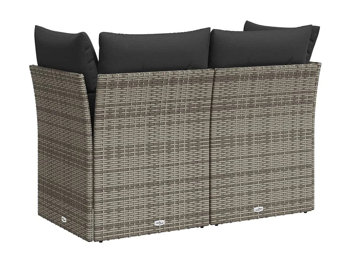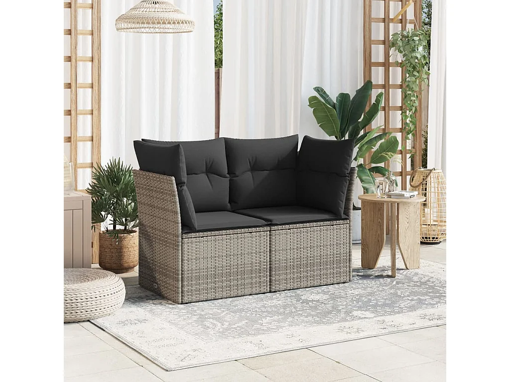 Canapé de jardin 2 places avec coussins gris résine tressée