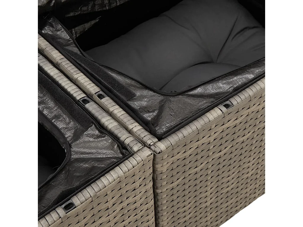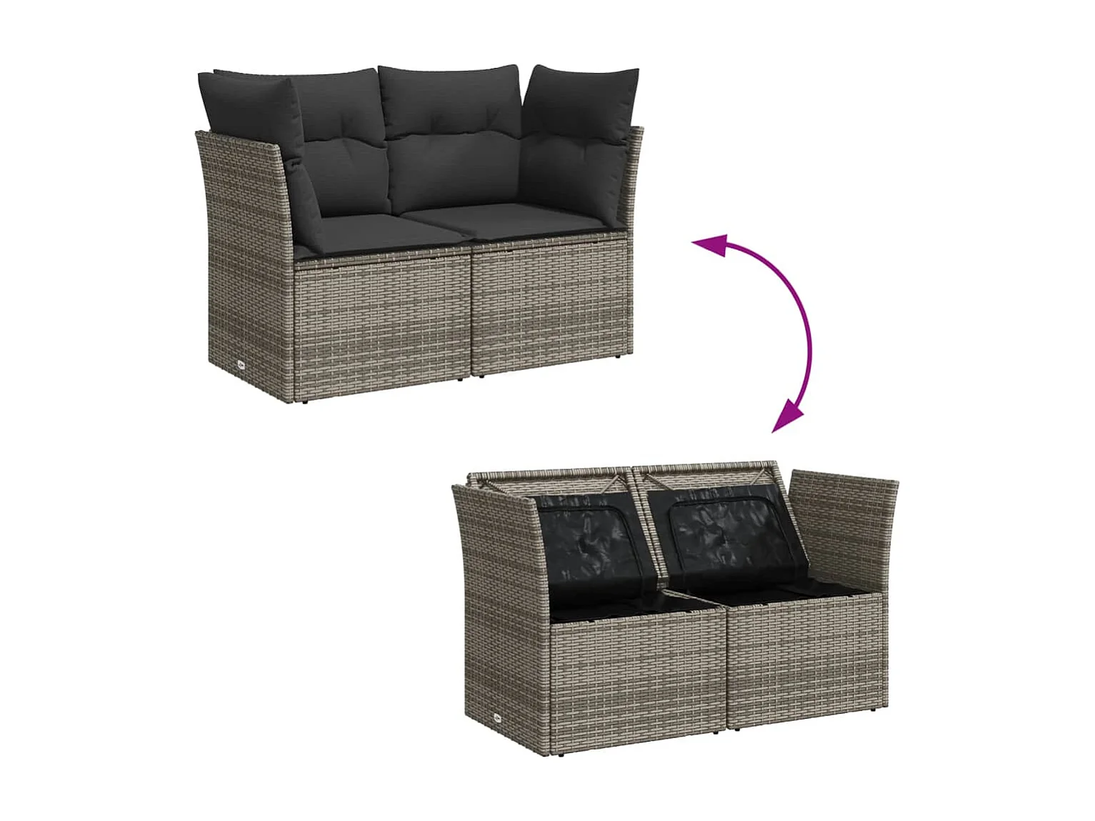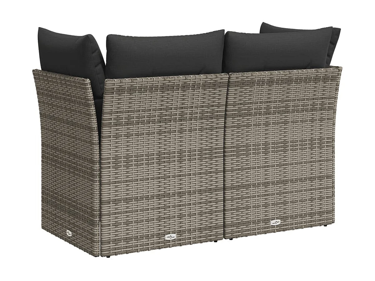 Canapé de jardin 2 places avec coussins gris résine tressée