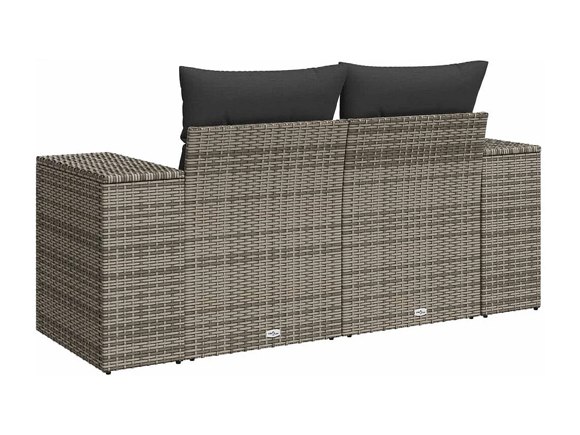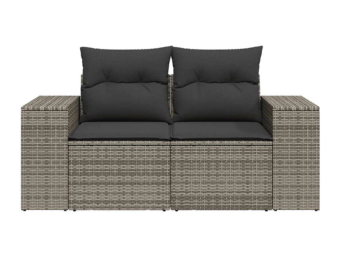 Canapé de jardin 2 places avec coussins gris résine tressée
