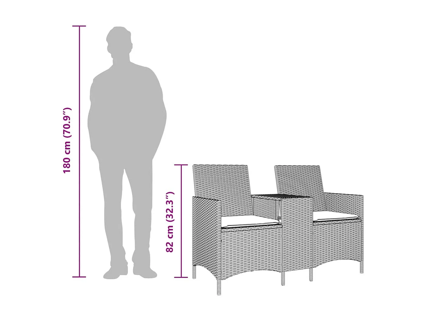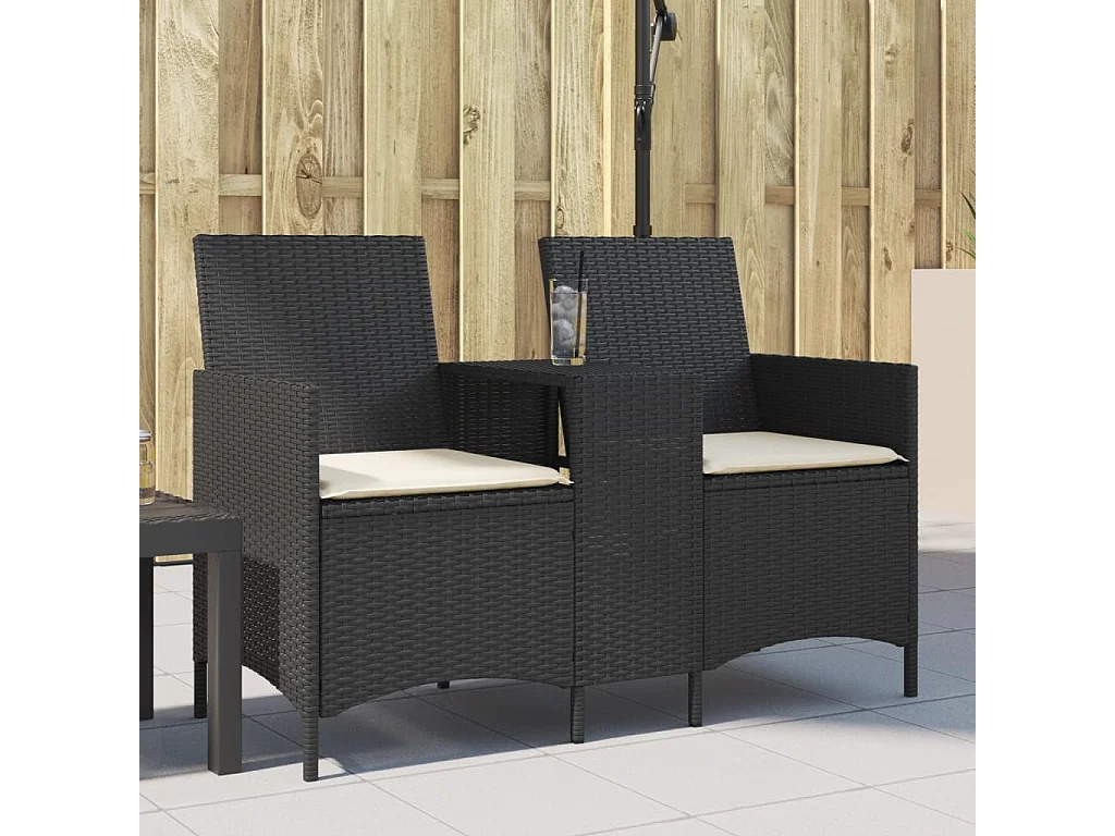 Canapé de jardin 2 places avec table et coussins résine tressée
