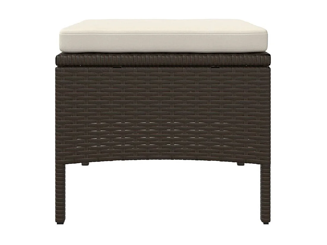 Canapé de jardin 2 places avec table et tabourets marron rotin