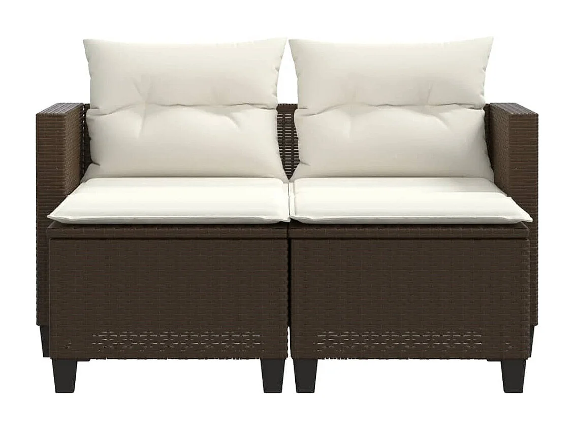 Canapé de jardin 2 places avec tabourets marron résine tressée