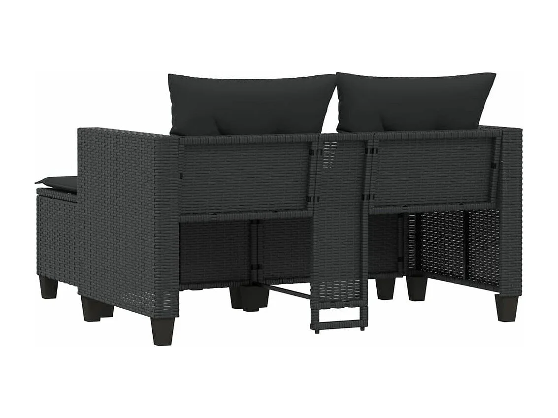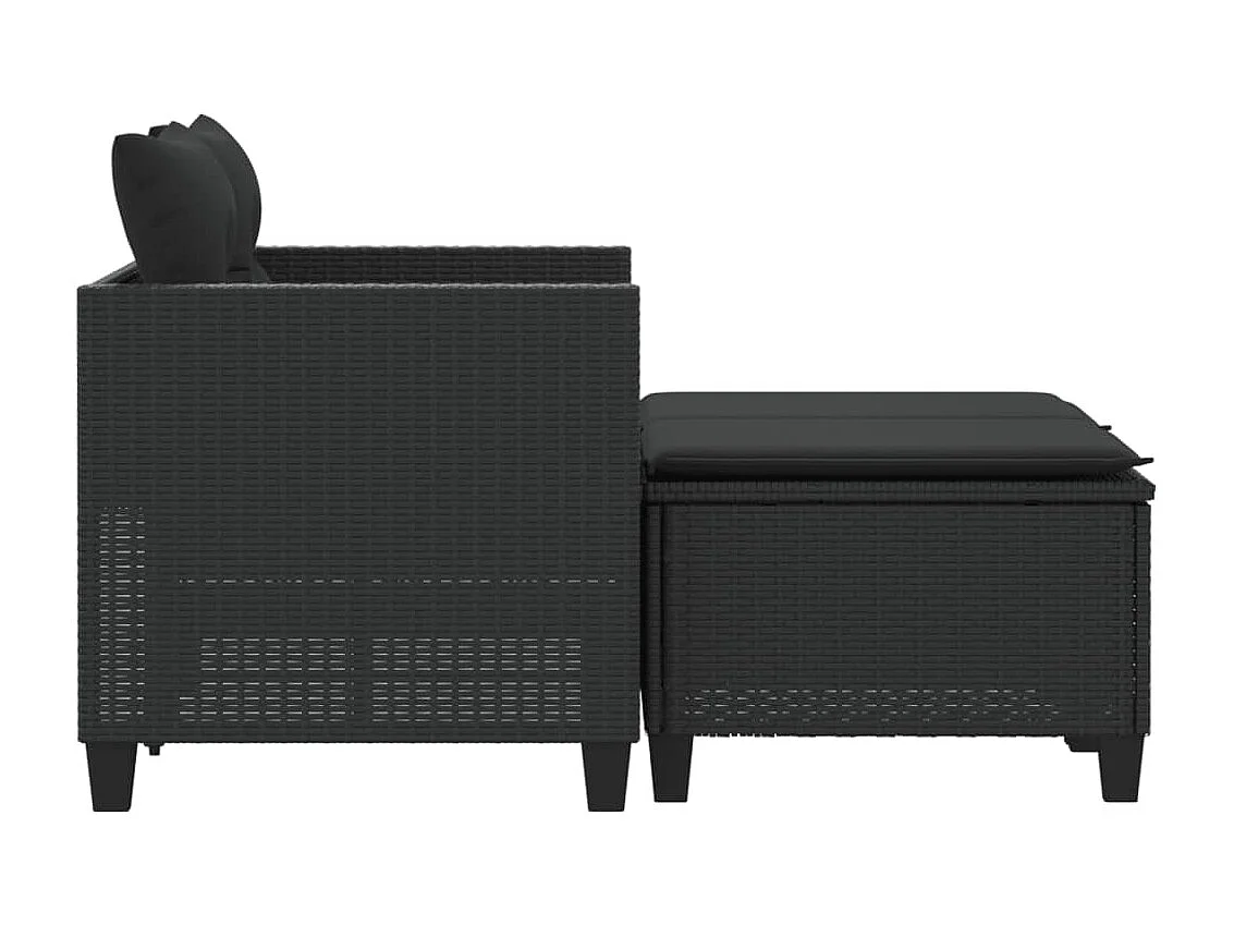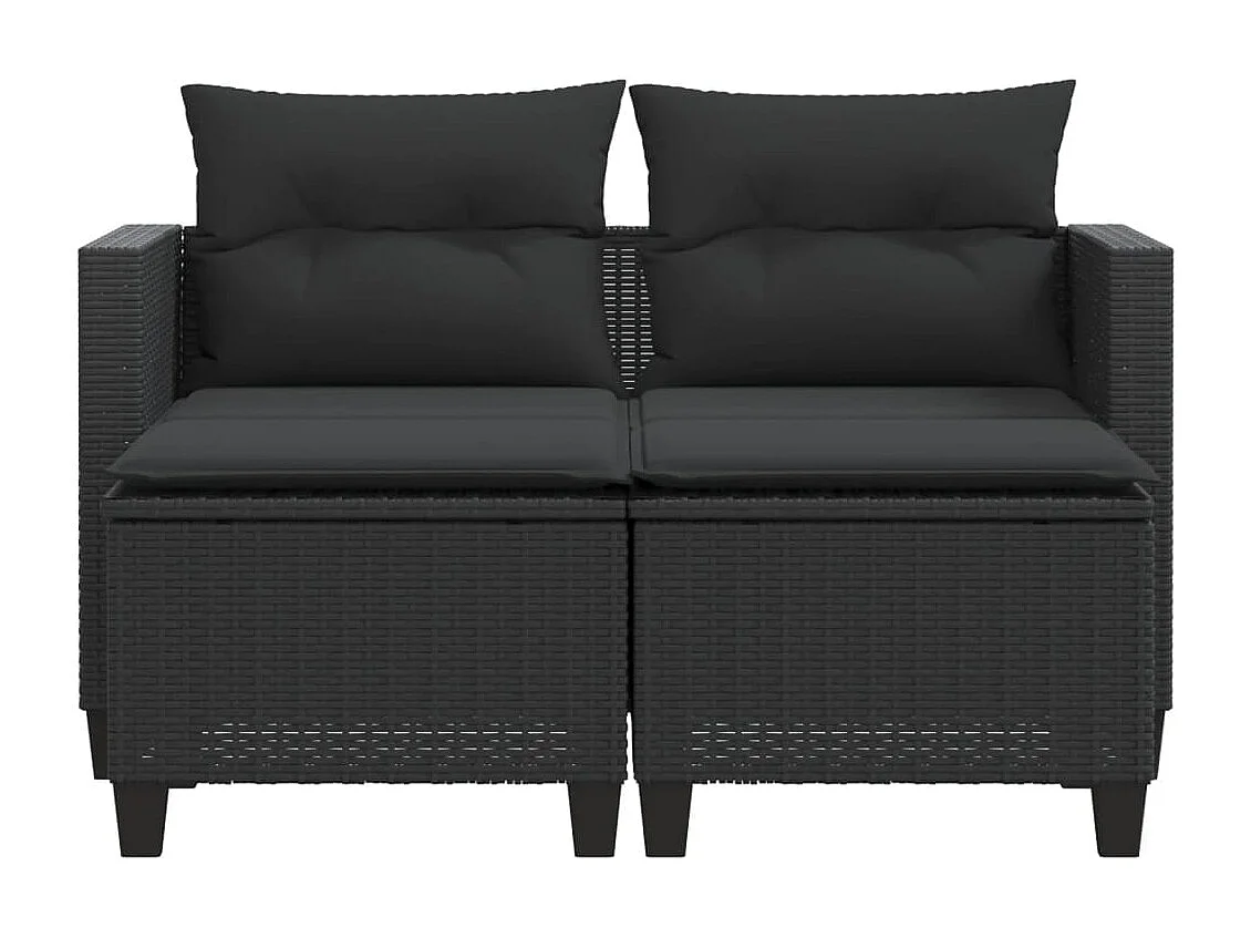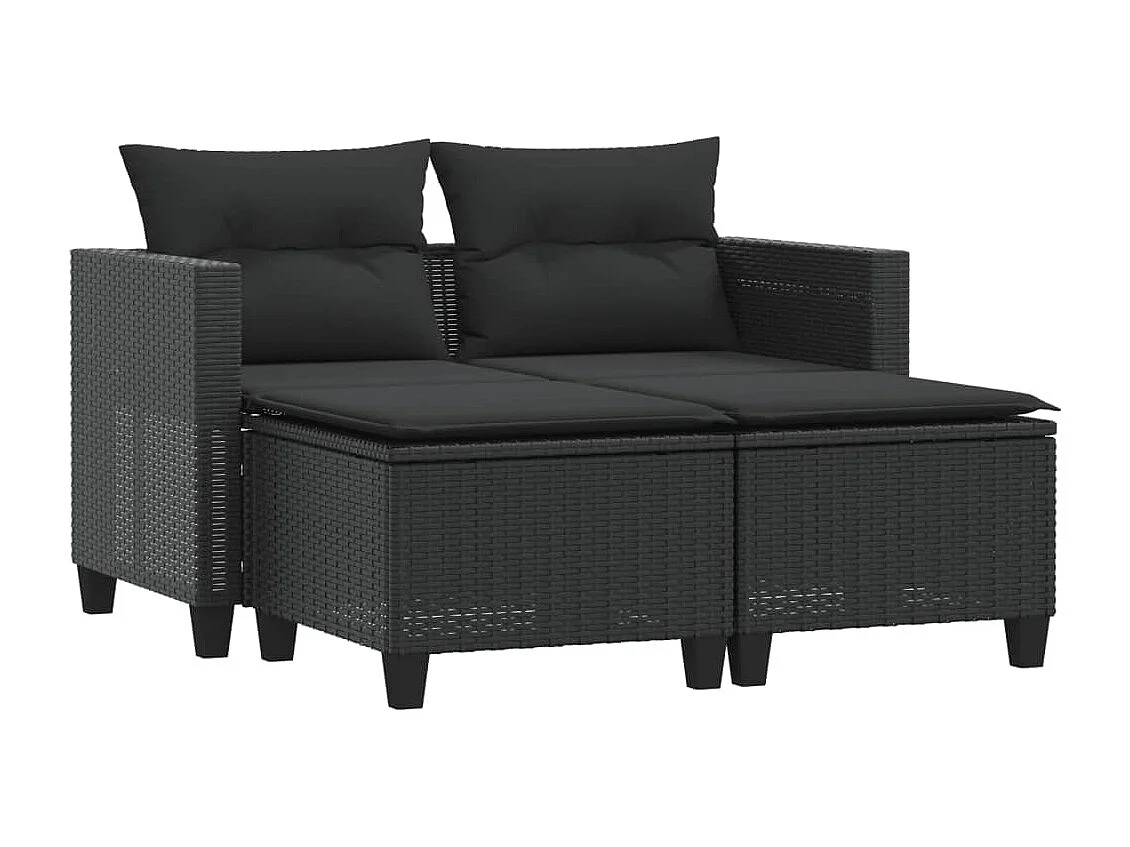 Canapé de jardin 2 places avec tabourets noir résine tressée