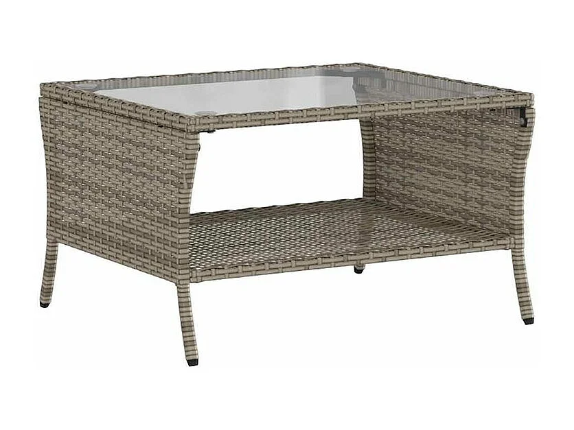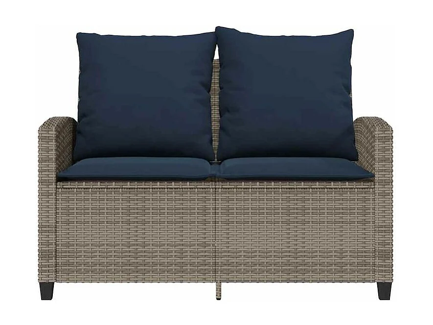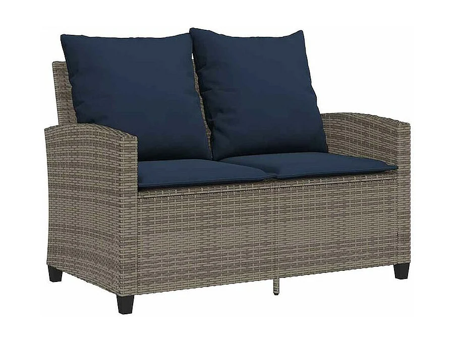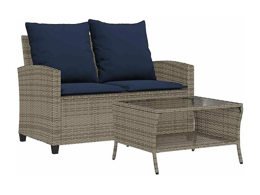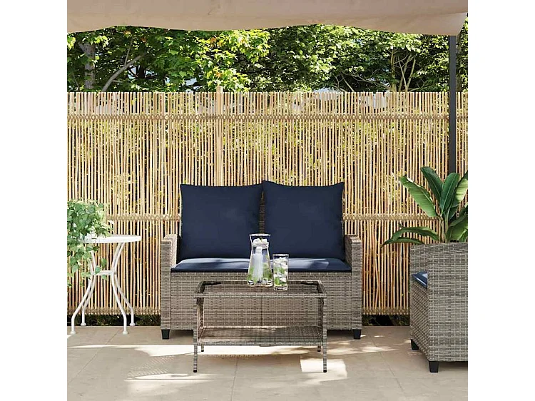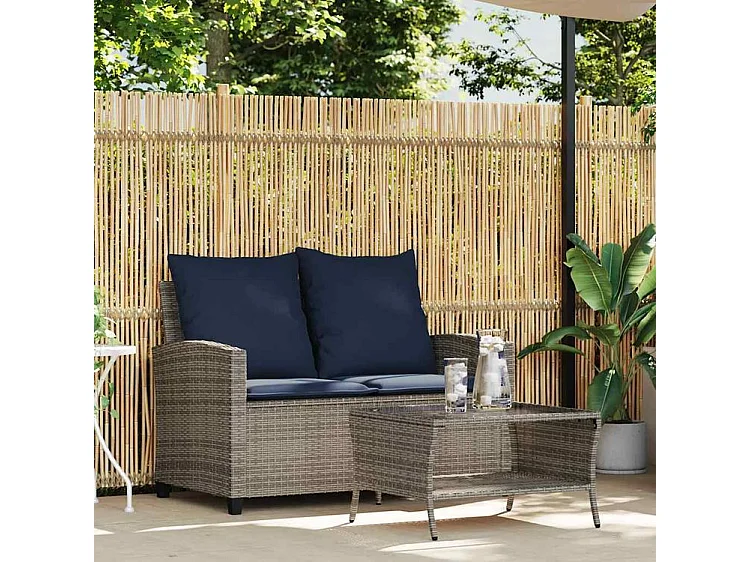 Canapé de jardin 2 places coussins et table gris résine tressée
