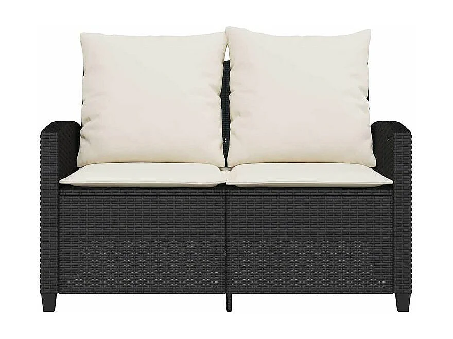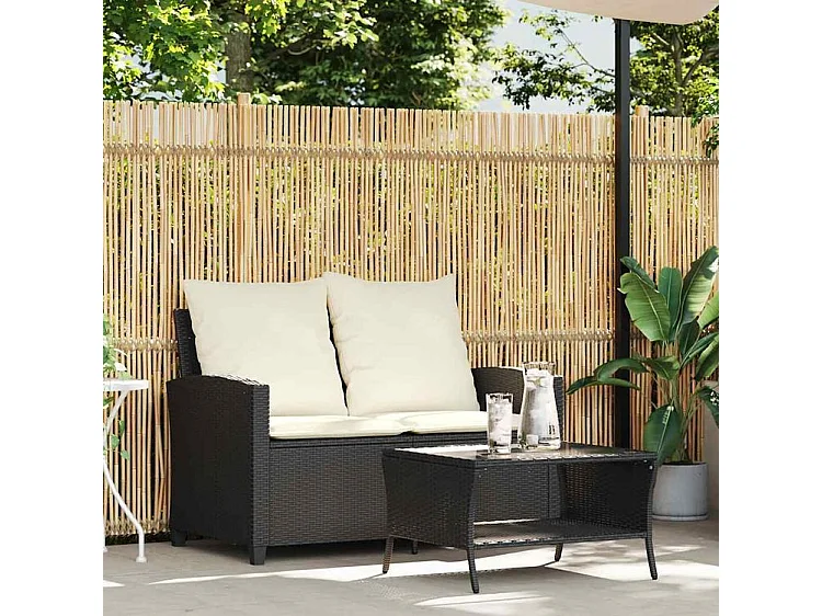 Canapé de jardin 2 places coussins et table noir résine tressée