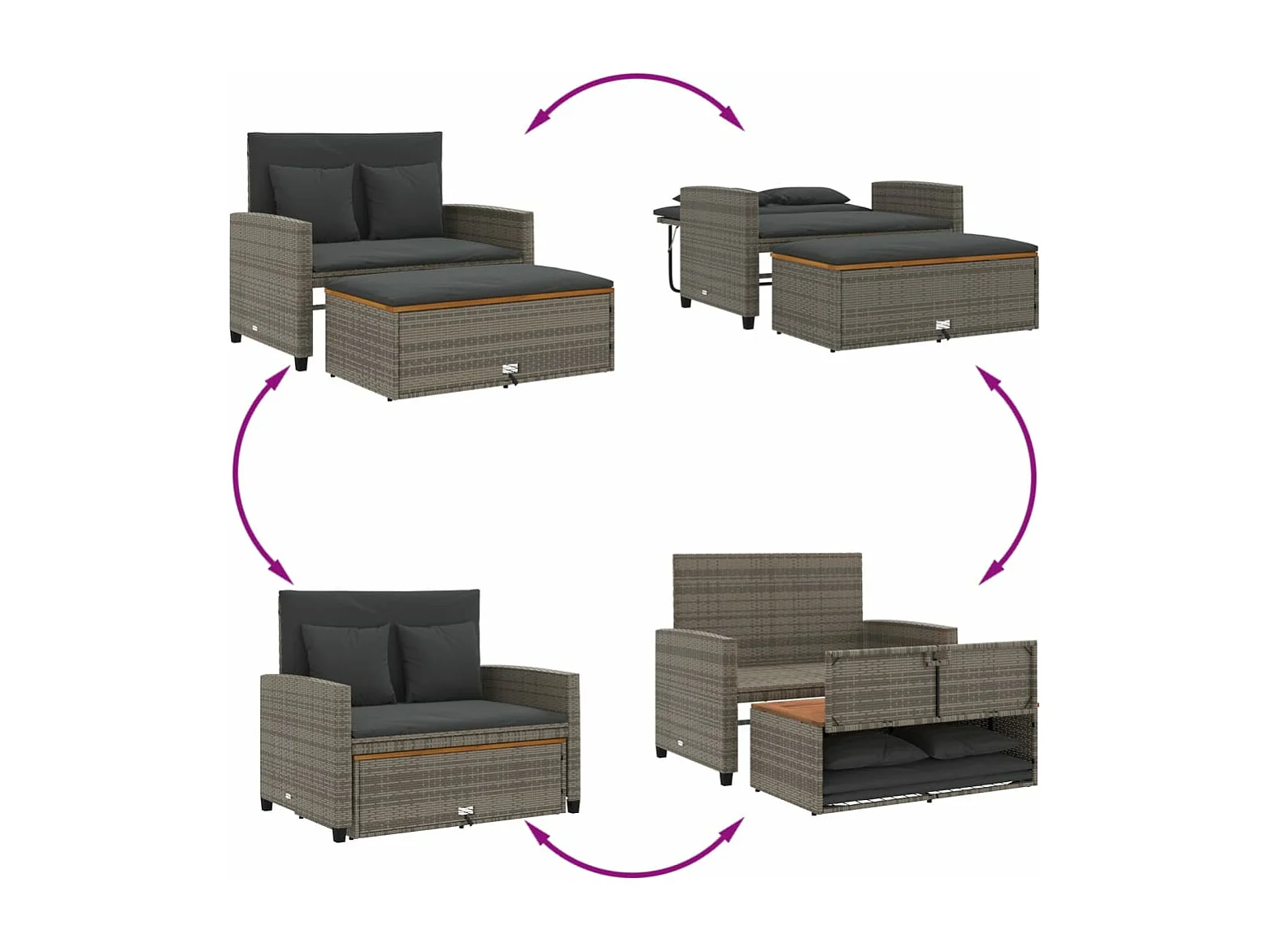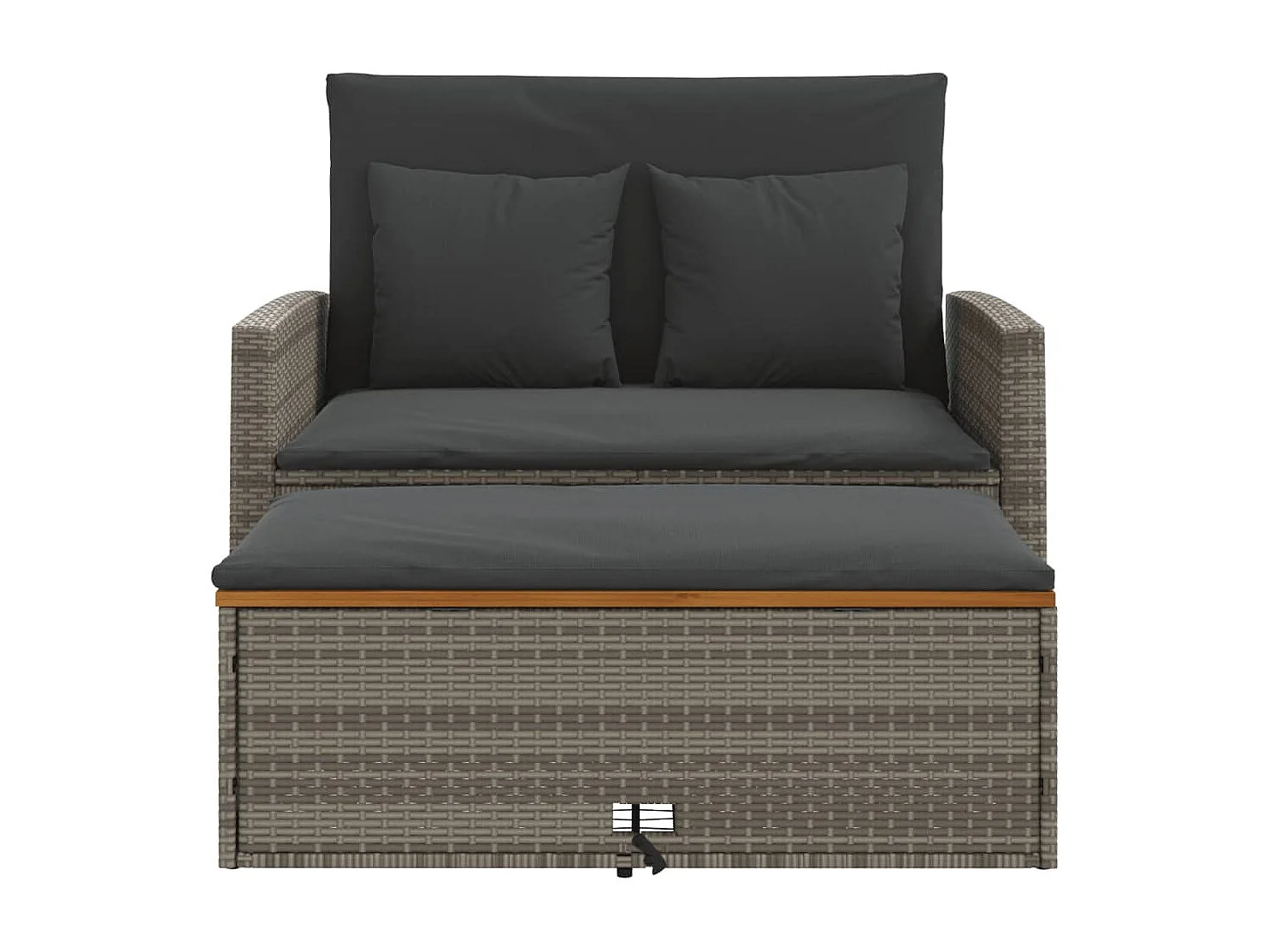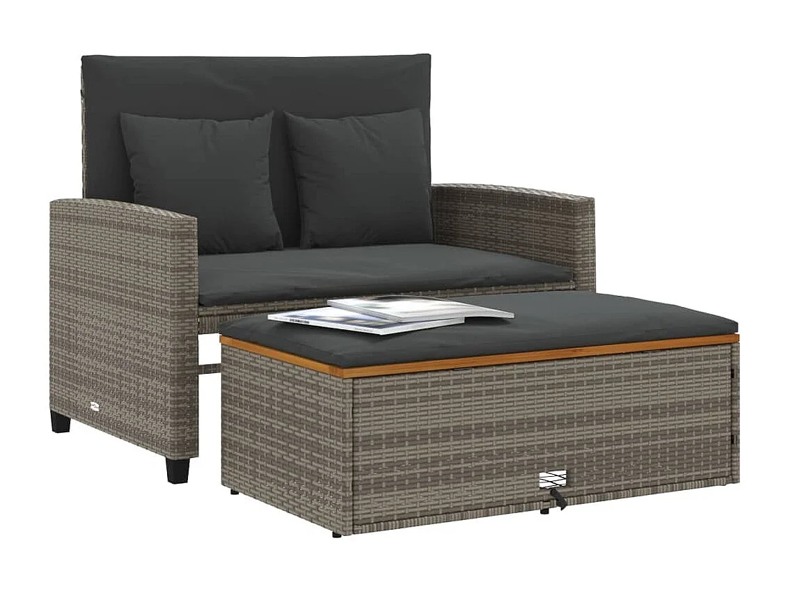 Canapé de jardin 2 places coussins gris résine tressée&acacia