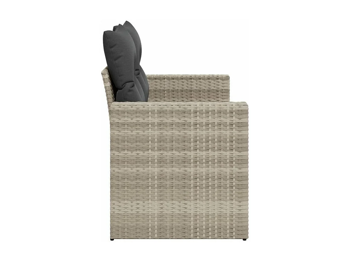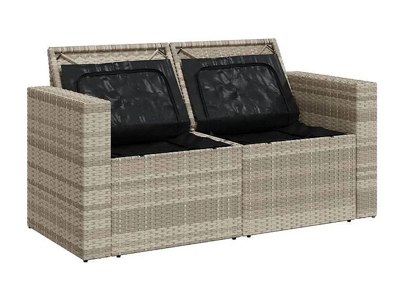 Canapé de jardin 2 places et coussins gris clair résine tressée