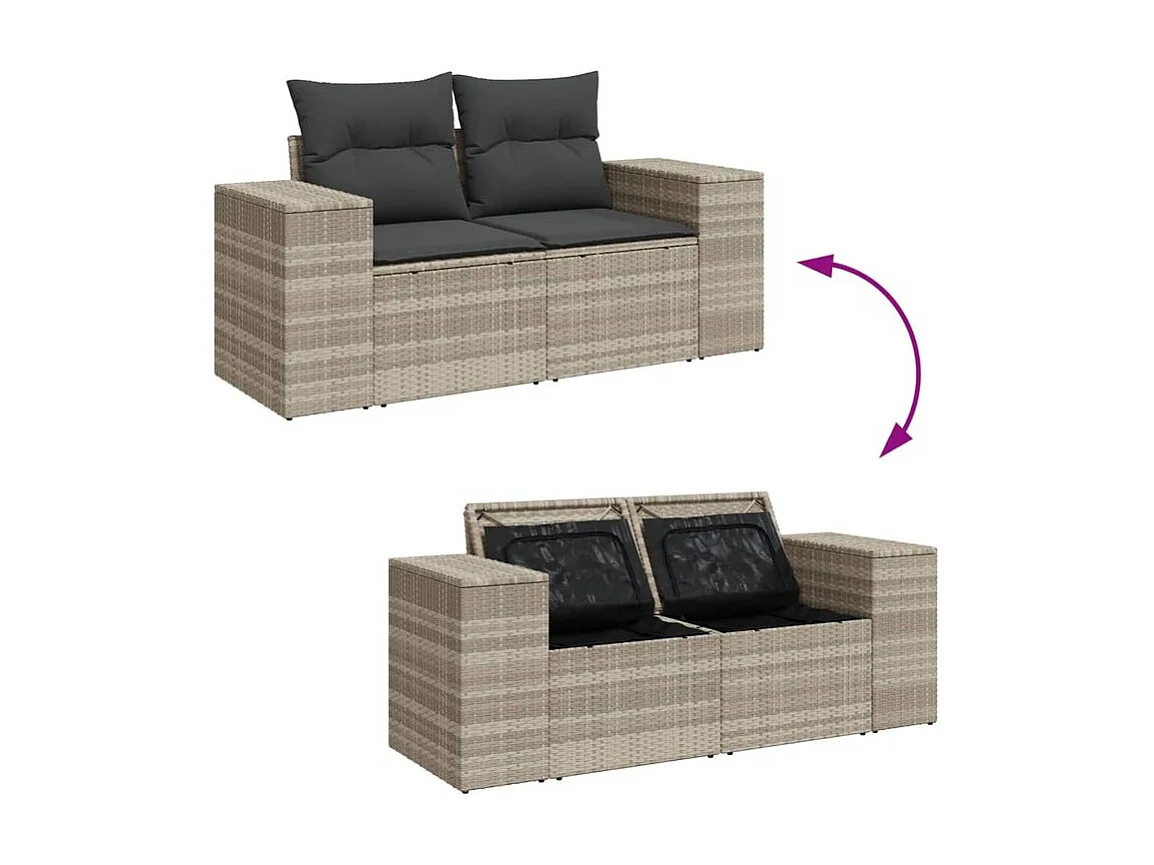 Canapé de jardin 2 places et coussins gris clair résine tressée