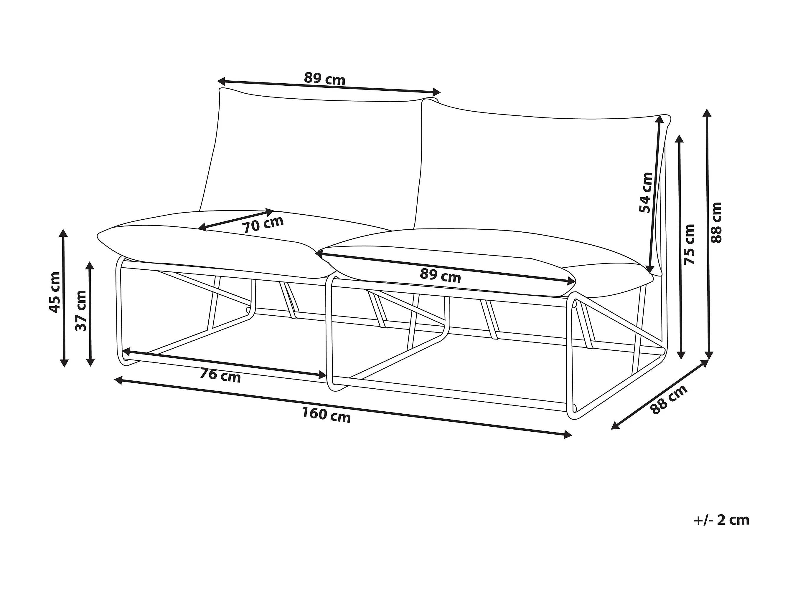 Canapé de jardin 2 places PICO Métal Gris