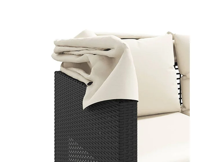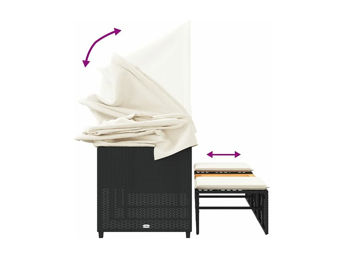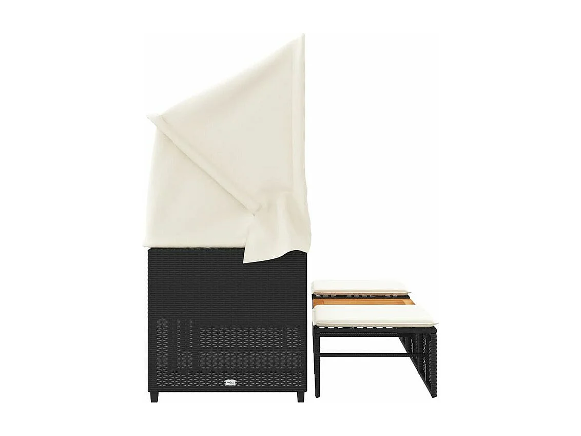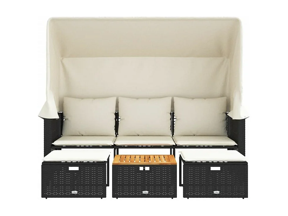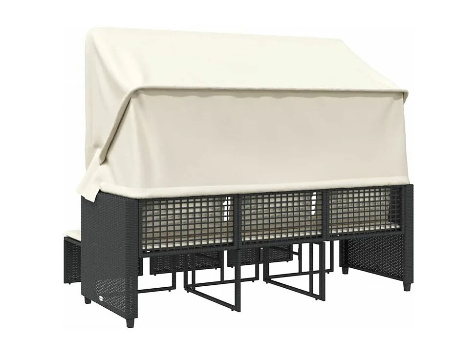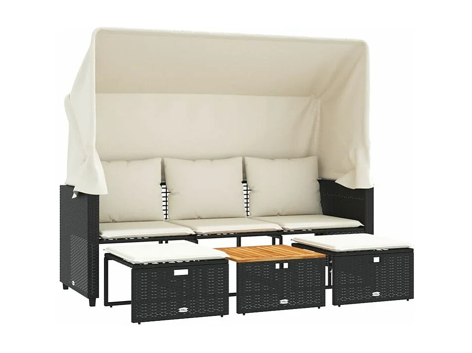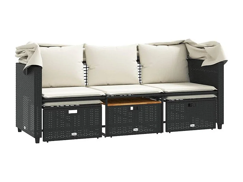 Canapé de jardin 3 places avec auvent et tabourets noir rotin
