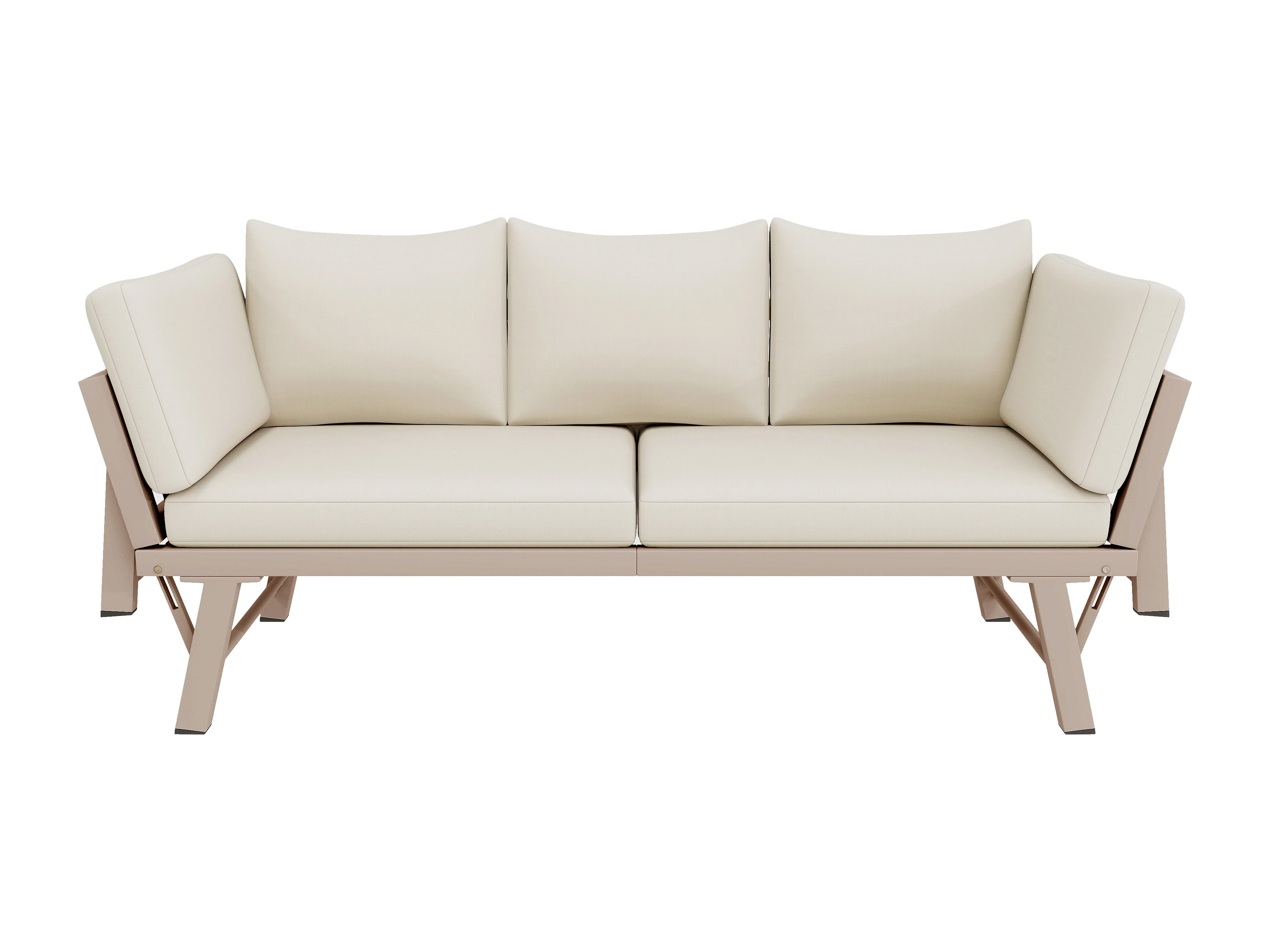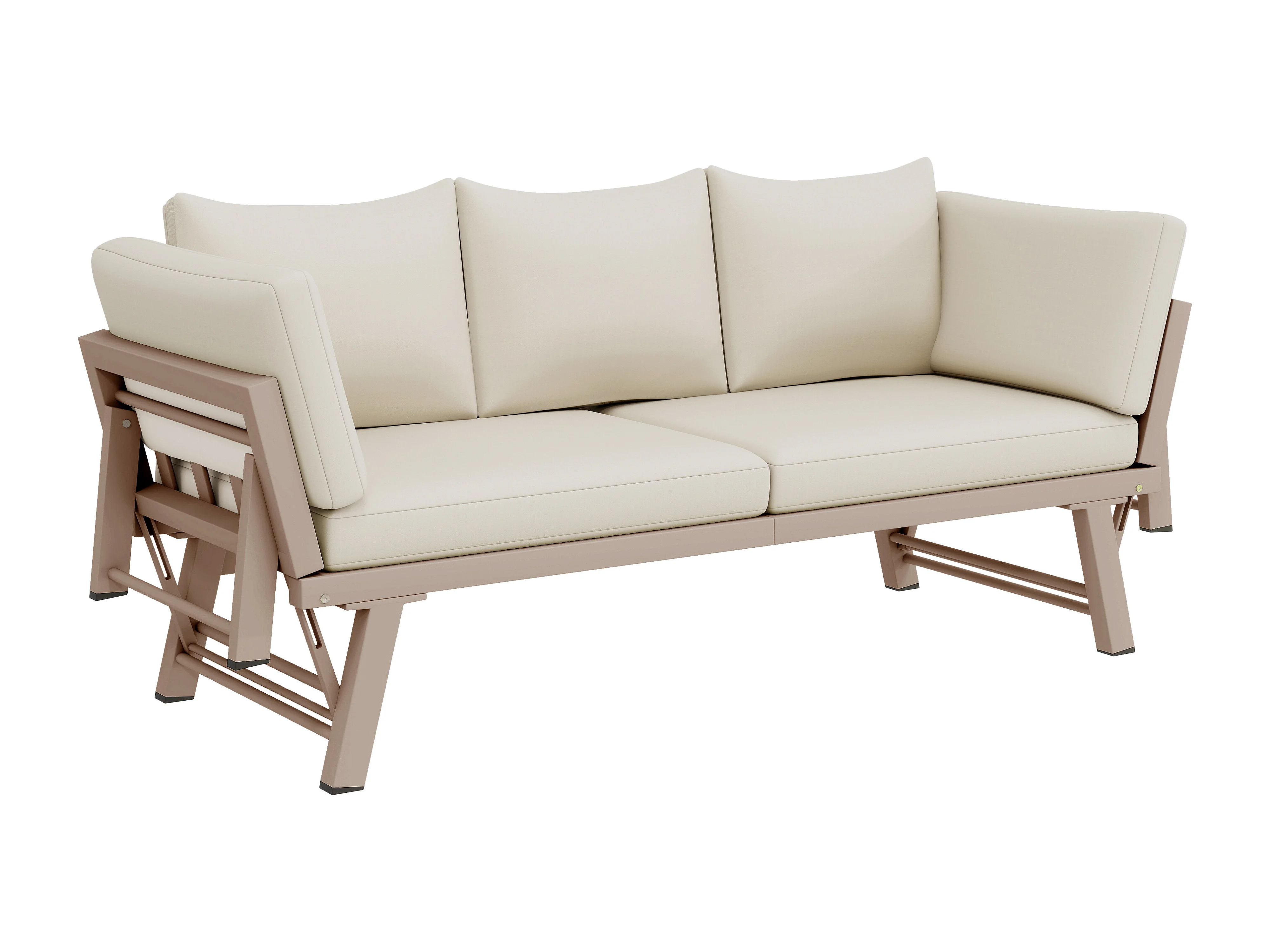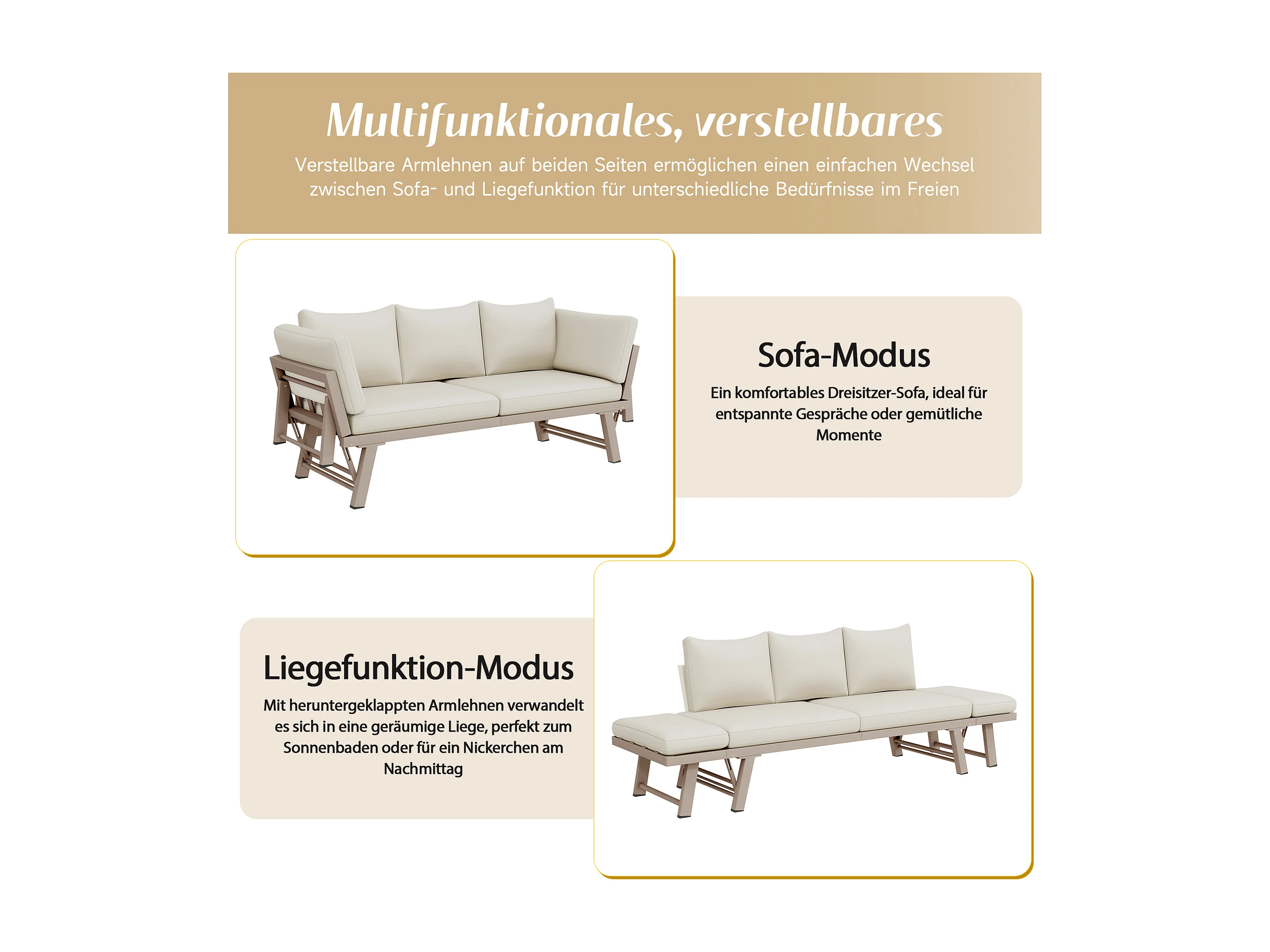 Canapé de Jardin 3 Places Convertible en Lit de Repos - Accoudoirs Rabatables Multi-positions - Structure Acier Galvanisé - Beige